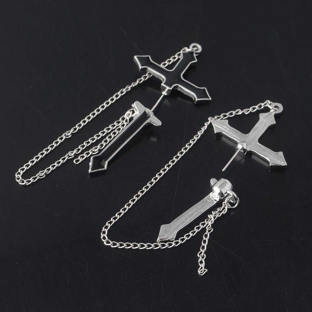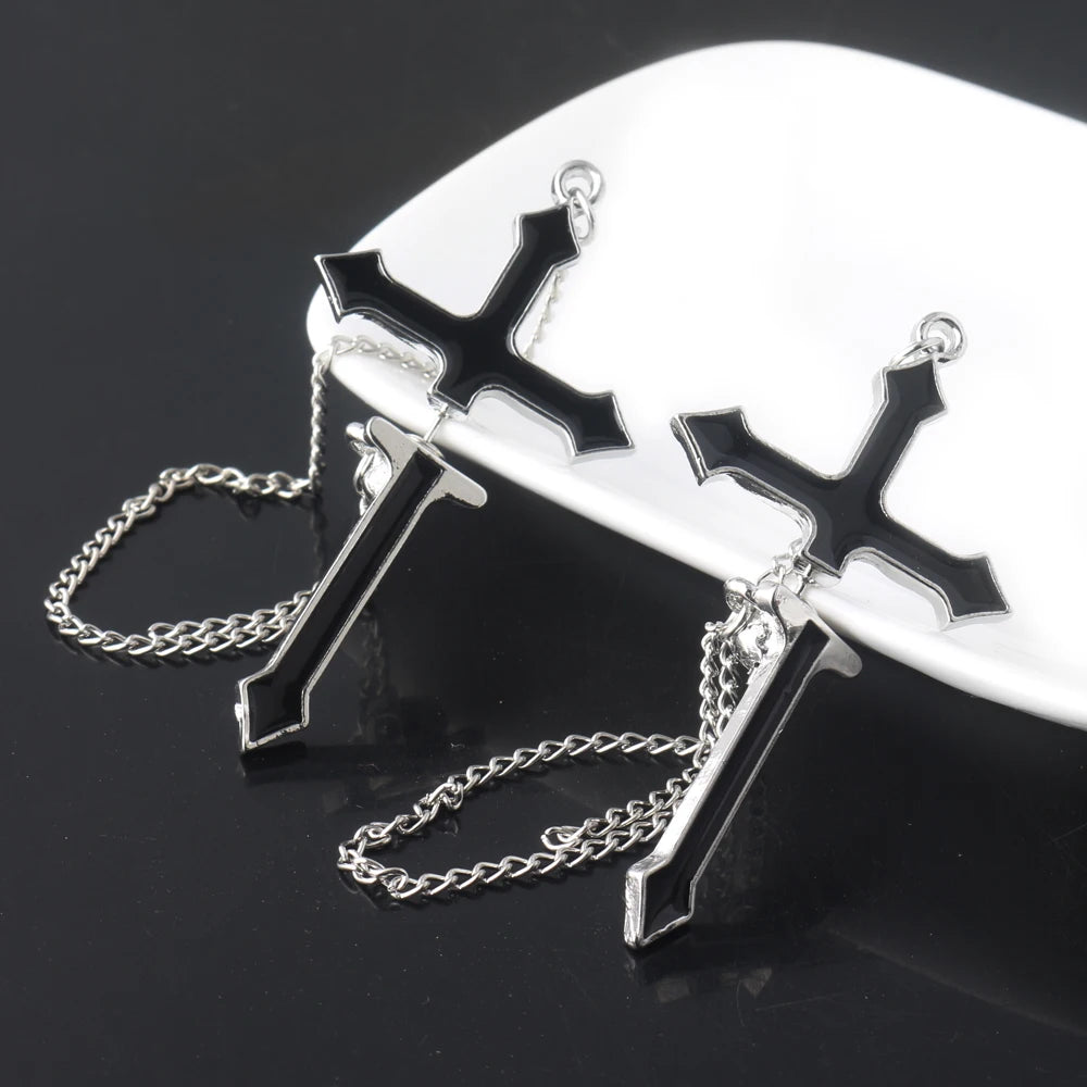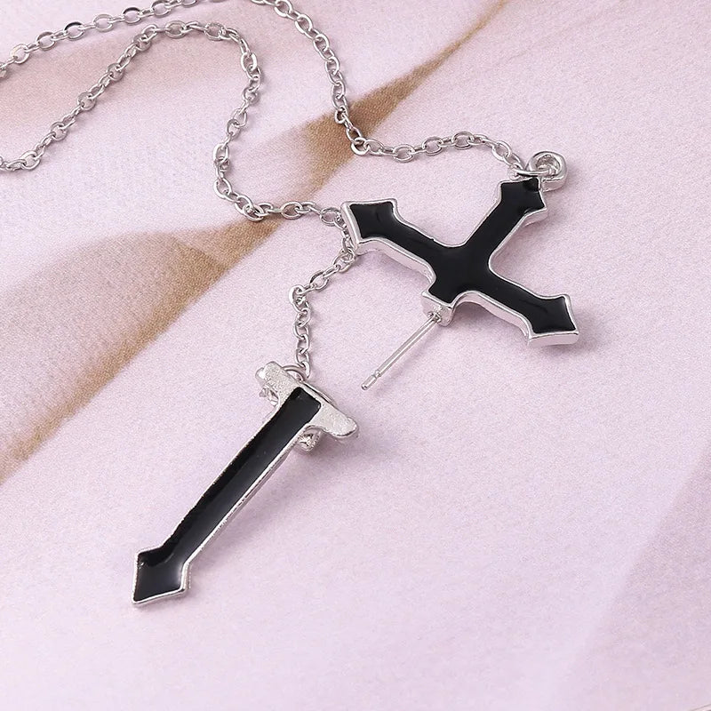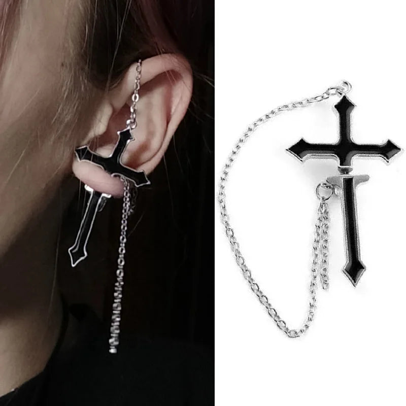 ゴシックパンクブラッククロスドロップイヤリングティーンズヴィンテージロックプライドロングチェーンイヤーカフイヤークリップレディースイヤリングガールズジュエリー