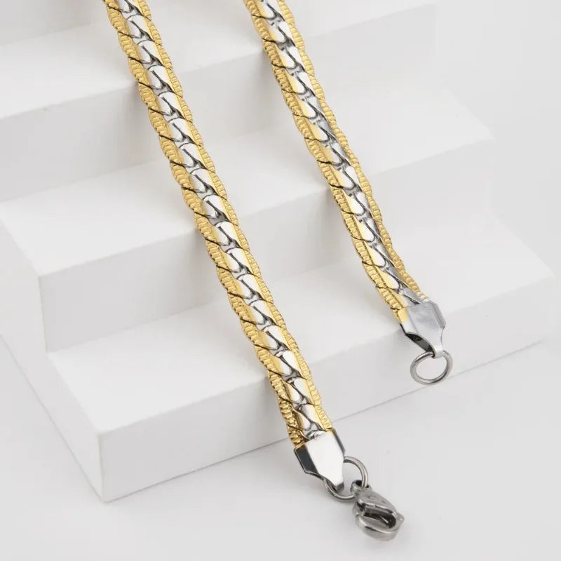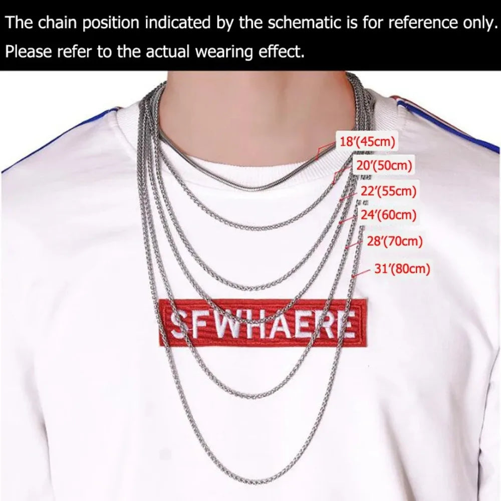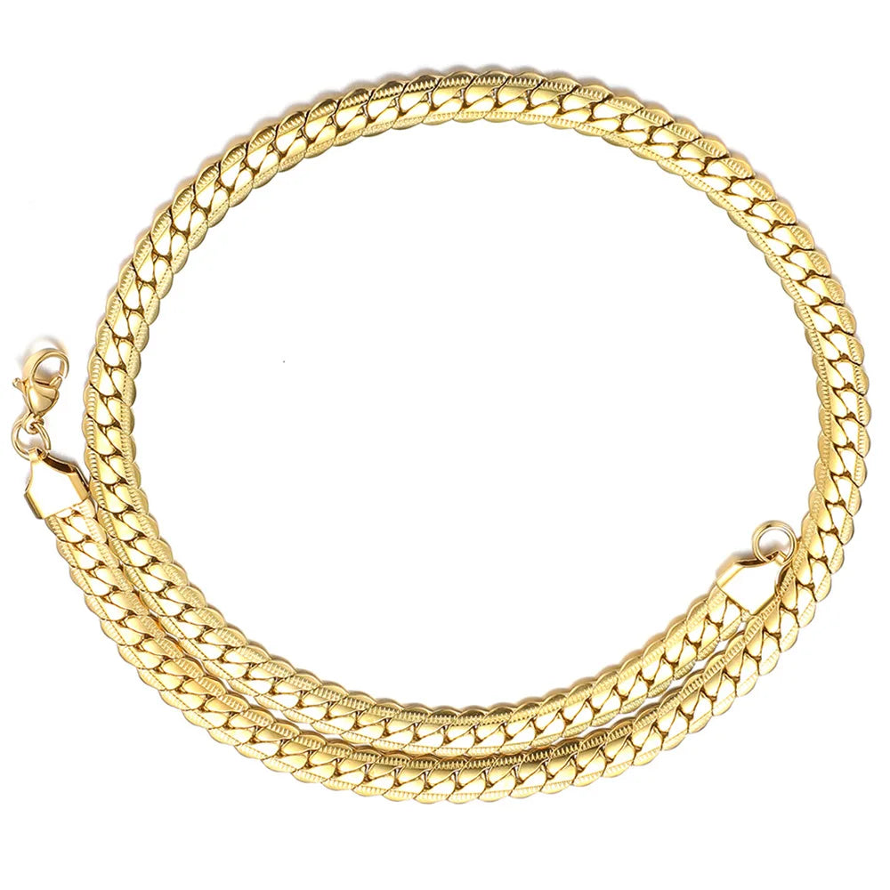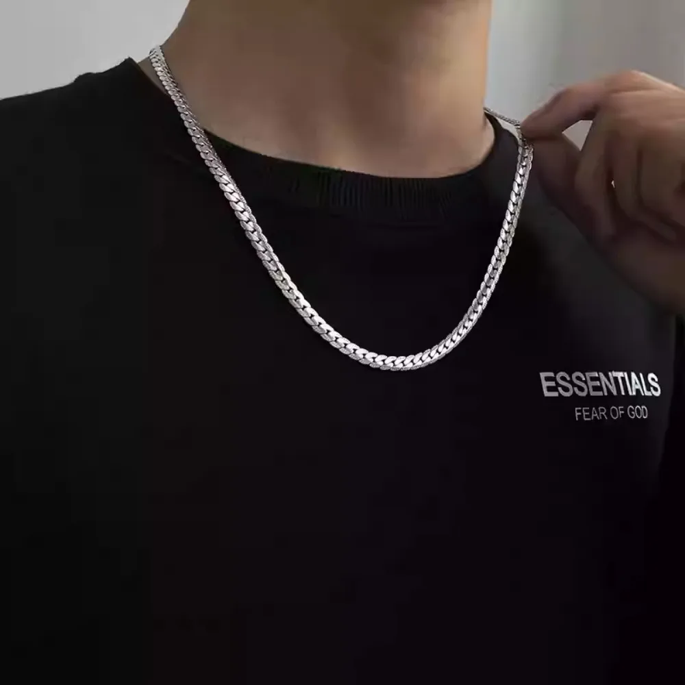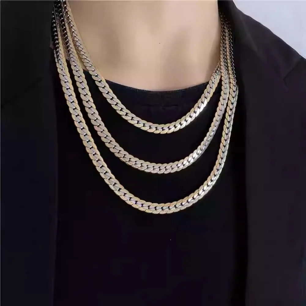 男性用高光沢キューバチェーンネックレス、7mmステンレススチールフラットキューバチェーンカラー、50/55/60cm男性用チェーン