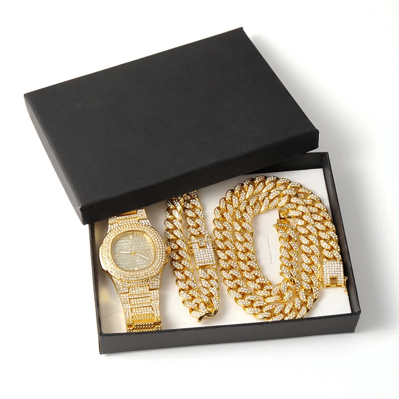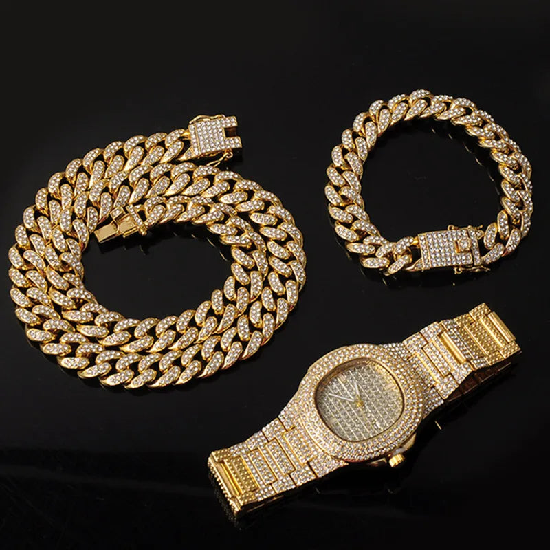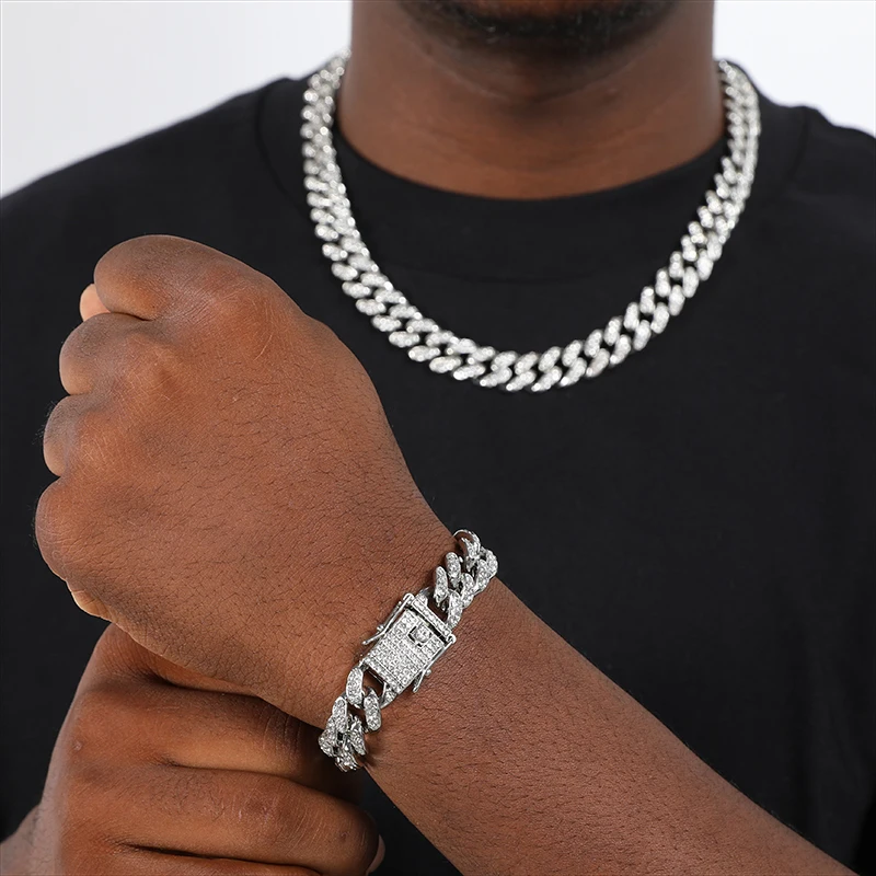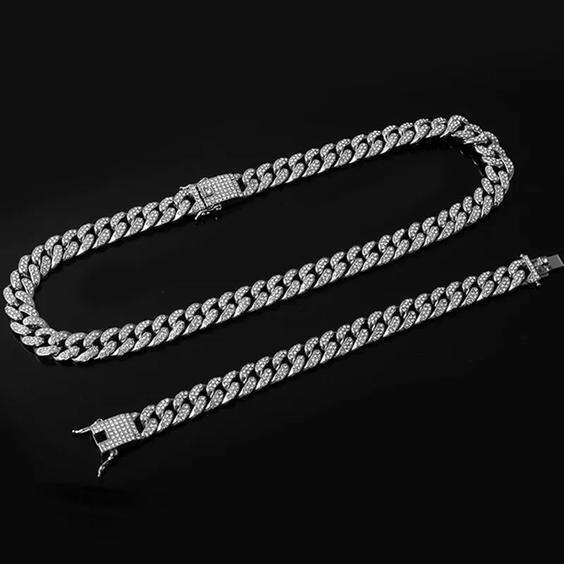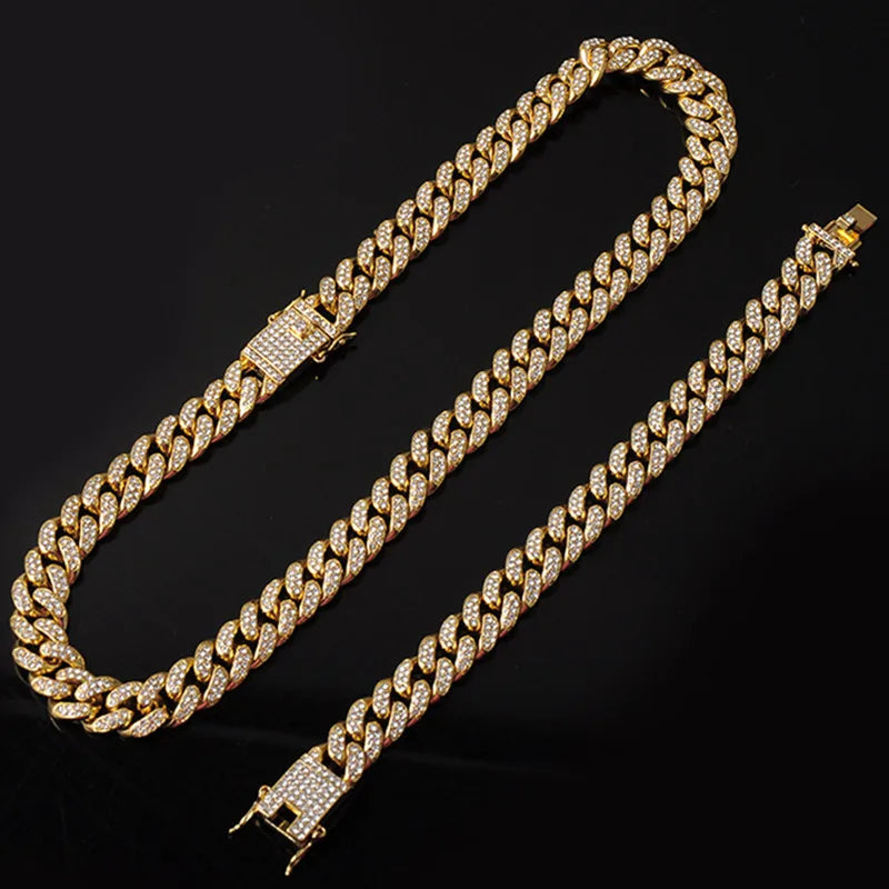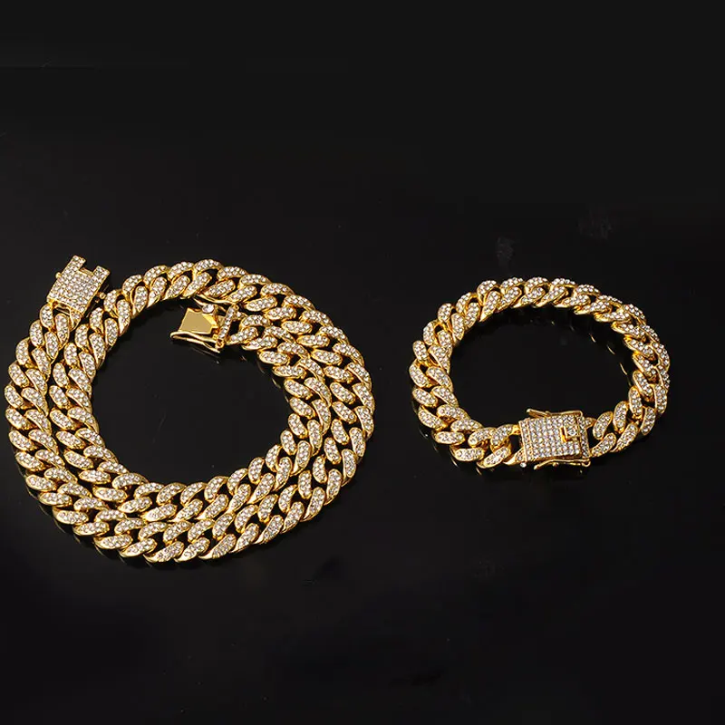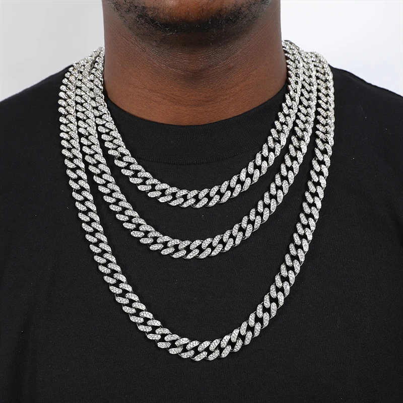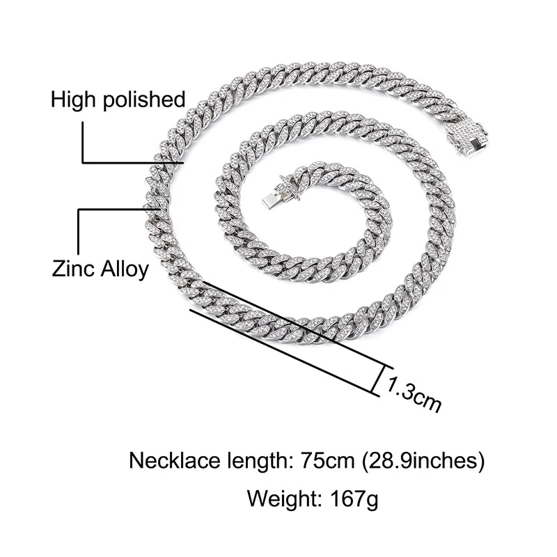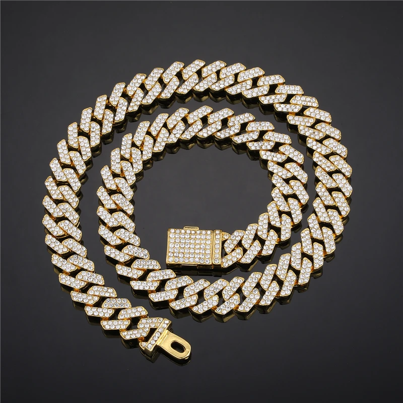 ヒップホップ 13mm キューバンリンクチェーン メンズ マイアミ アイスアウト ブリンブリンネックレス ゴールドメッキ ブリンブリン メンズ レディース ラッパー ジュエリー ギフト