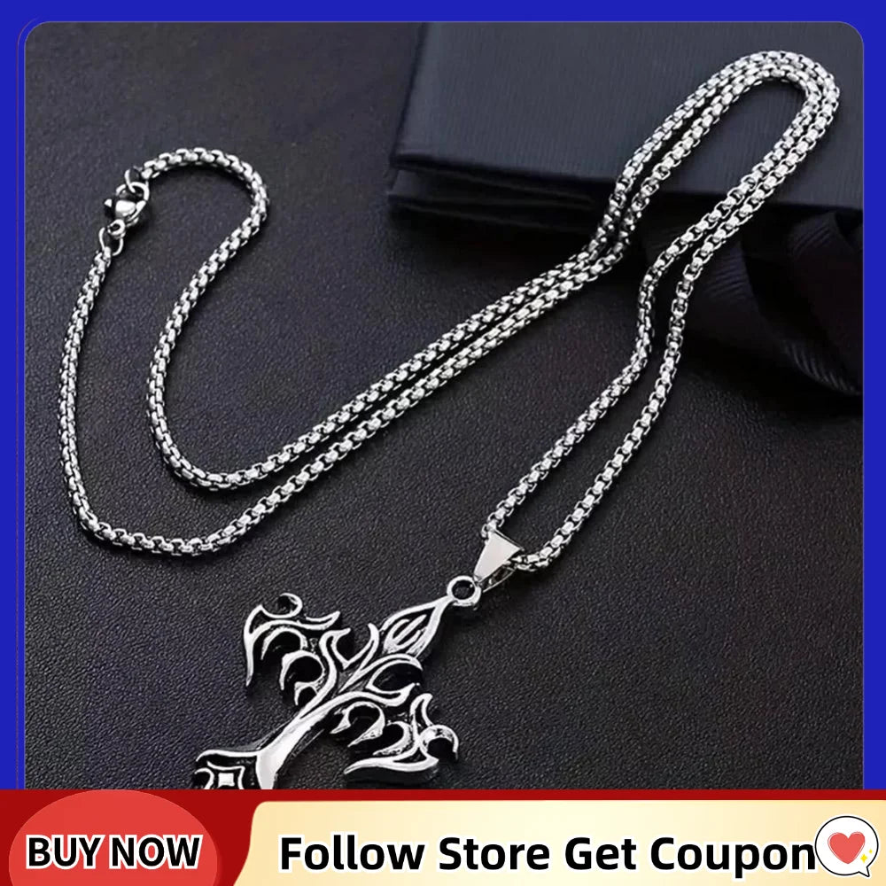 1.商品名:パンクスタイルのスチールネックレスクロスフレイム