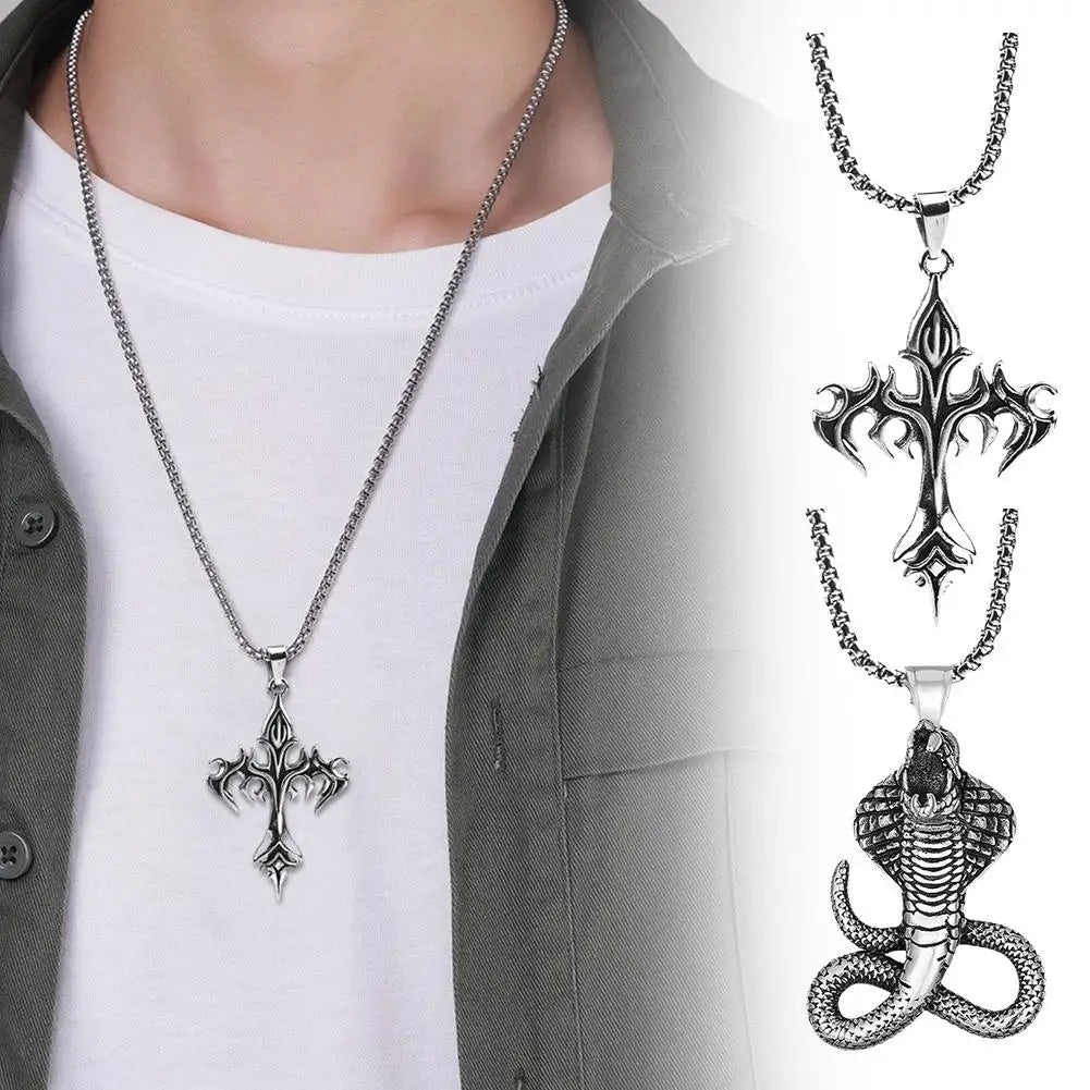 ヒップホップクロスペンダントネックレスユニークなデザインのスチールゴスネックレスファッションジュエリーギフト女性男性