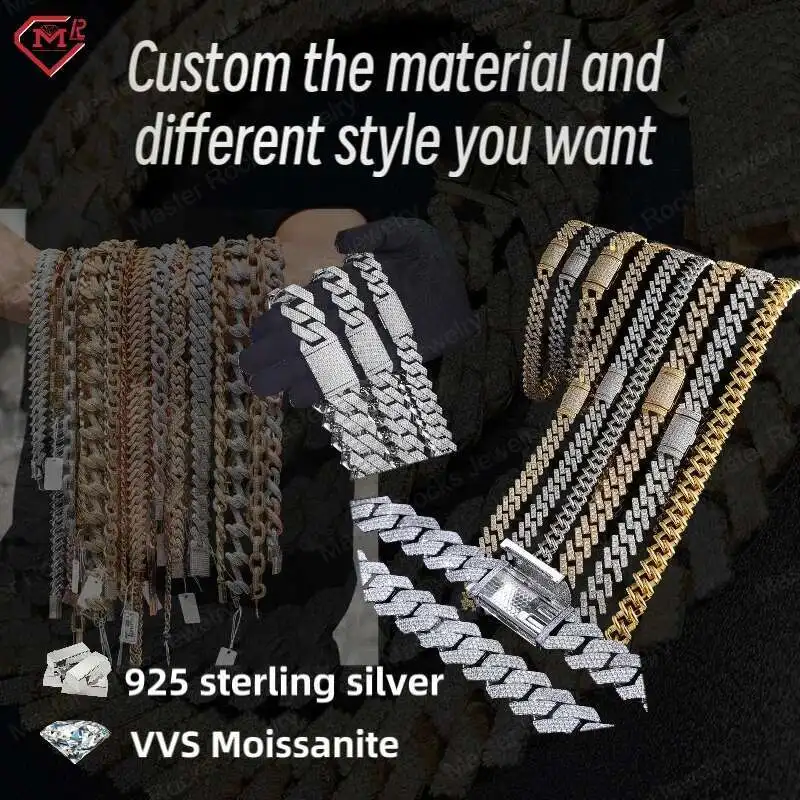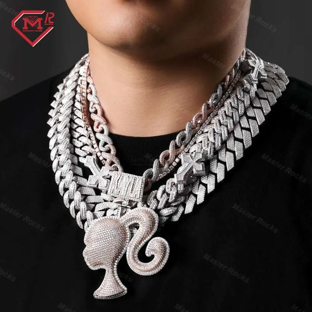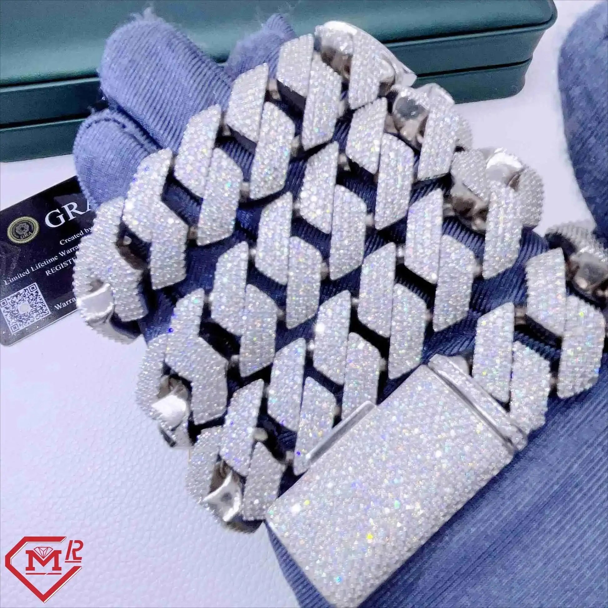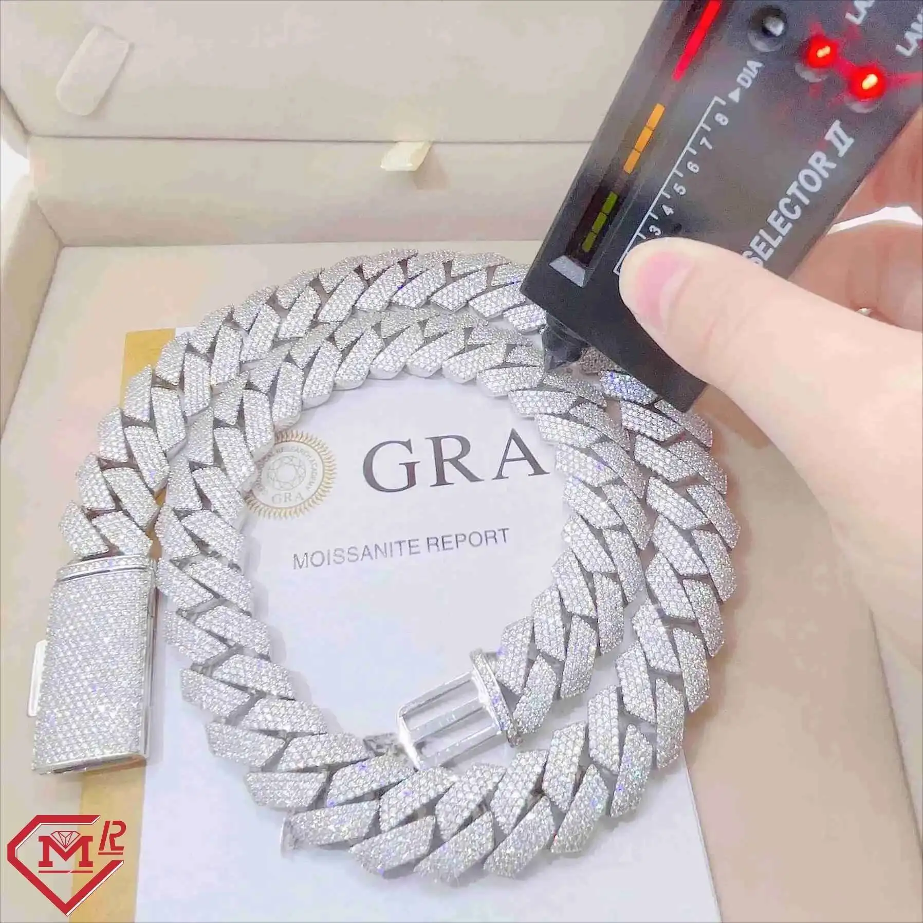 ヒップホップ キューバンチェーンネックレス メンズ レディース アイスアウト 18mm 4連 スクエア 925スターリングシルバー VVS モアッサナイト キューバンリンクチェーン