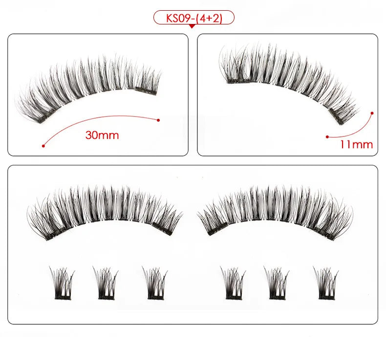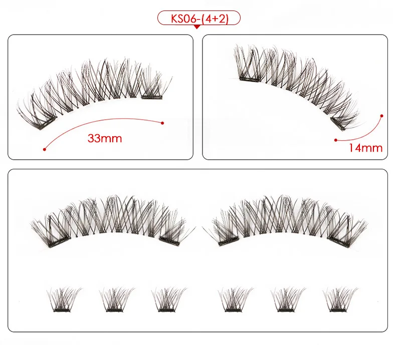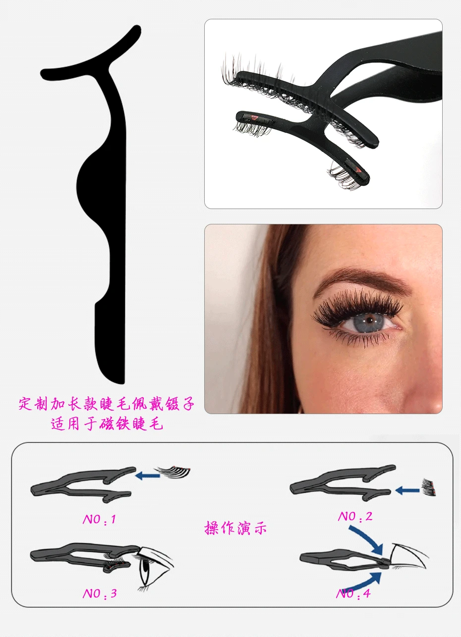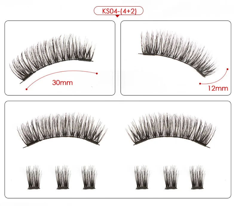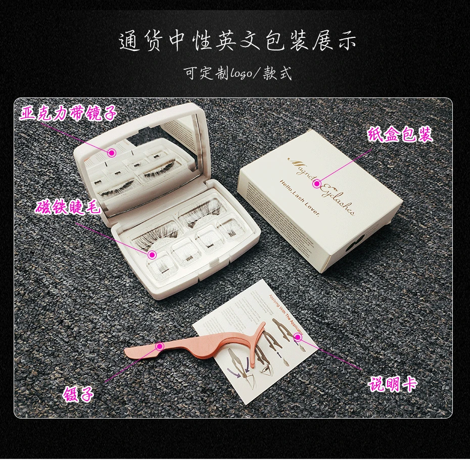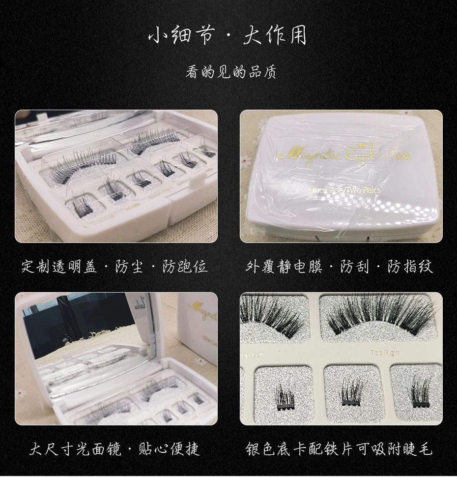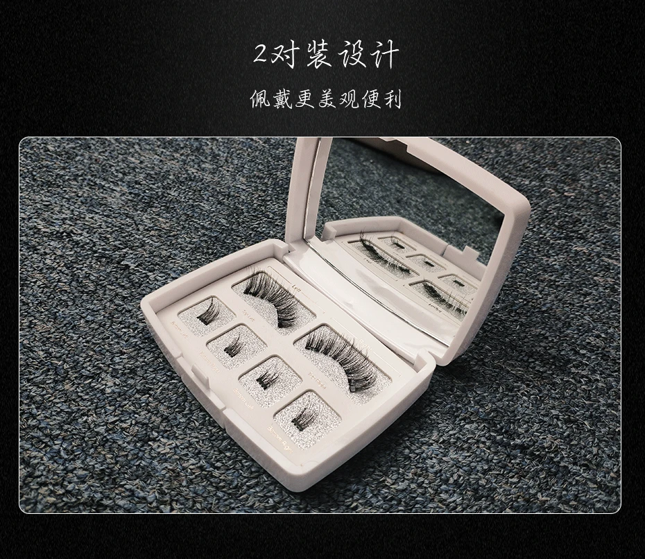 製品説明: この製品には 6 本のマグネット式つけまつげが含まれています。3 本を重ねて使用する場合、接着剤は必要なく、敏感ではなく、簡単に装着できます。