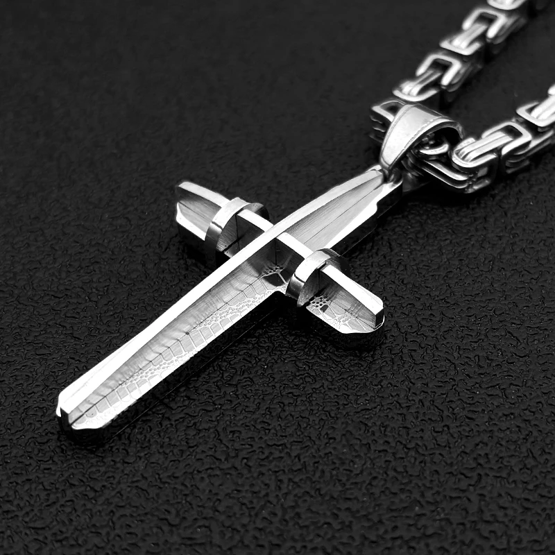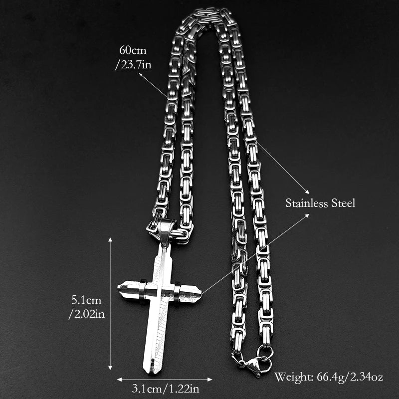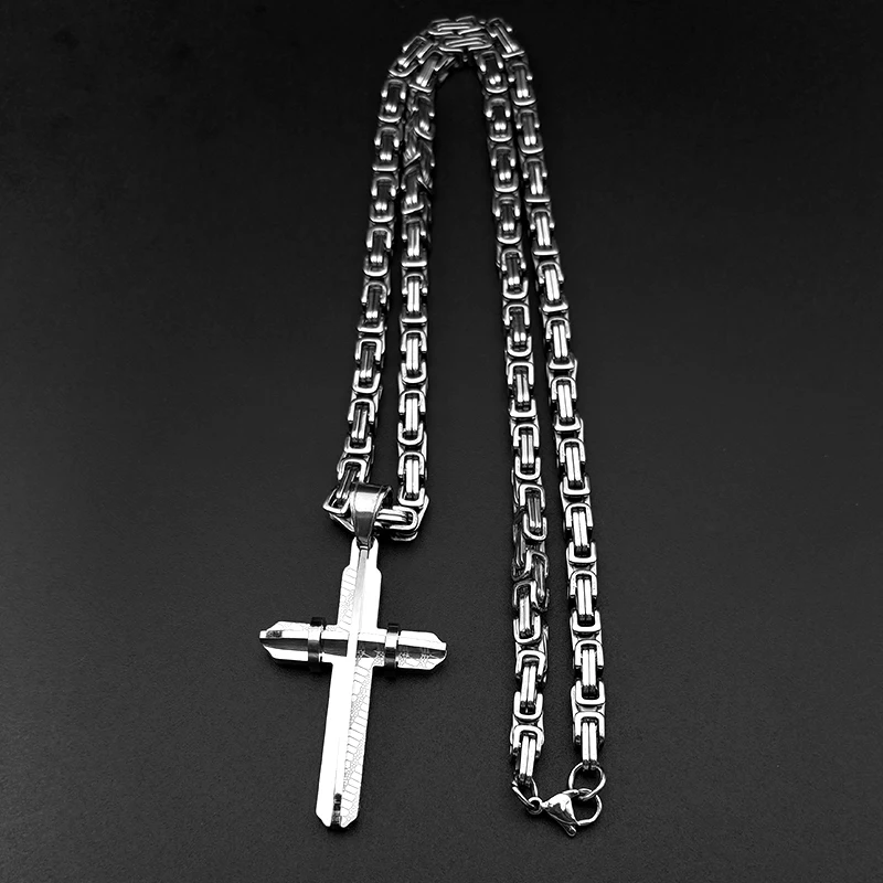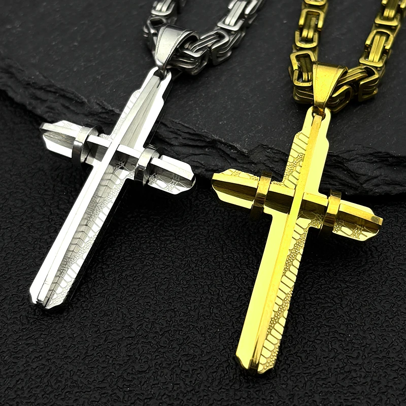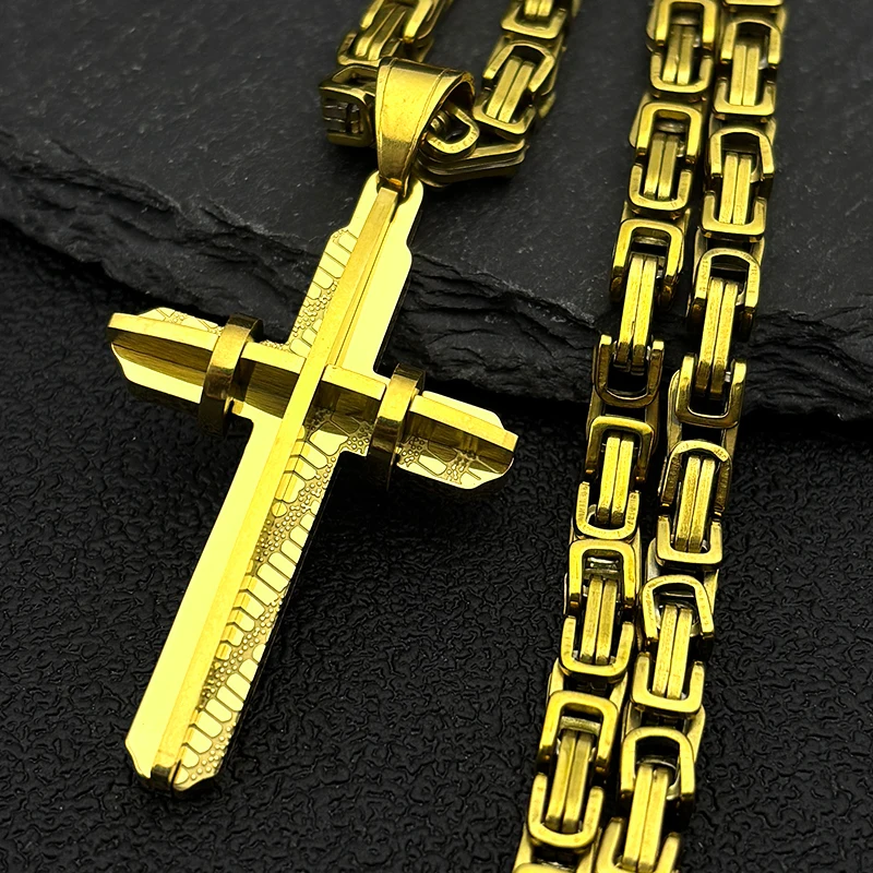 イエス・キリストの十字架 男性用十字架 ヒップホップネックレス ステンレススチール 金メッキ クリスチャンパンク ビザンチンチェーン ジュエリー ギフト