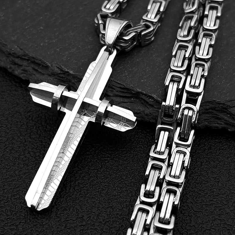 メンズ ステンレススチール ゴールドメッキ クリスチャンパンク ビザンチンチェーン ジュエリー ギフト