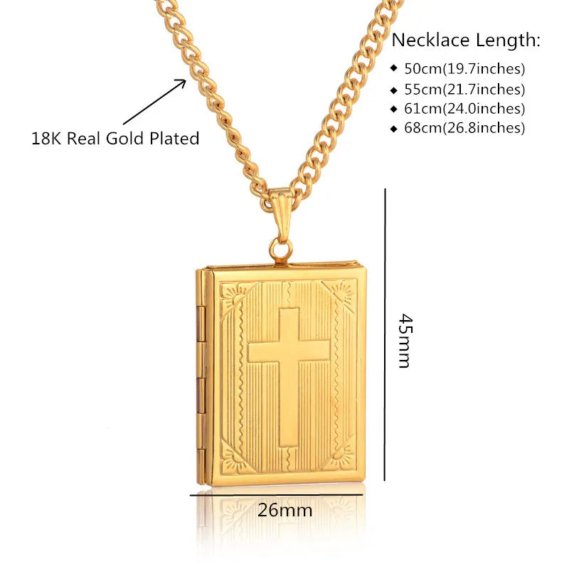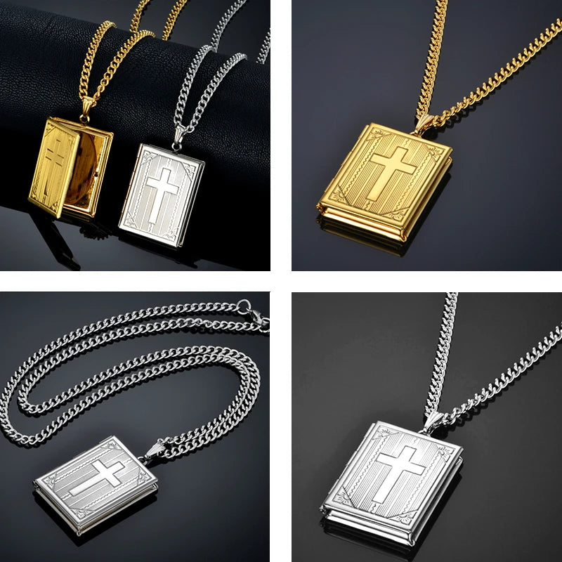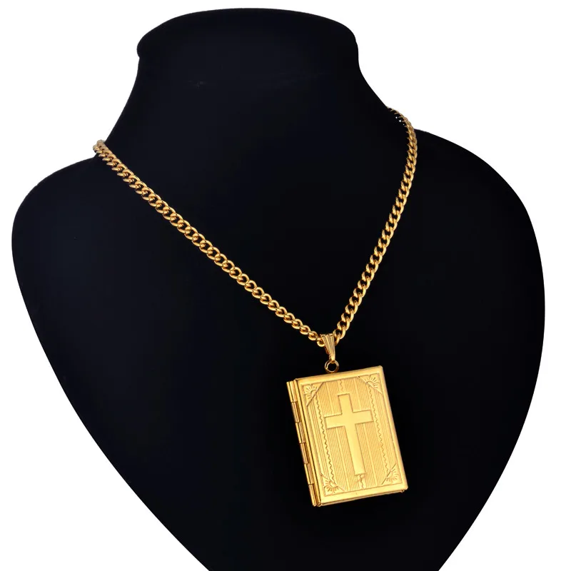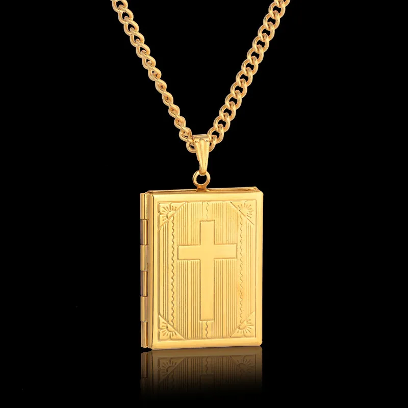 イエス・キリスト十字架ネックレスジュエリー メンズ レディース ゴールドカラースチールチェーン 男性用写真ロケットスタイル イエス十字架ペンダントネックレス XL787