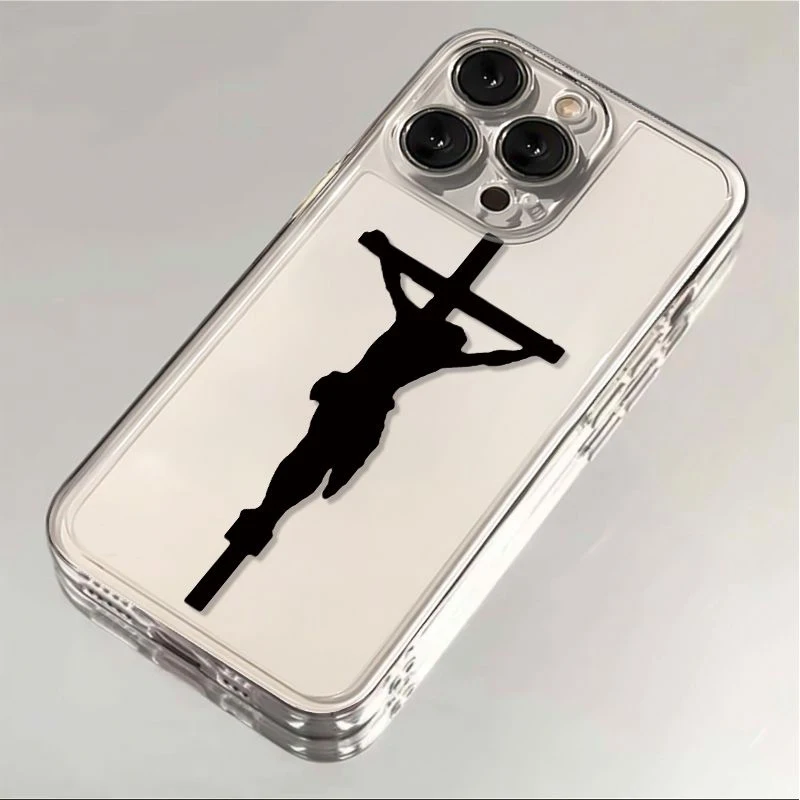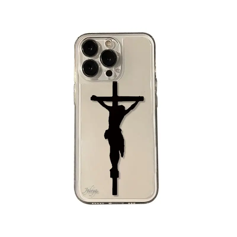 iPhone 16 15 14 13 12 11 Mini Pro Max X XR XSMAX 8 7 Plus用高級イエス十字架電話ケース、落下防止マットバックカバー