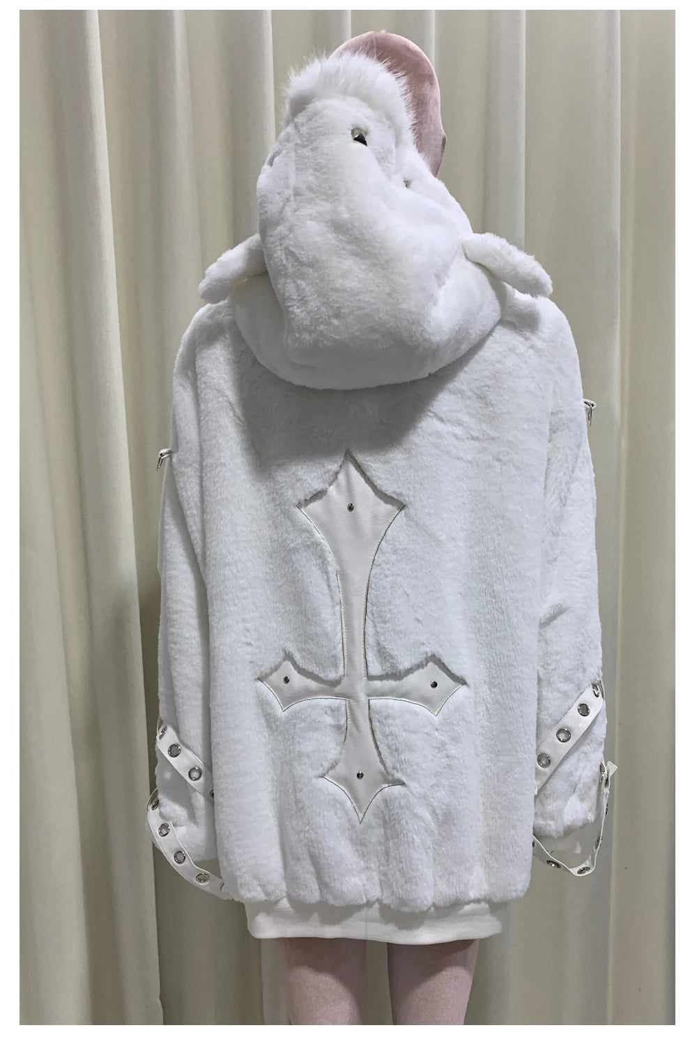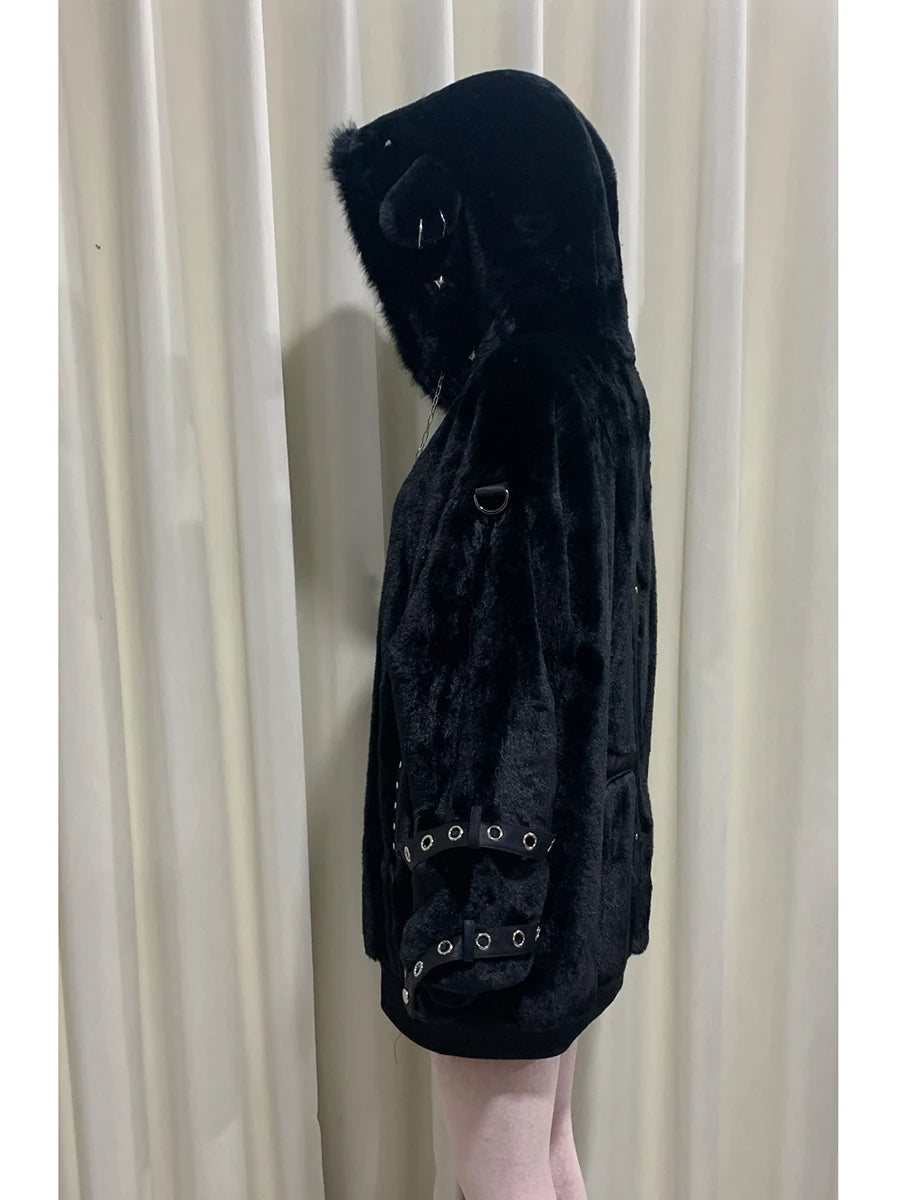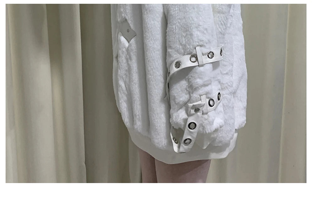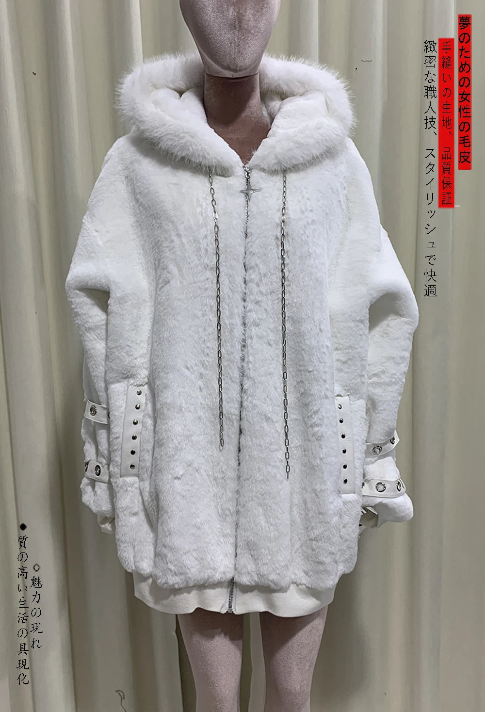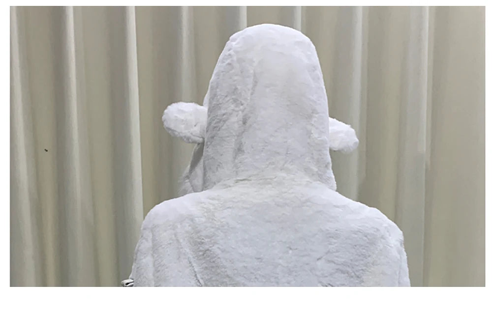 マウロイカルディ 秋冬 オーバーサイズ 暖かい ソフト ホワイト フェイクファーコート レディース フード付き 原宿系 ファッション ふわふわ ジャケット ストリートウェア 2025