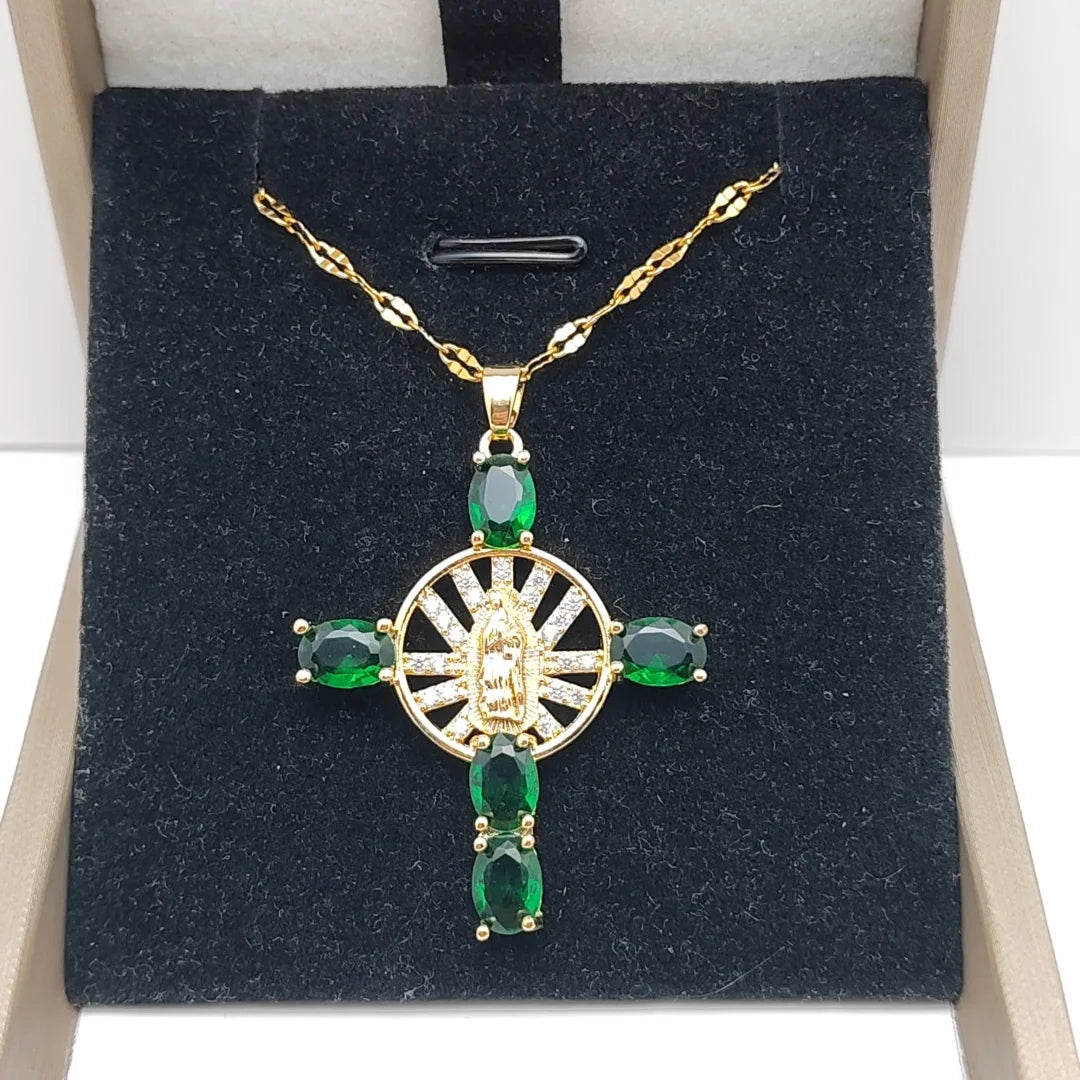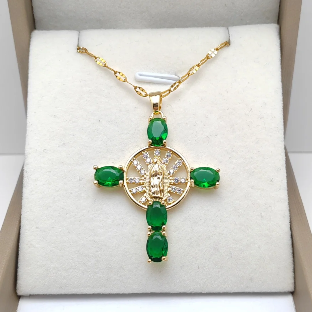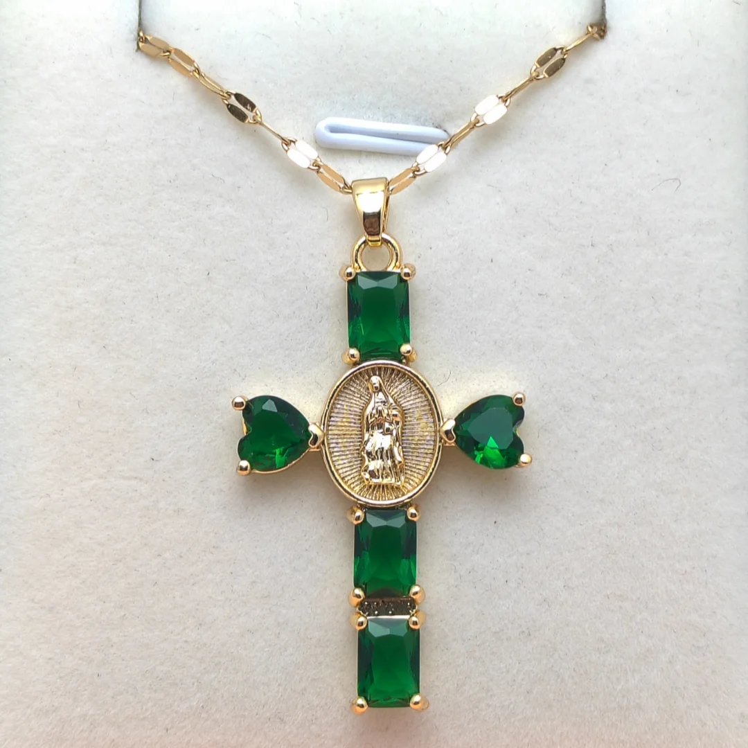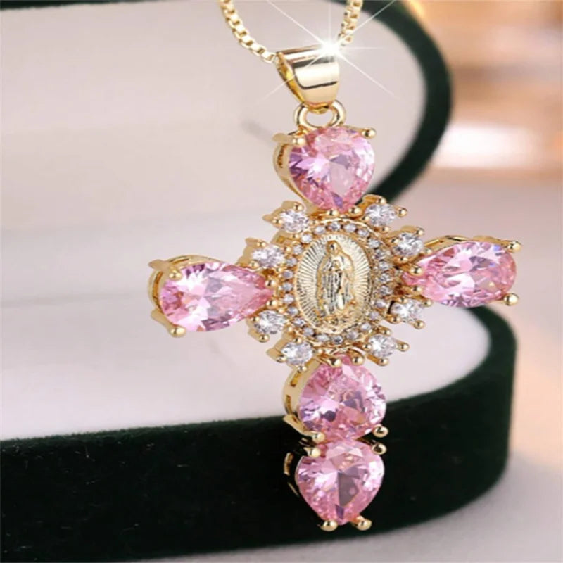 メンズとレディースのファッショナブルな鎖骨チェーンクロスマドンナネックレス、マイクロインレイジルコンペンダント付き