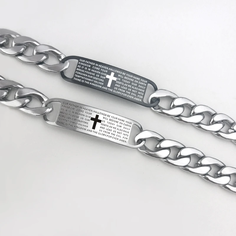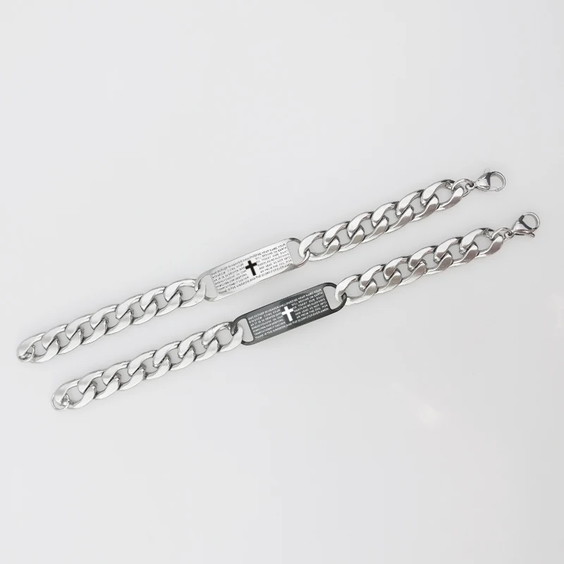 メンズ クロス 聖書文字 クリスチャンブレスレット 彫刻 パンク ステンレススチール ファッションアクセサリー ジュエリー