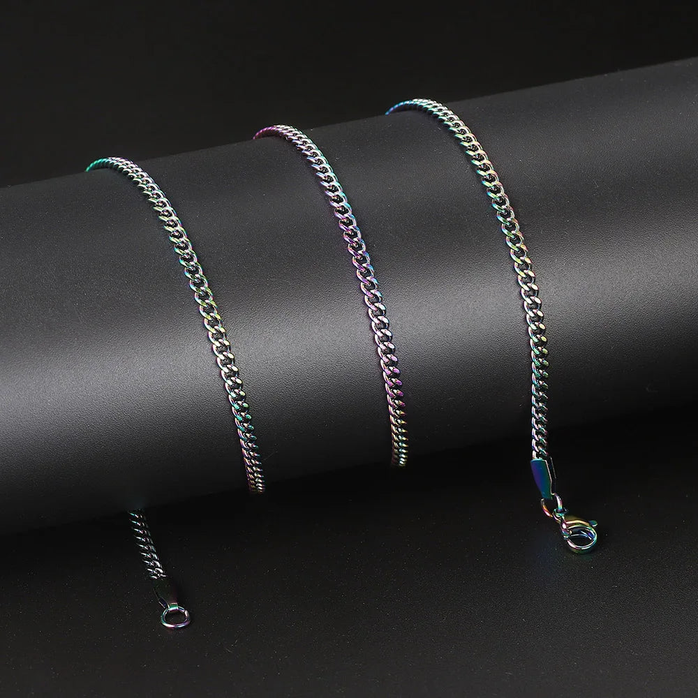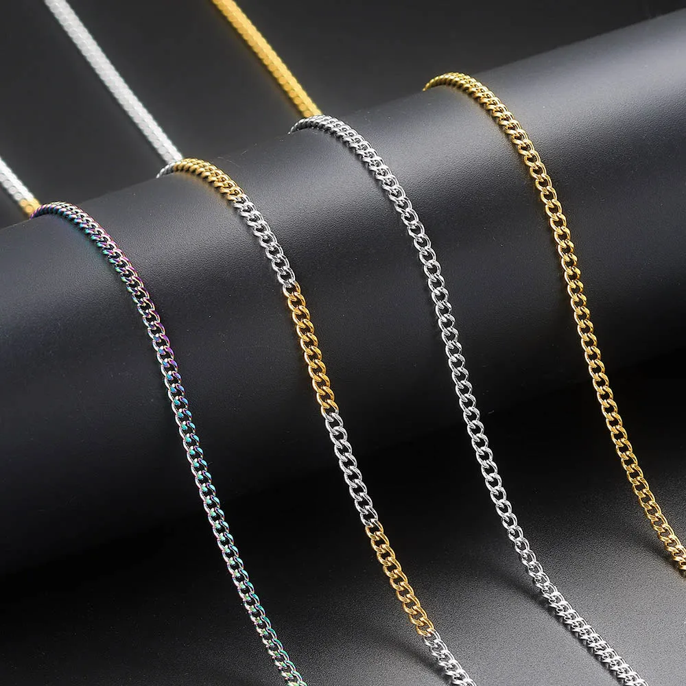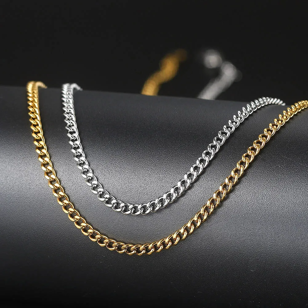 メンズ キューバンチェーンネックレス 3/5mm 60cm ステンレススチール ミニマリスト シルバーカラー ファッション ヒップホップ ジュエリー トレンド アクセサリー ギフト