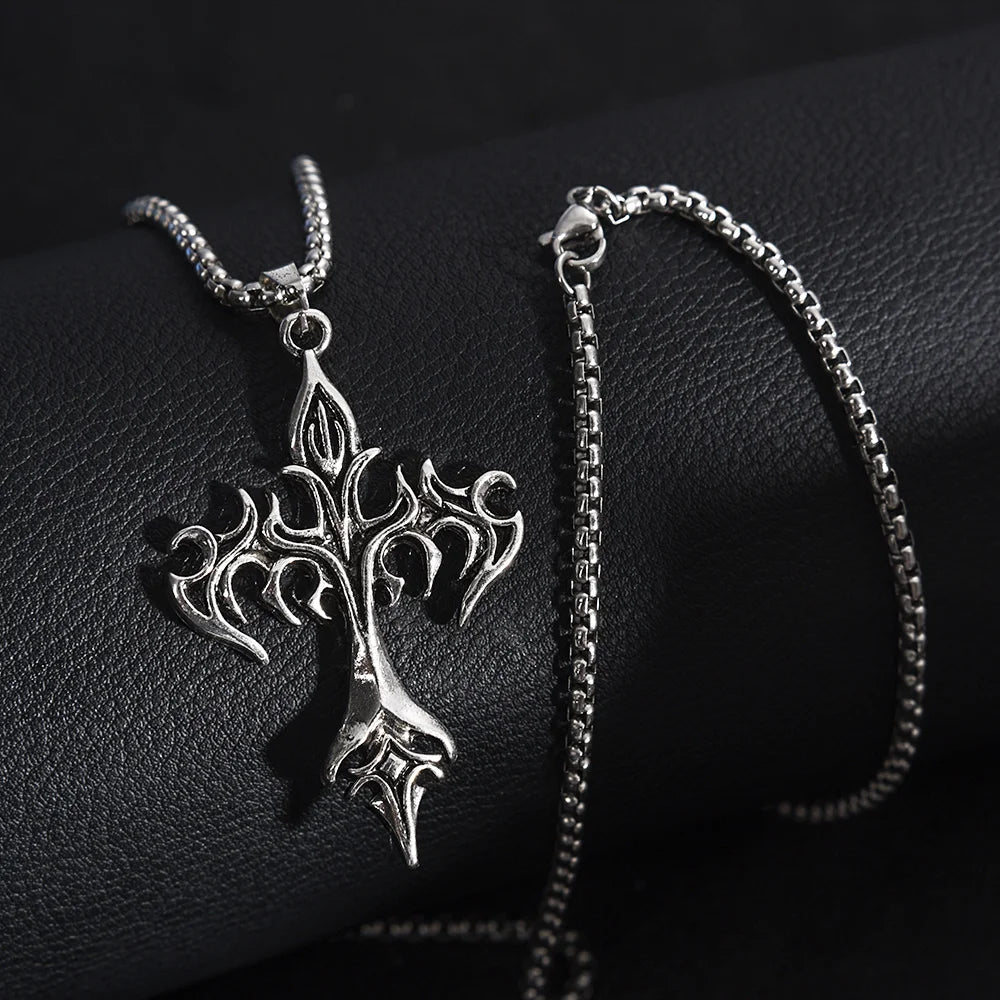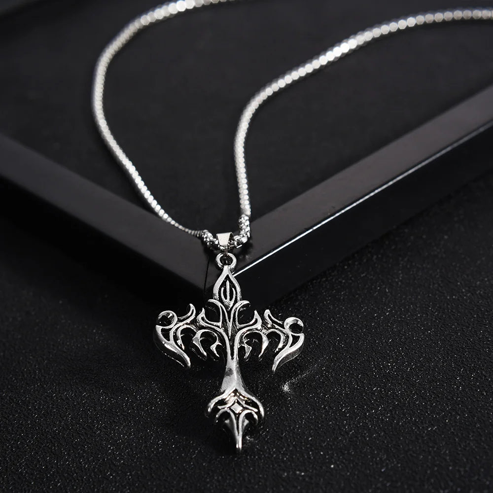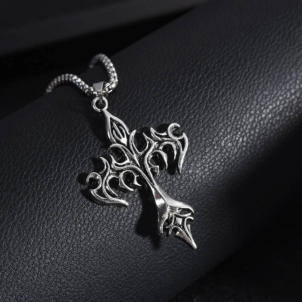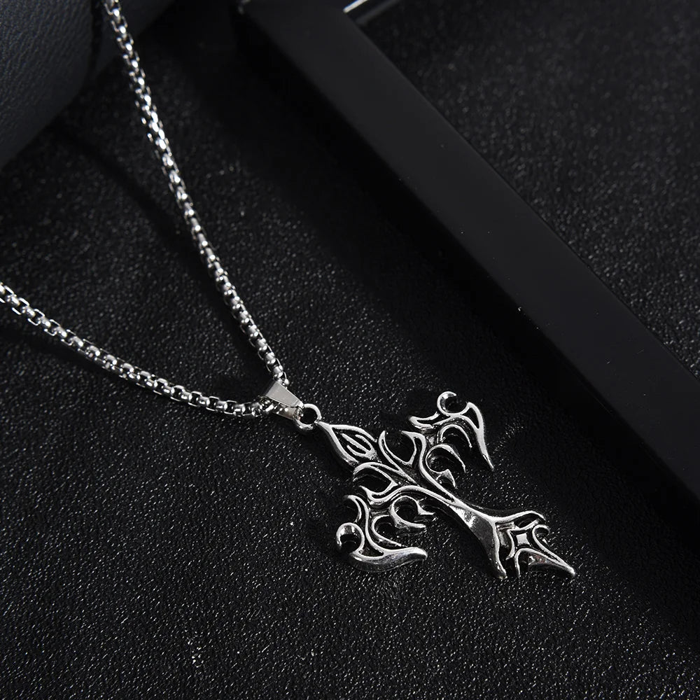 メンズファッション パンク フレイムクロスペンダントチェーンネックレス レディース 男性 ロングチェーン ヒップホップ ロック ゴシックジュエリーギフト