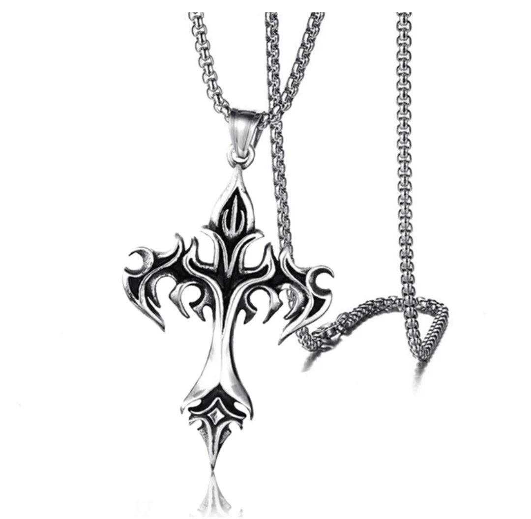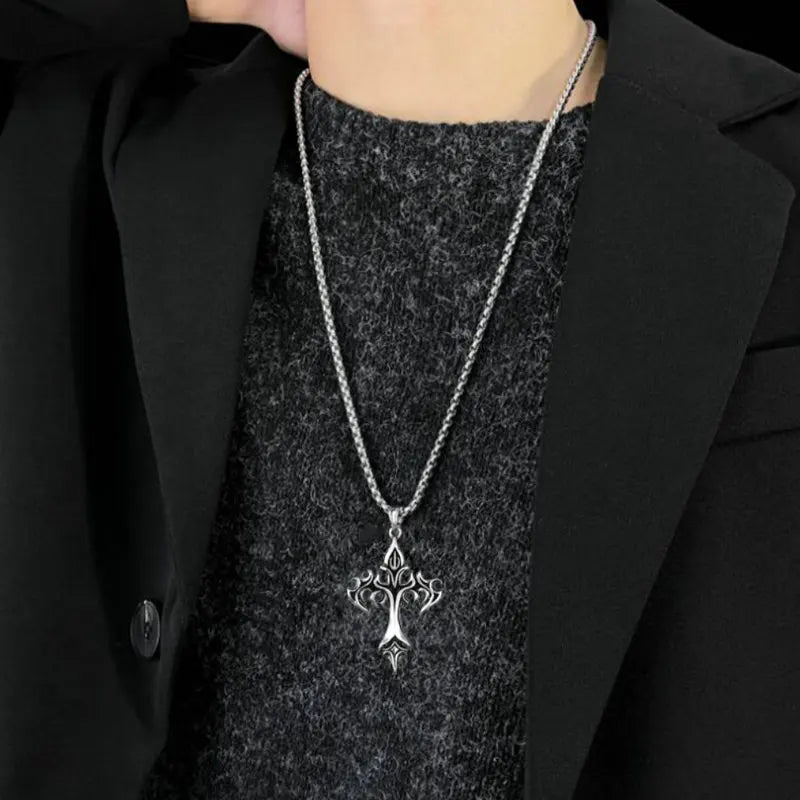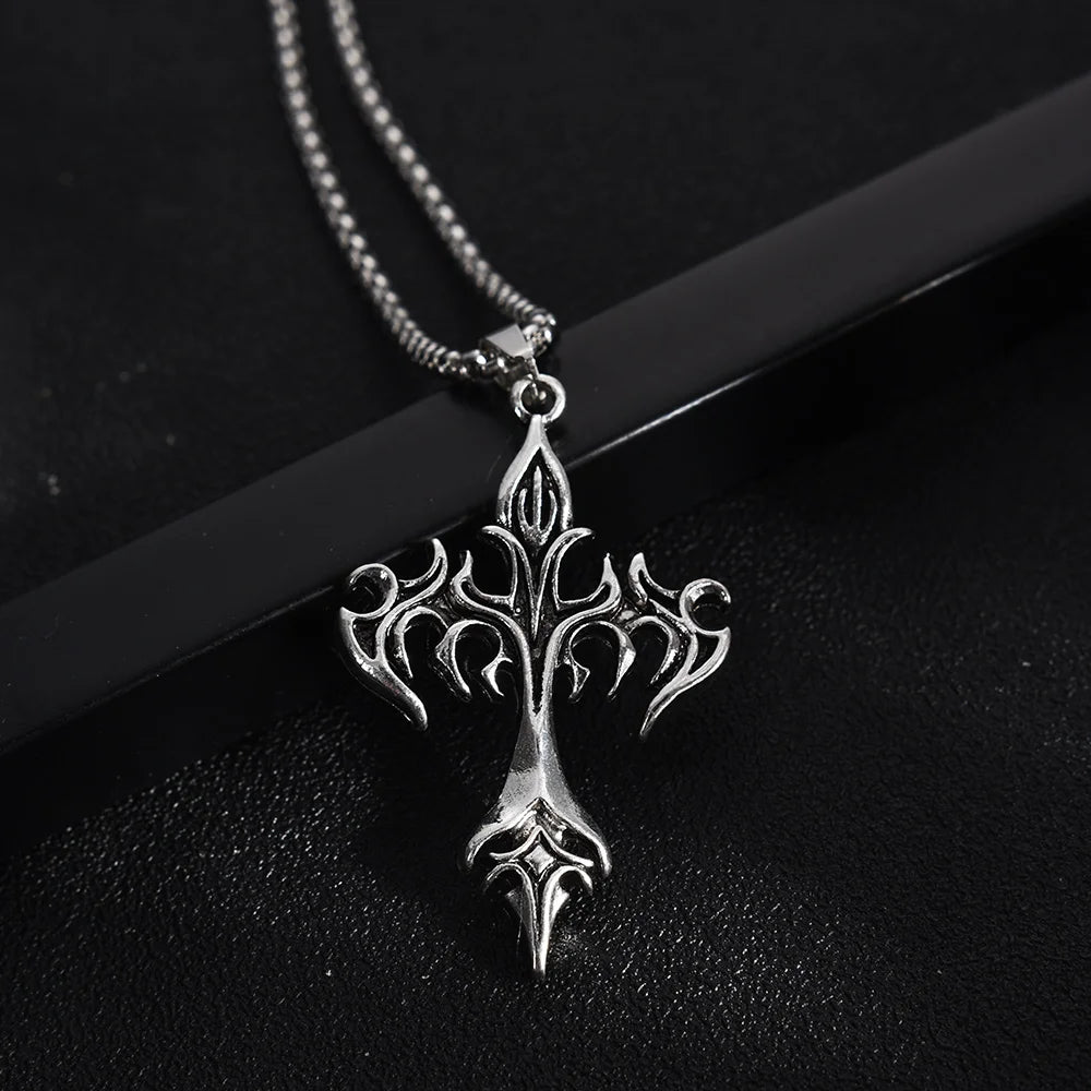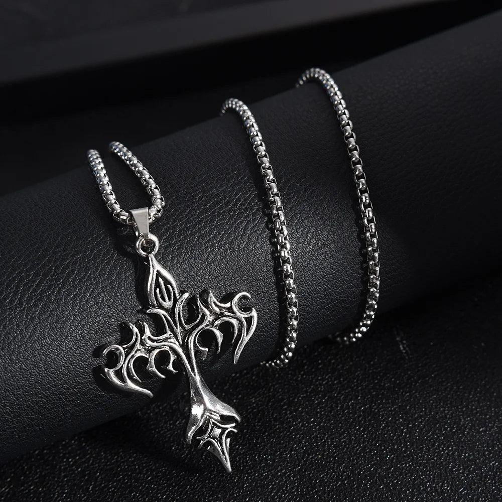 メンズファッション パンク フレイムクロスペンダントチェーンネックレス レディース 男性 ロングチェーン ヒップホップ ロック ゴシックジュエリーギフト