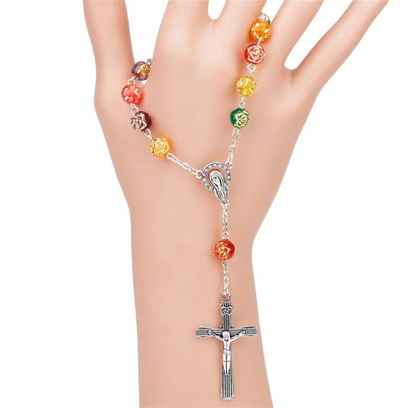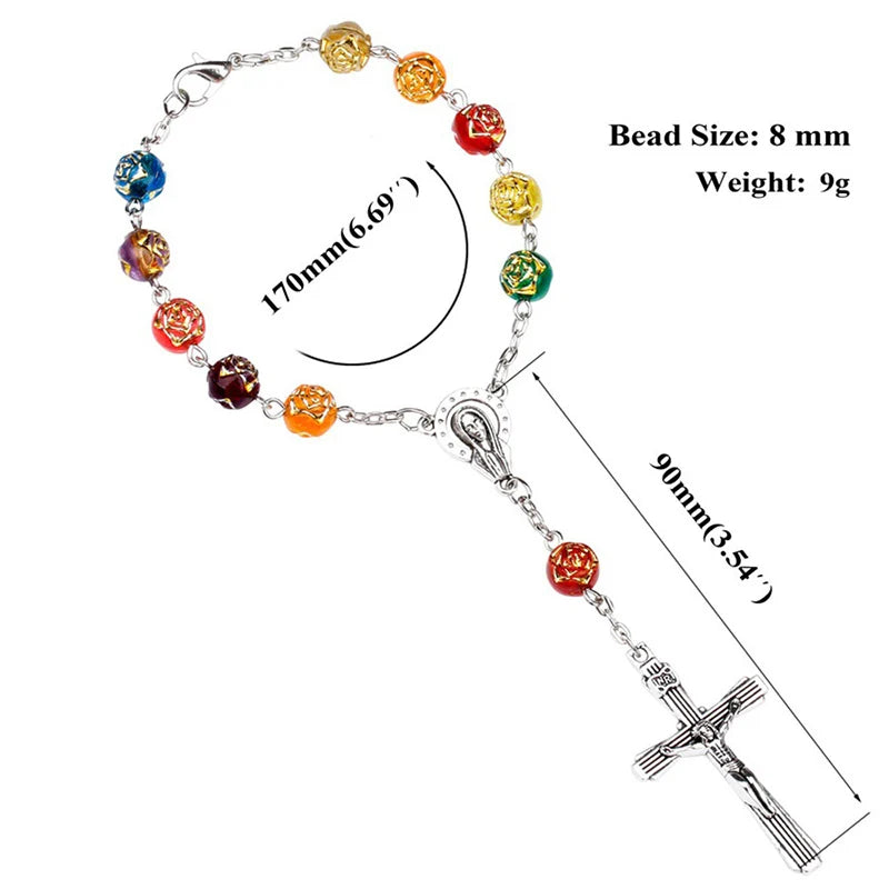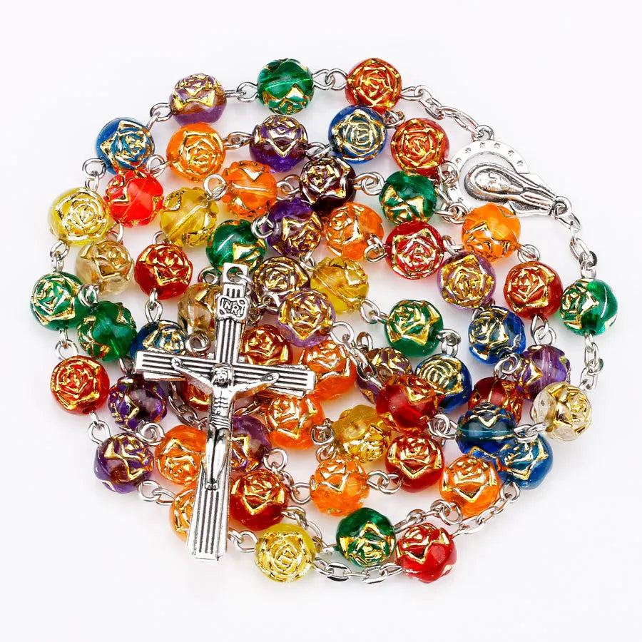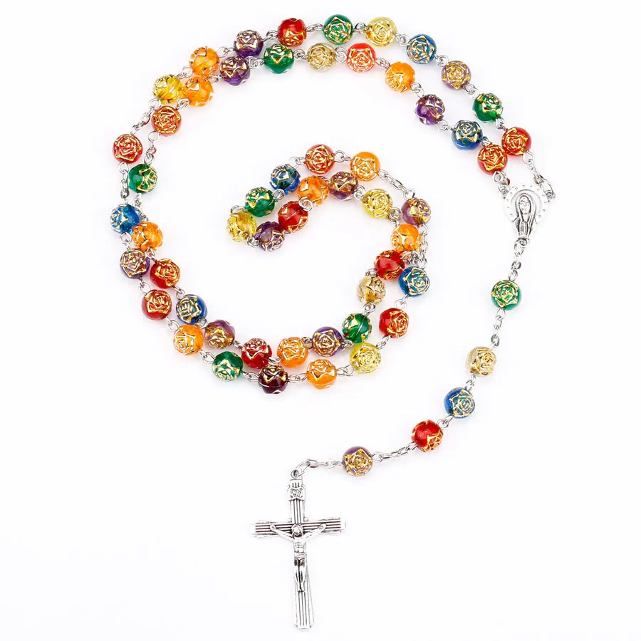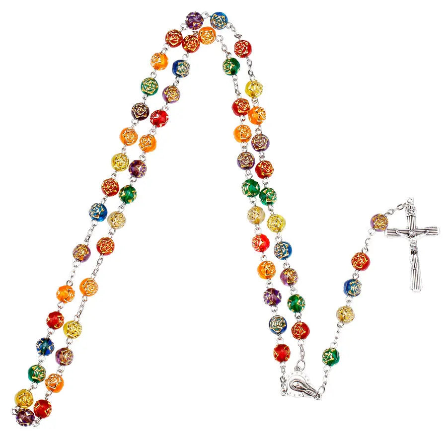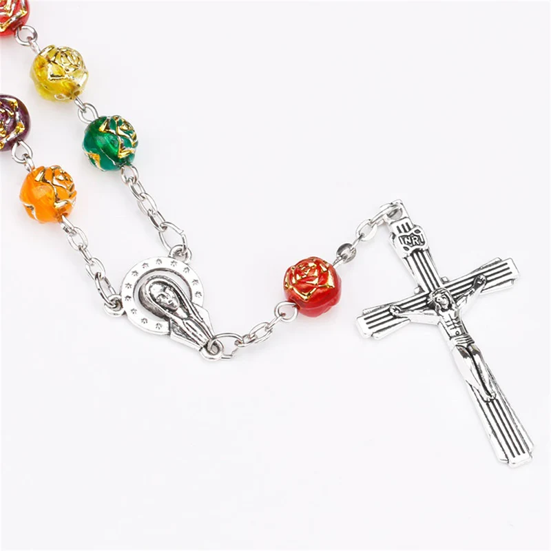 男性用祈りのカトリックロザリオネックレス ロングビーズチェーン クロスペンダントネックレス 女性用 宗教ジュエリー ロザリオ 教会ギフト