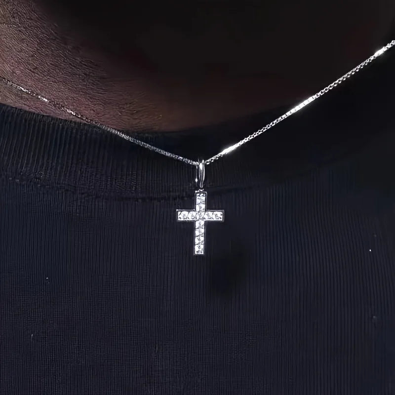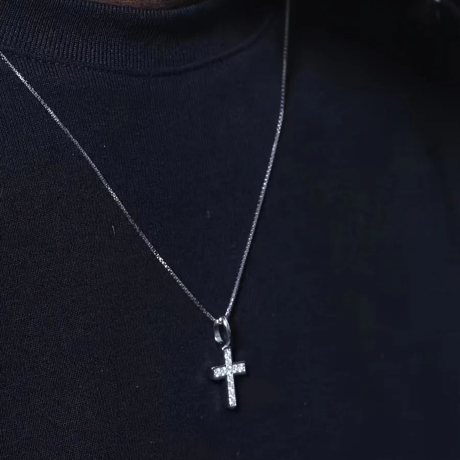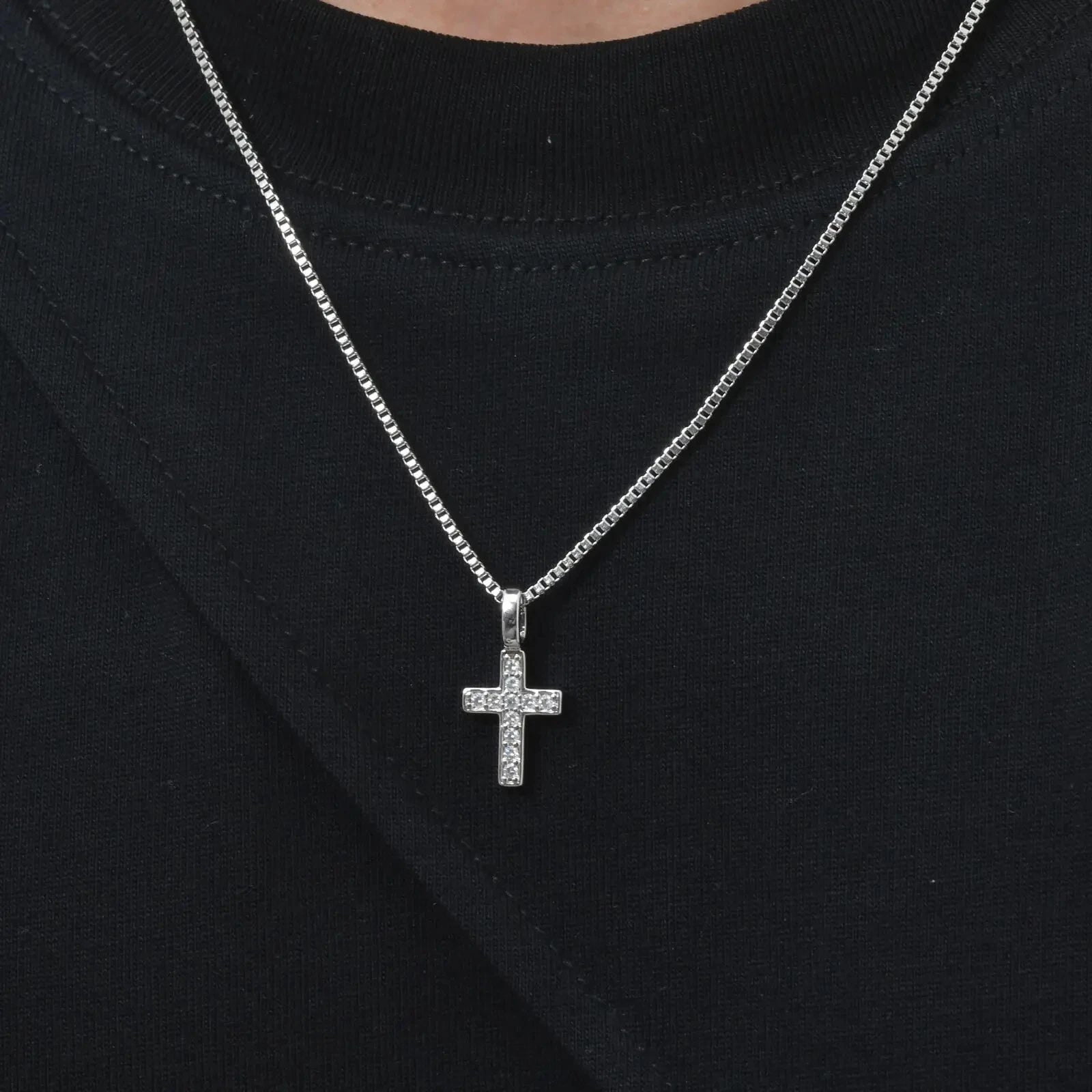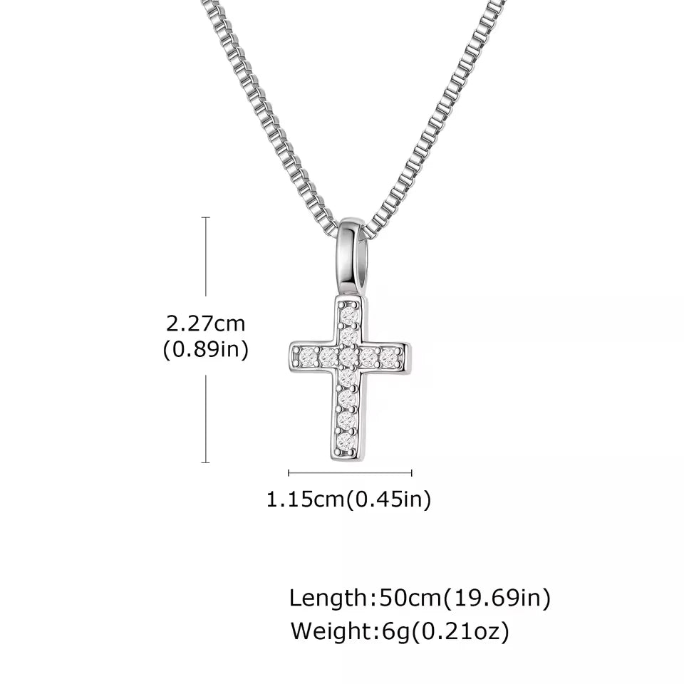 メンズ・ボーイズ用ミニクロスネックレス、防水フルジルコンクロスペンダントネックレス、ヒップホップラップクールカラーギフト