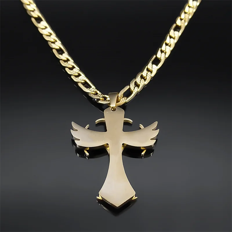 - 新着 メンズ ヒップホップ ステンレススチール ゴールドカラー 十字架ネックレス 男性用ジュエリーギフト
