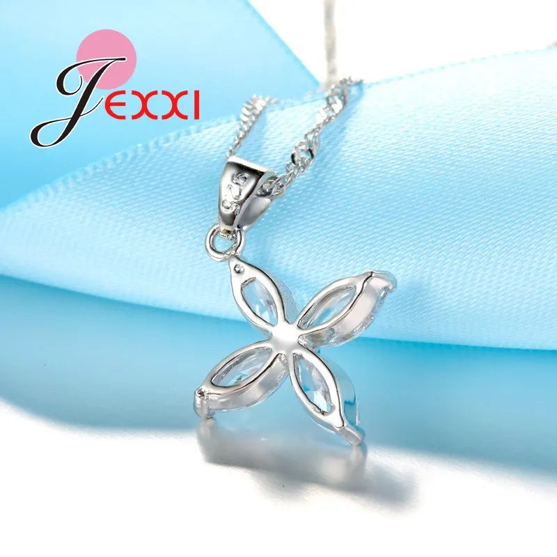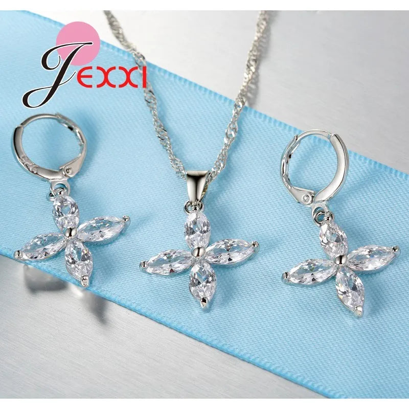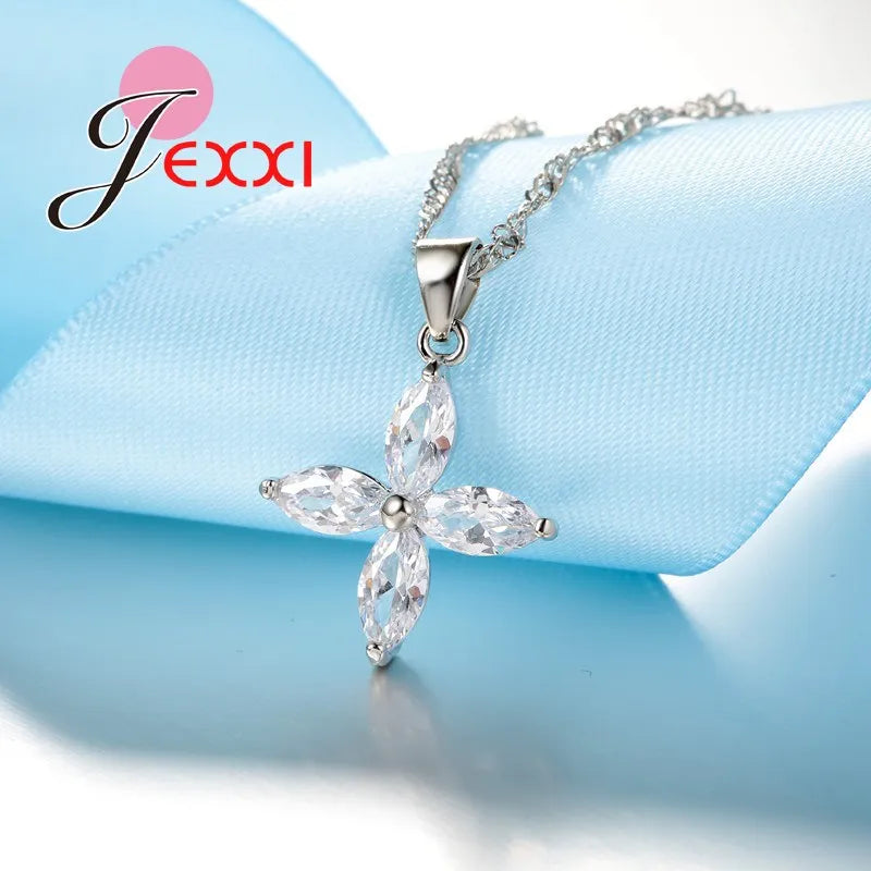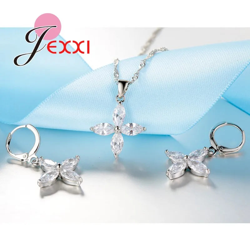 JEXXI 2016 新クラシックヴィンテージクロスデザイン 925スターリングシルバーペンダントネックレスイヤリングウェディングブライダルジュエリーセットレディース用