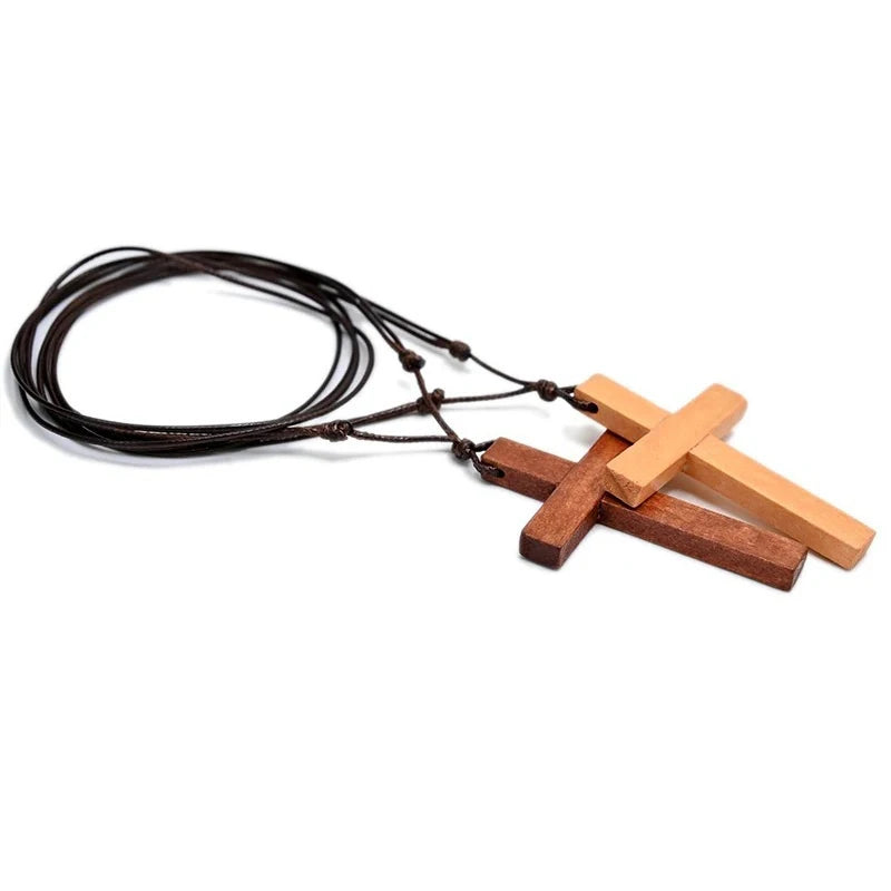 男性と女性のための新しいファッション個性的な木製クロスペンダントネックレスミニマリストパーティージュエリーギフト