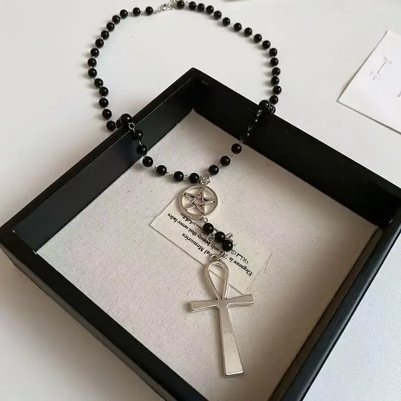 新しいファッションパーソナライズクロスロングビーズネックレスレディースビーズチェーンヴィンテージパンクゴシックロングネックレスジュエリーギフト