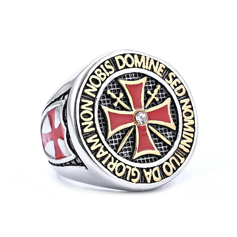 シンプルでトレンディなヨーロッパとアメリカの赤十字リング、男性用、威圧的なテンプル騎士団のフリーメーソンリング、ファッションパーティージュエリーギフト