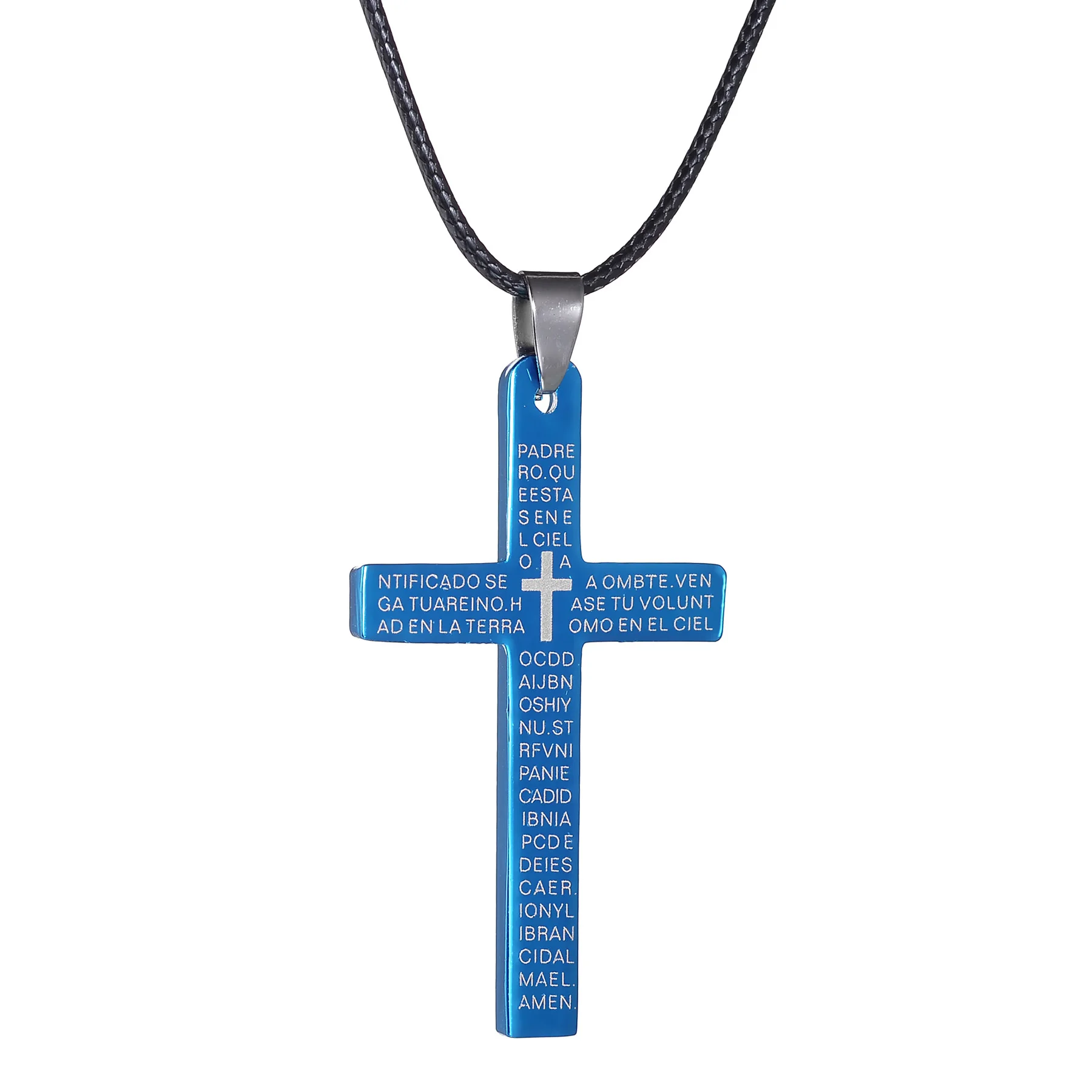 1.名前: メンズレディースミニマリストジュエリー男性用ステンレススチールクロスペンダントネックレスチョーカーブルーカラー