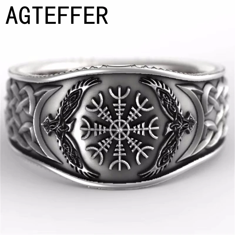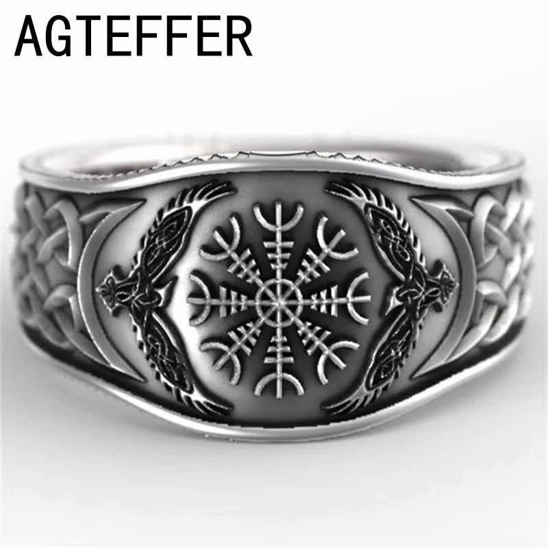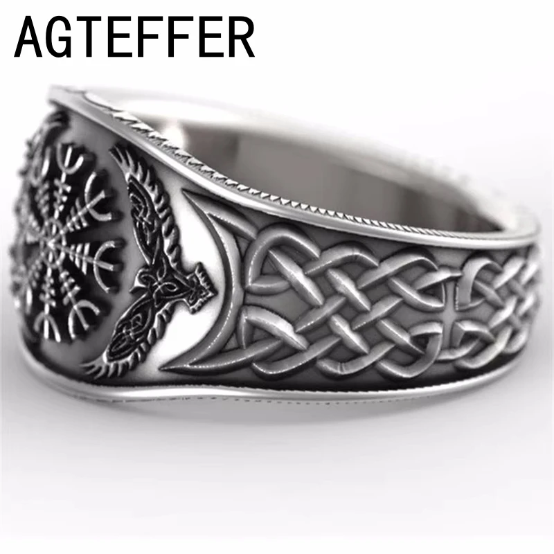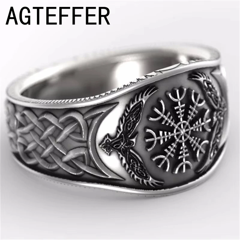 北欧神話の物語、バイキングケルトコンパス、レトロなグラフィティメッキS925タイシルバーリング(男性用)