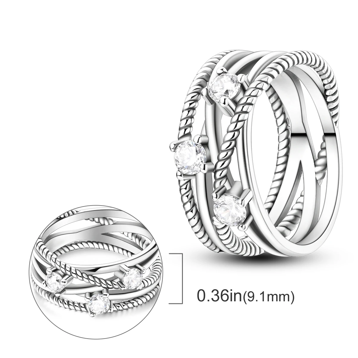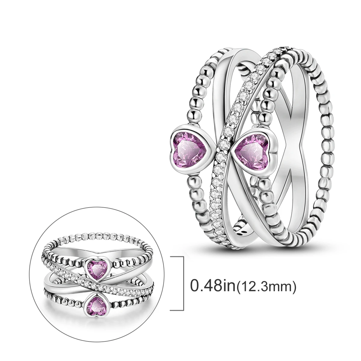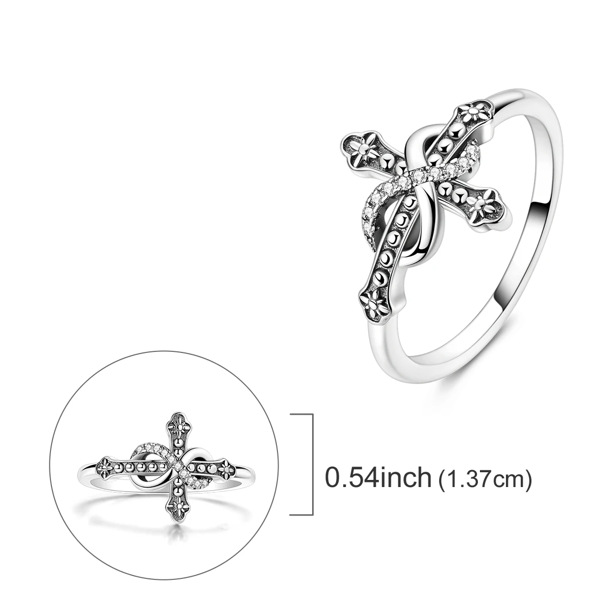 オリジナル925スターリングシルバーリング(女性用)ジルコン ホタル ハート クロス ファインジュエリー