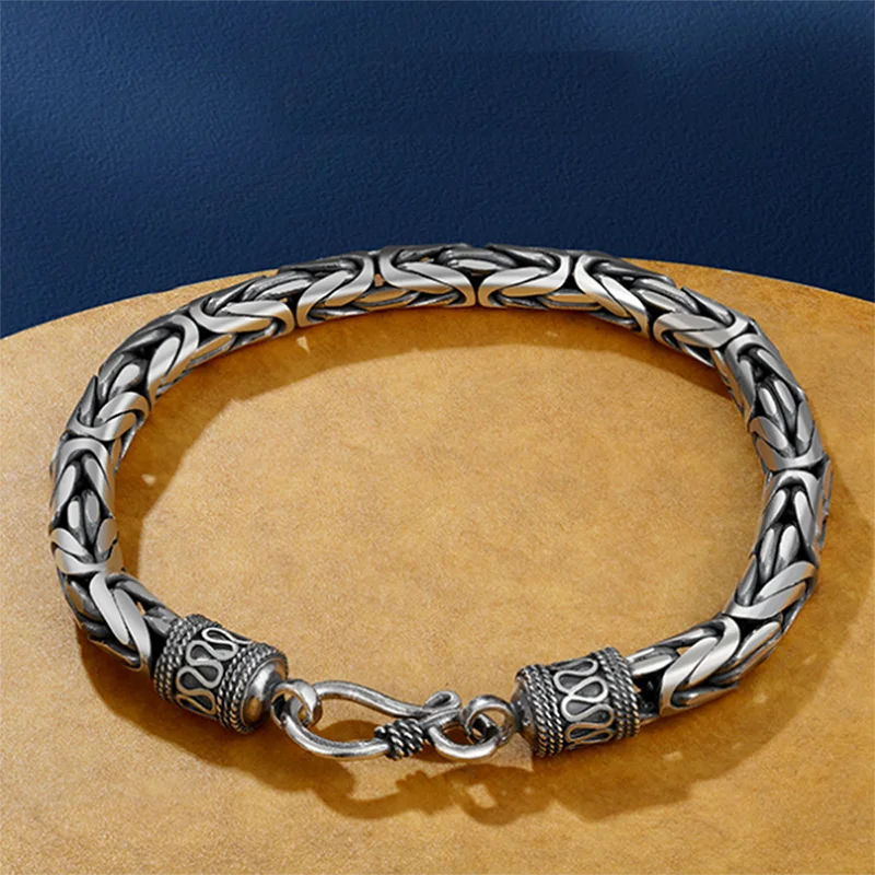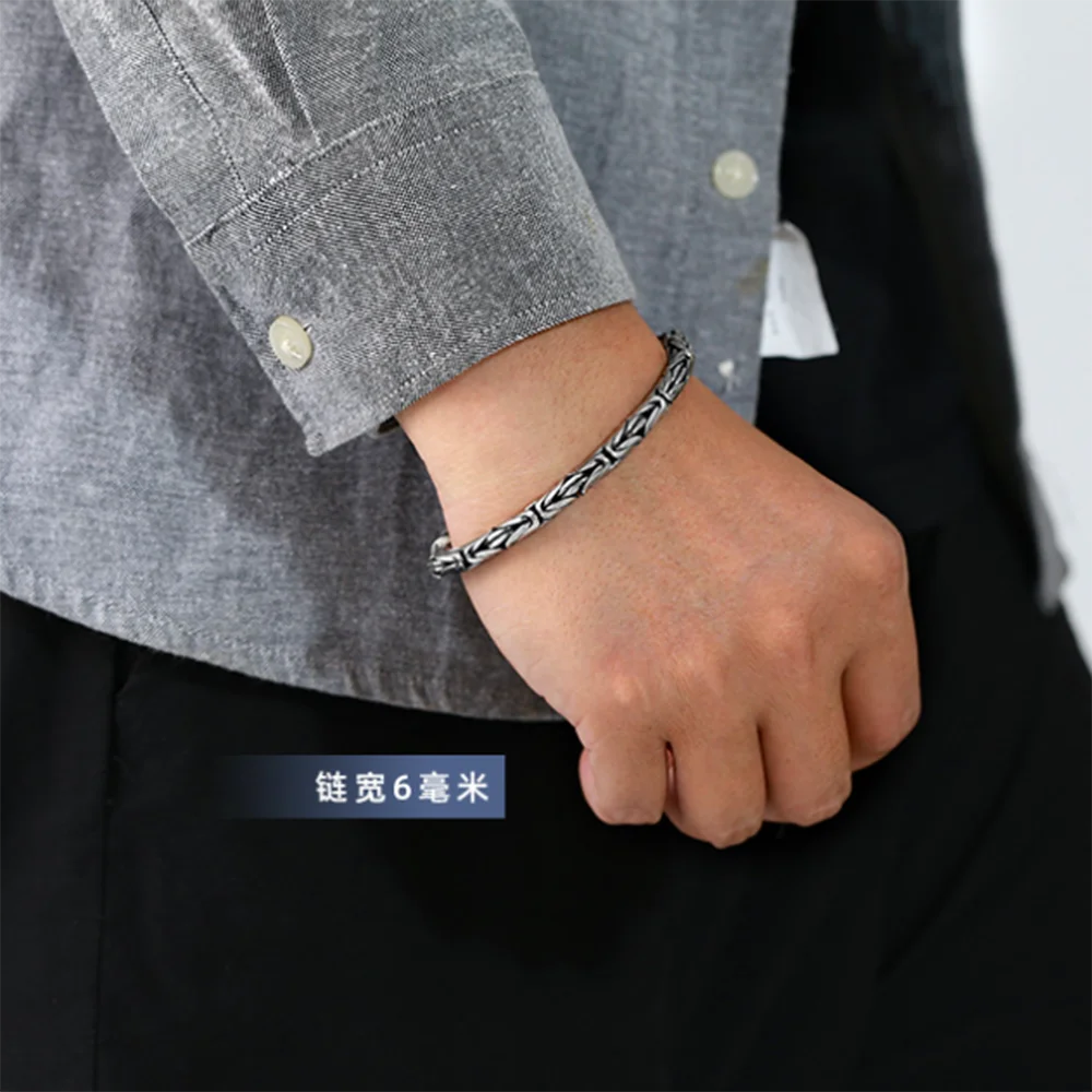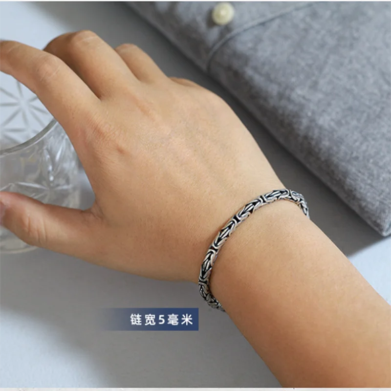 オリジナル 925 スターリングシルバー ブレスレット メンズ レディース オム ビザンチン リンク メンズブレスレット ファム ドゥ リュクス ジュエリー マネー