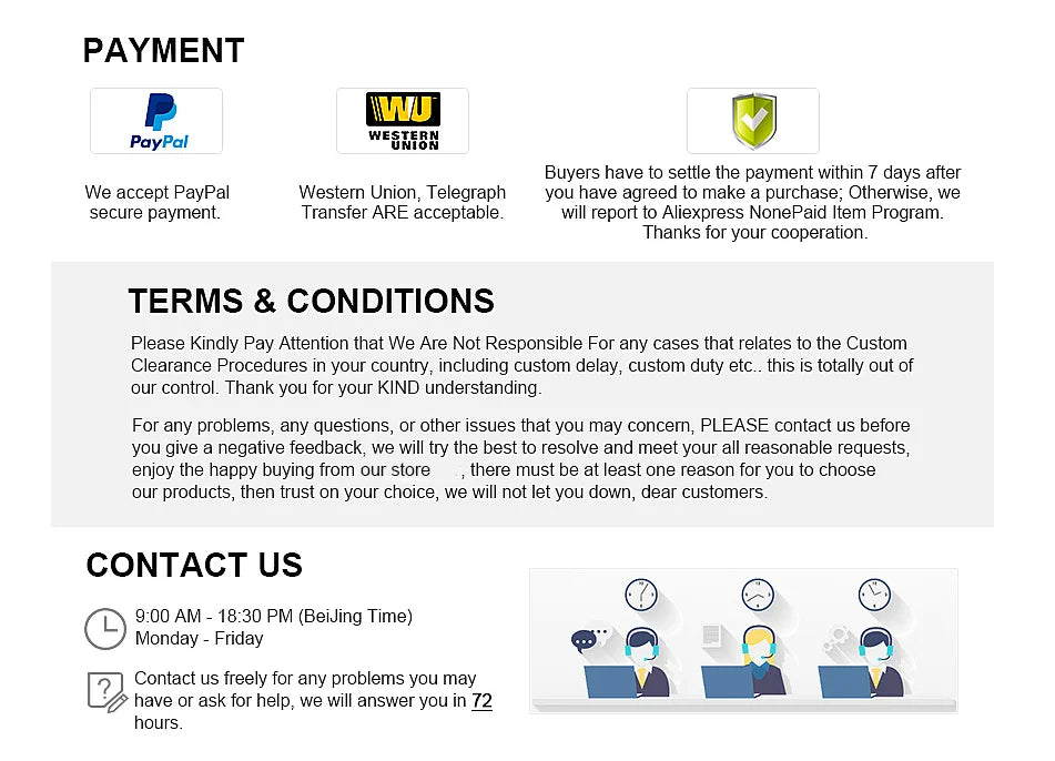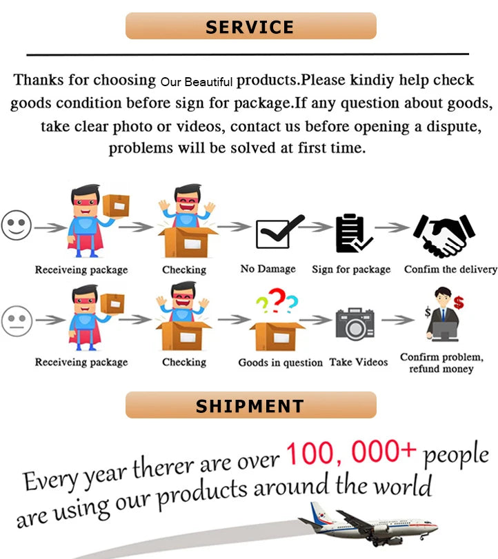 2.各商品は配送前に5回以上テストされますので、署名する前に必ず小包の内容を確認してください。破損している場合は受け取りを拒否し、解決策について直ちにご連絡ください。