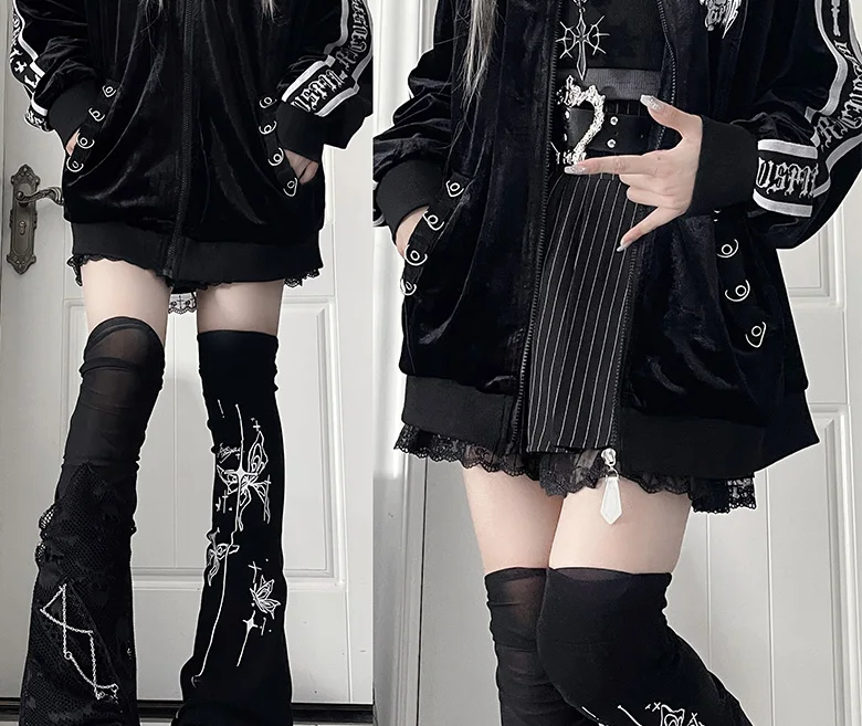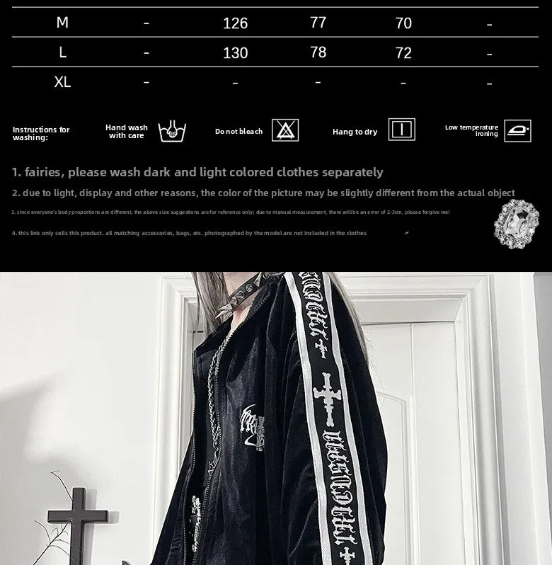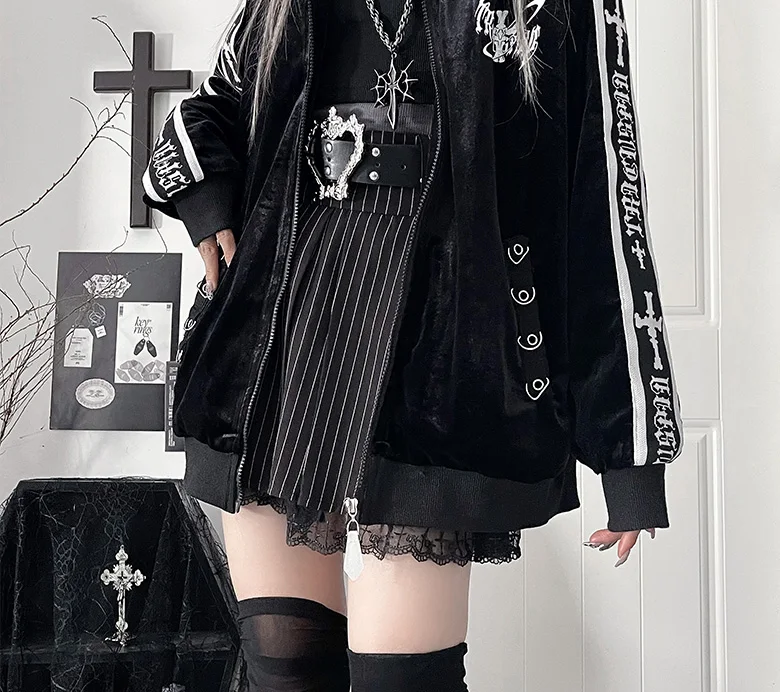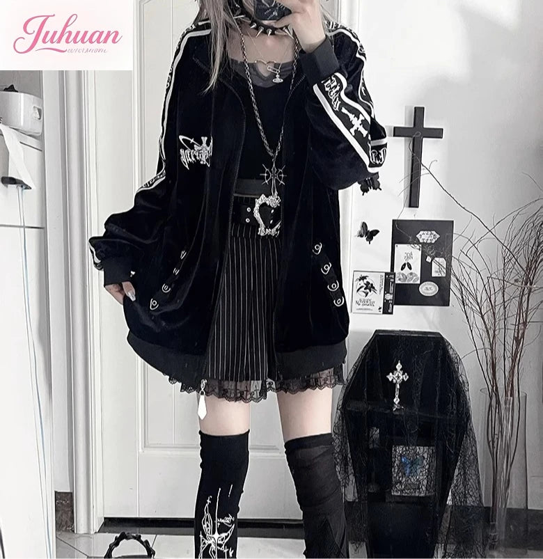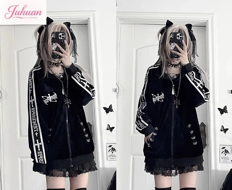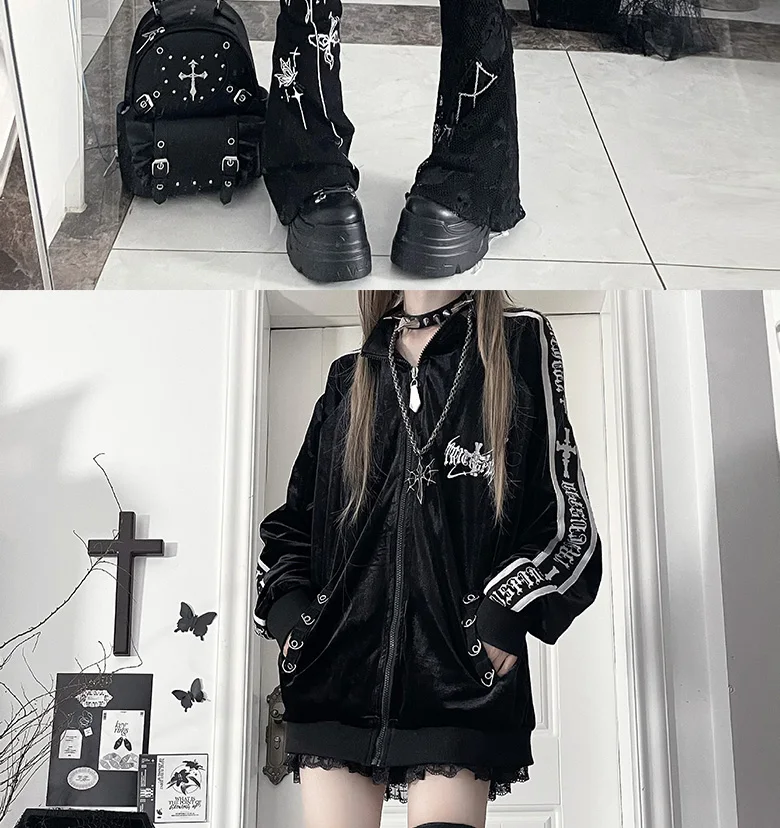 オリジナルサブカルチャーY2Kゴスベルベットプリントジッパージャケット秋新作ストリートパンクダークルーズスポーツコート原宿カジュアルジャケット