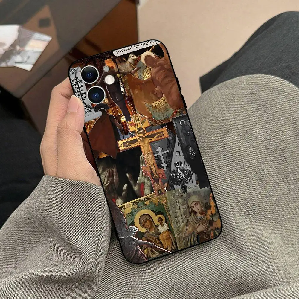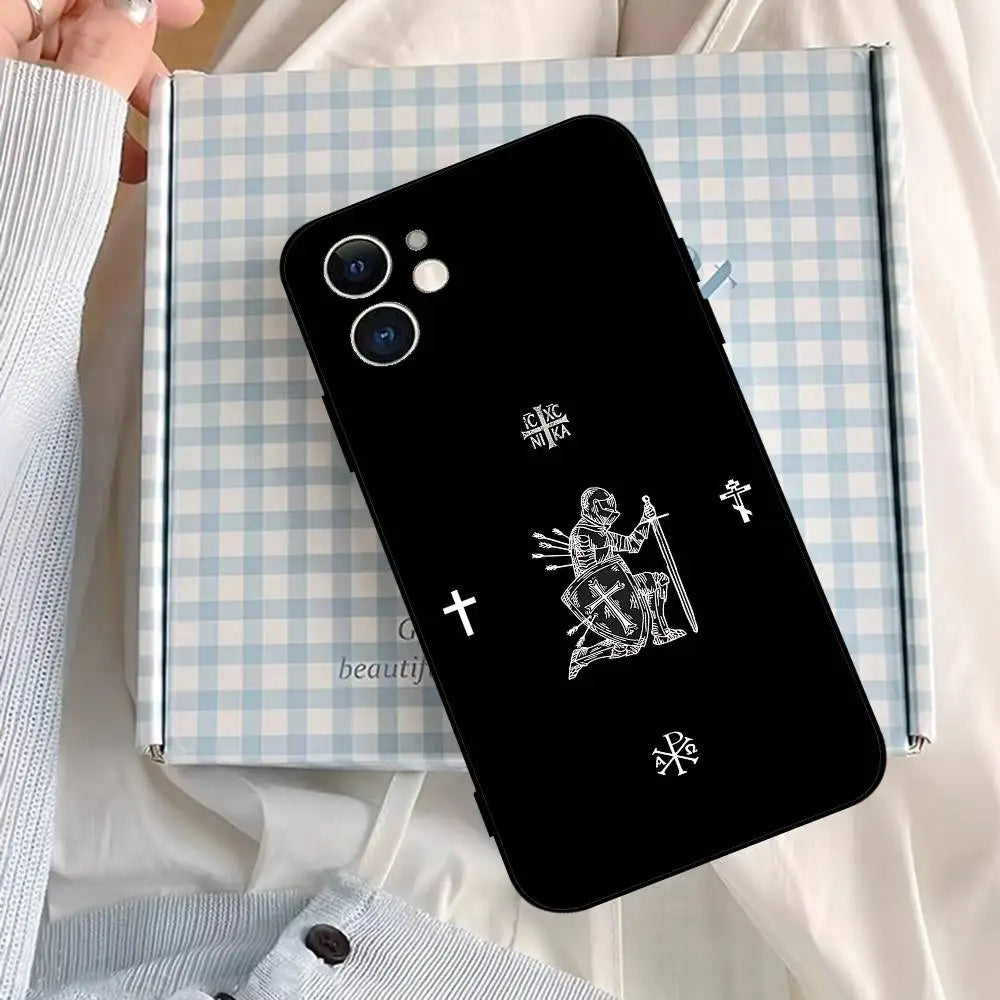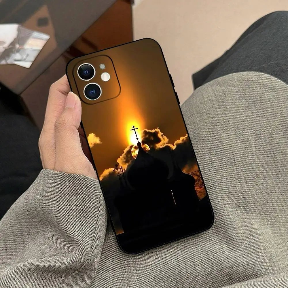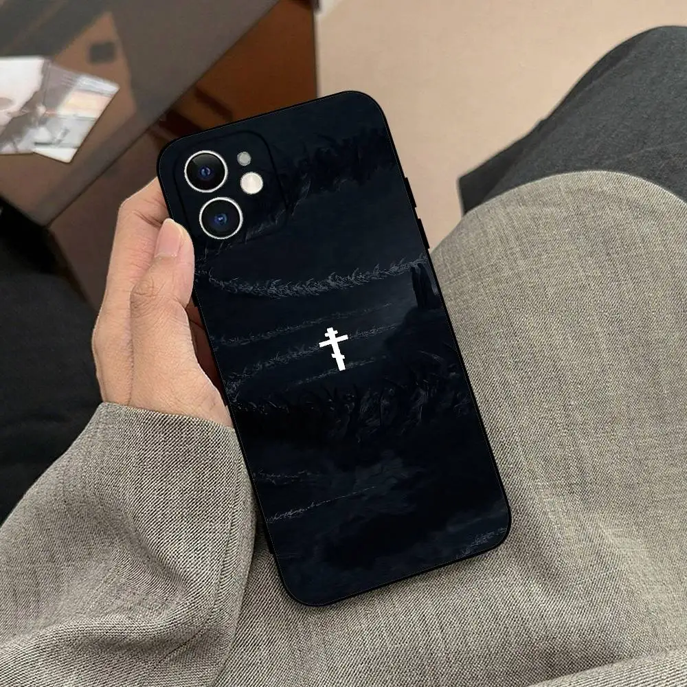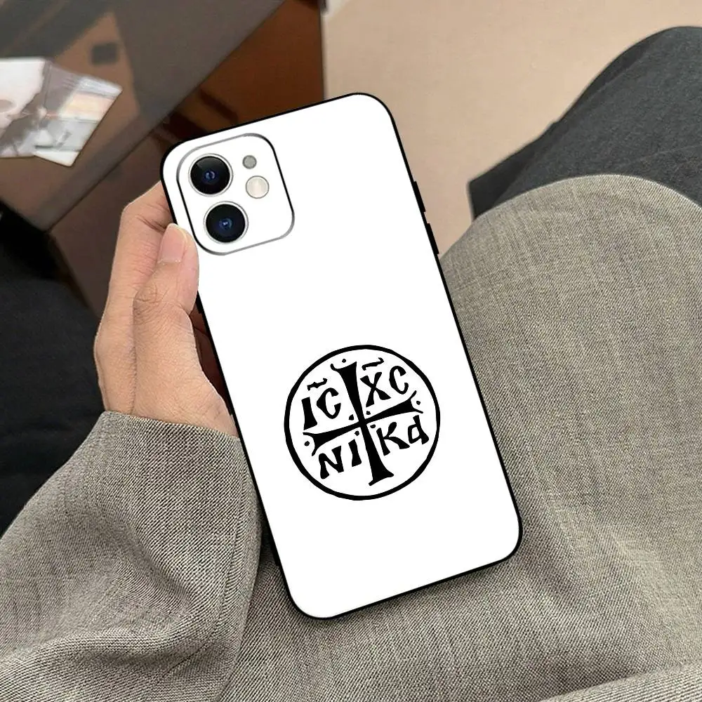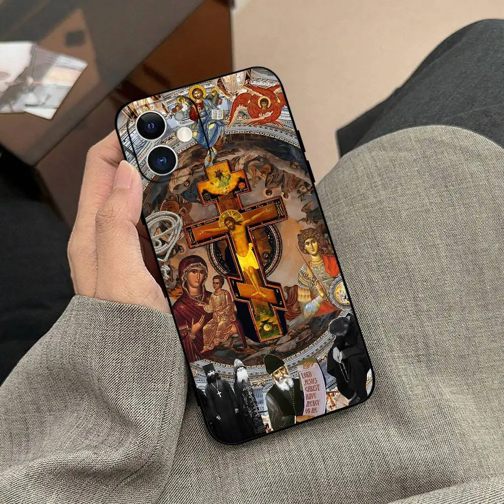 正教会の十字架アイコン教会電話ケース ブラック iPhone 17/16/15/13/14 Pro Max/ 11Plus/X/Xr/Xs Max 13mini用