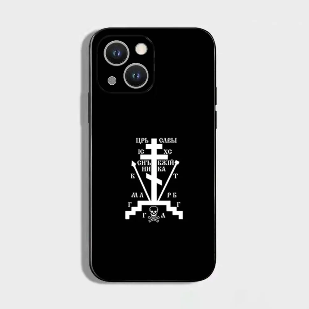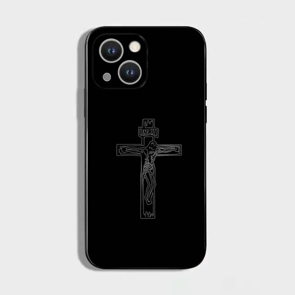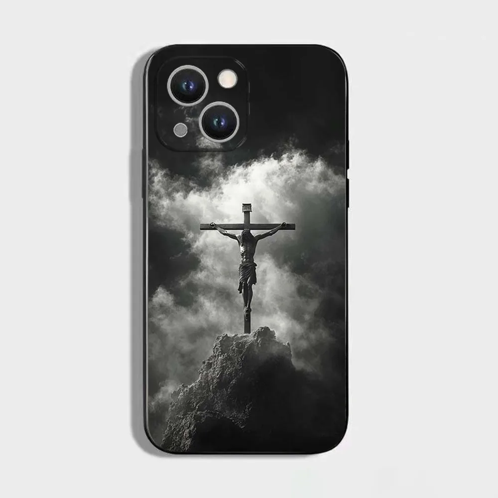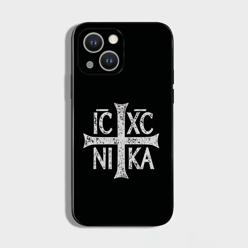 正教会の十字架アイコンの携帯電話ケース、iPhone 16、15、14、13、12、11 Plus、Pro Max、XS、X、XR、SE、Mini、8、7用、ソフトシリコンブラックカバー