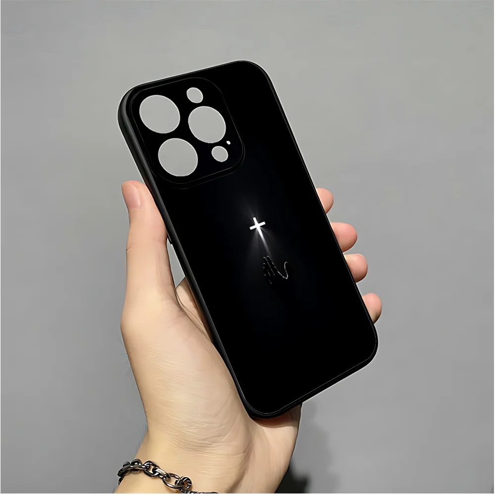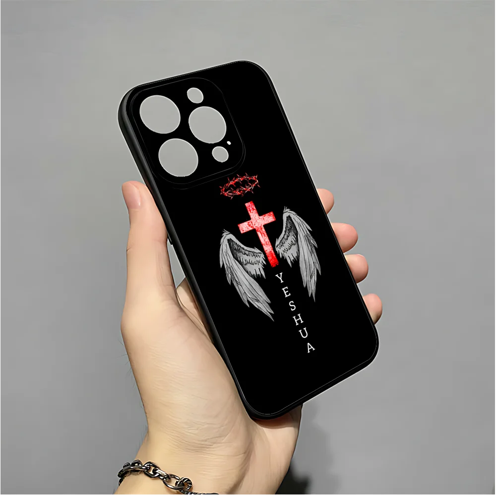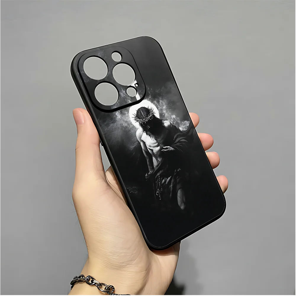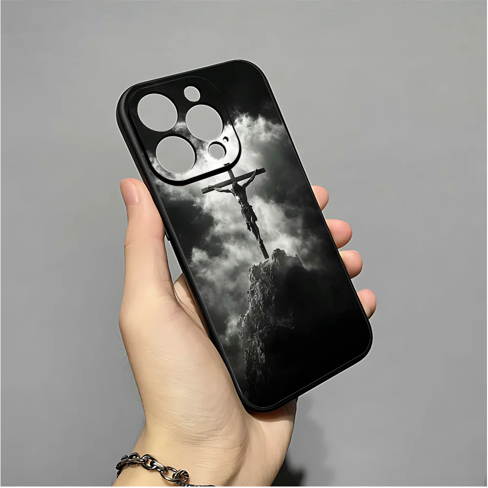 正教会の十字架の携帯電話ケース iPhone 16、15、14、13、12、11、XS、XR、X、8、7、Pro、Max、Plus、mini 用 シリコン ブラック カバー
