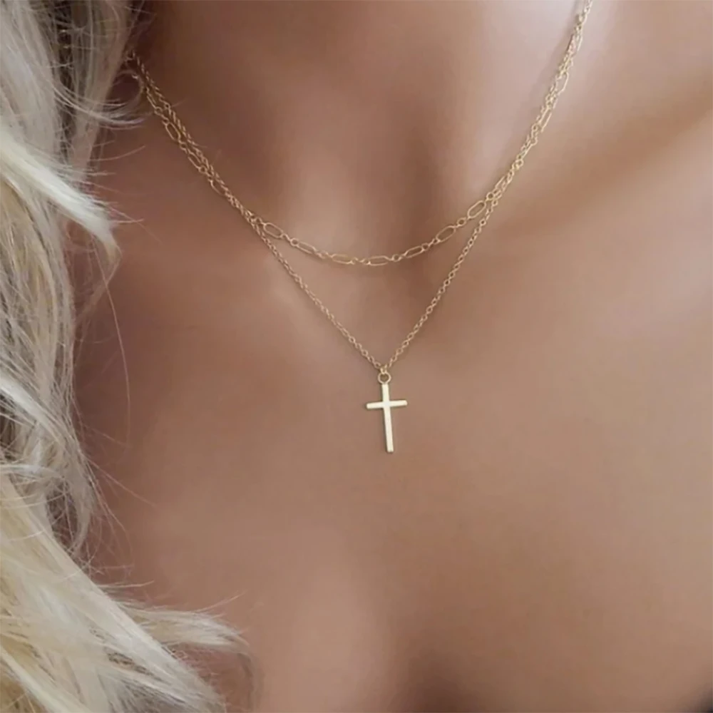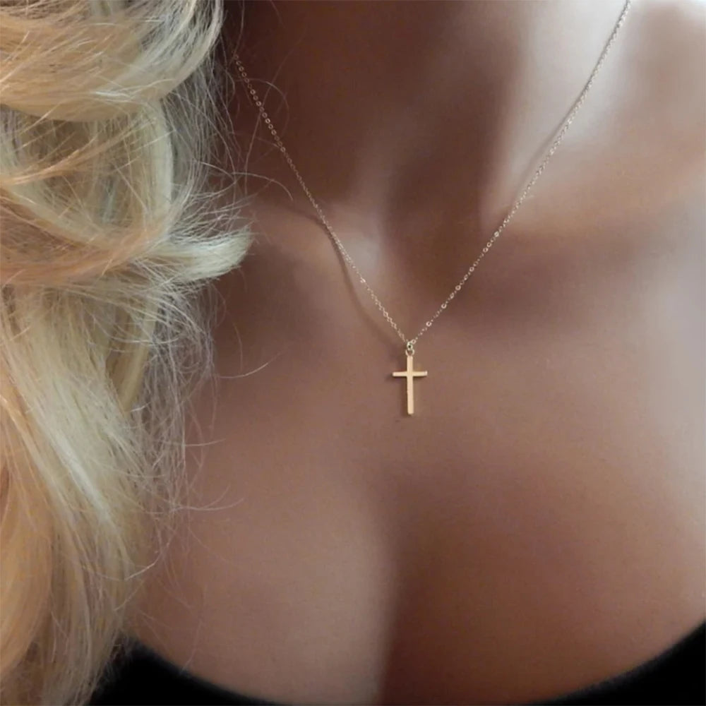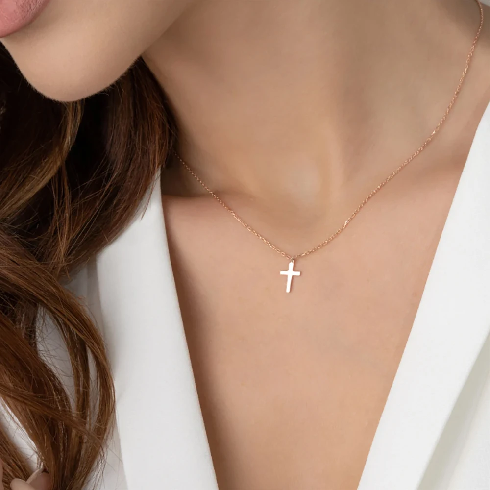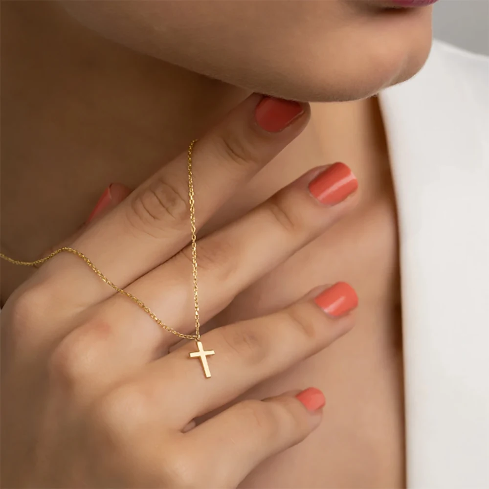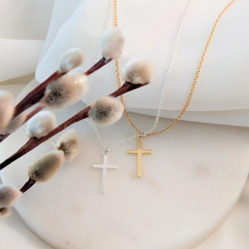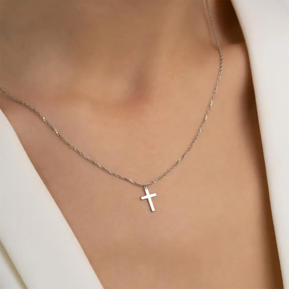 パーソナライズされたステンレススチールのメタルクロスネックレスは、男性と女性の日常使いに最適なシンプルでエレガントなジュエリーギフトです。