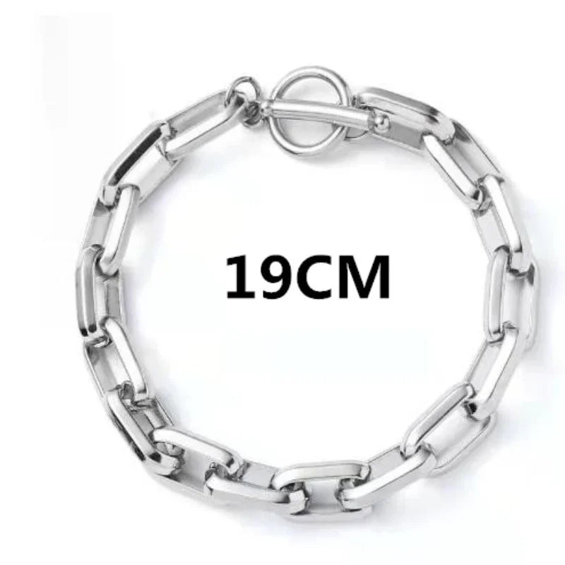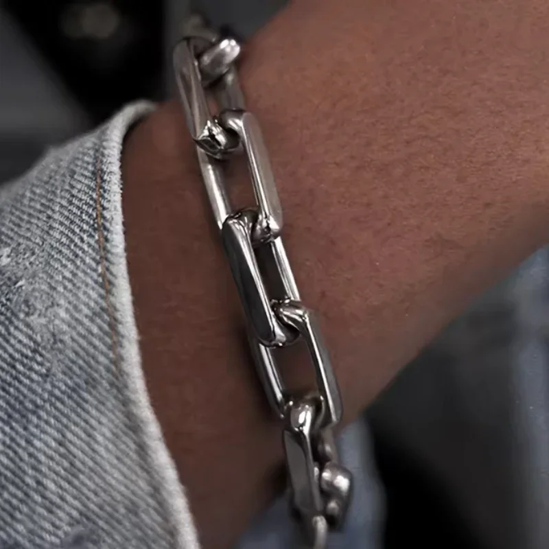 パンクスタイルのパーソナライズされたシルバーカラーチェーンスプライシングOTクラスプブレスレット男性と女性記念日のギフトホリデージュエリーアクセサリー