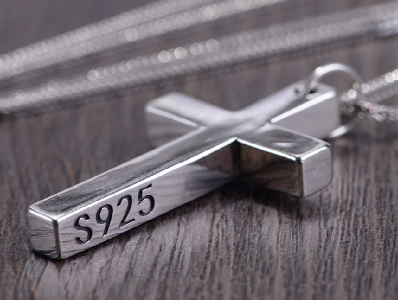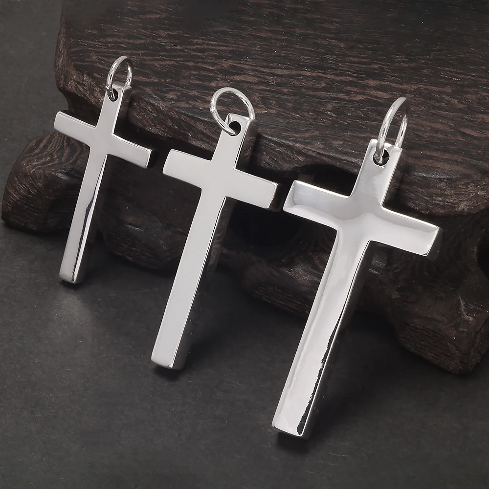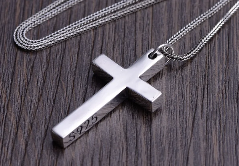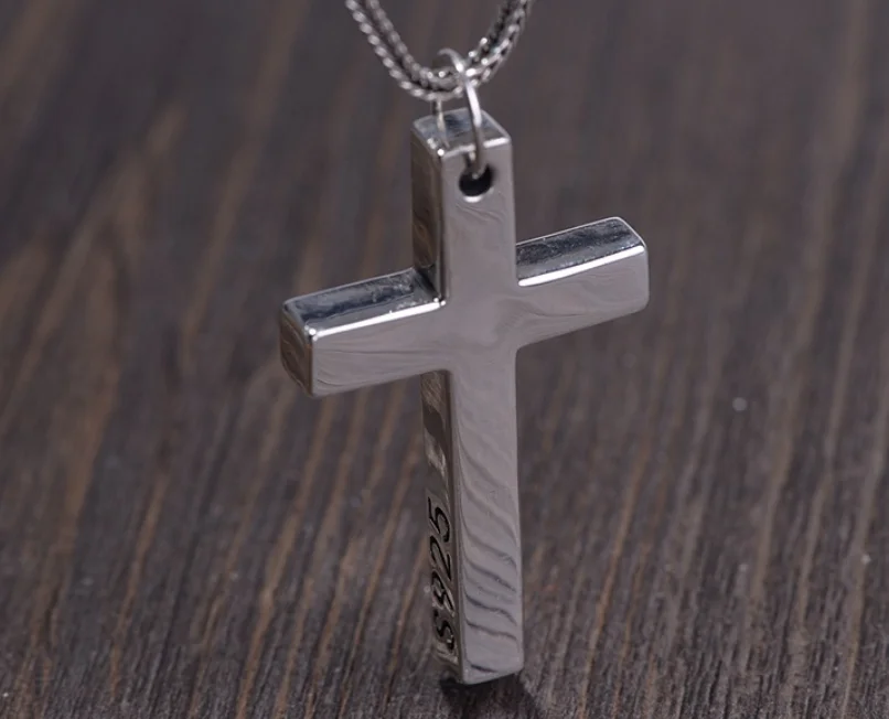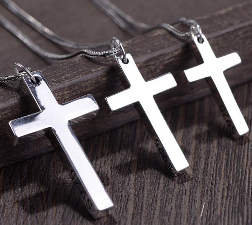 本物の925スターリングシルバークロスペンダント。男女兼用。滑らかな高光沢仕上げ。シンプルなデザインのイエス・キリストジュエリー。