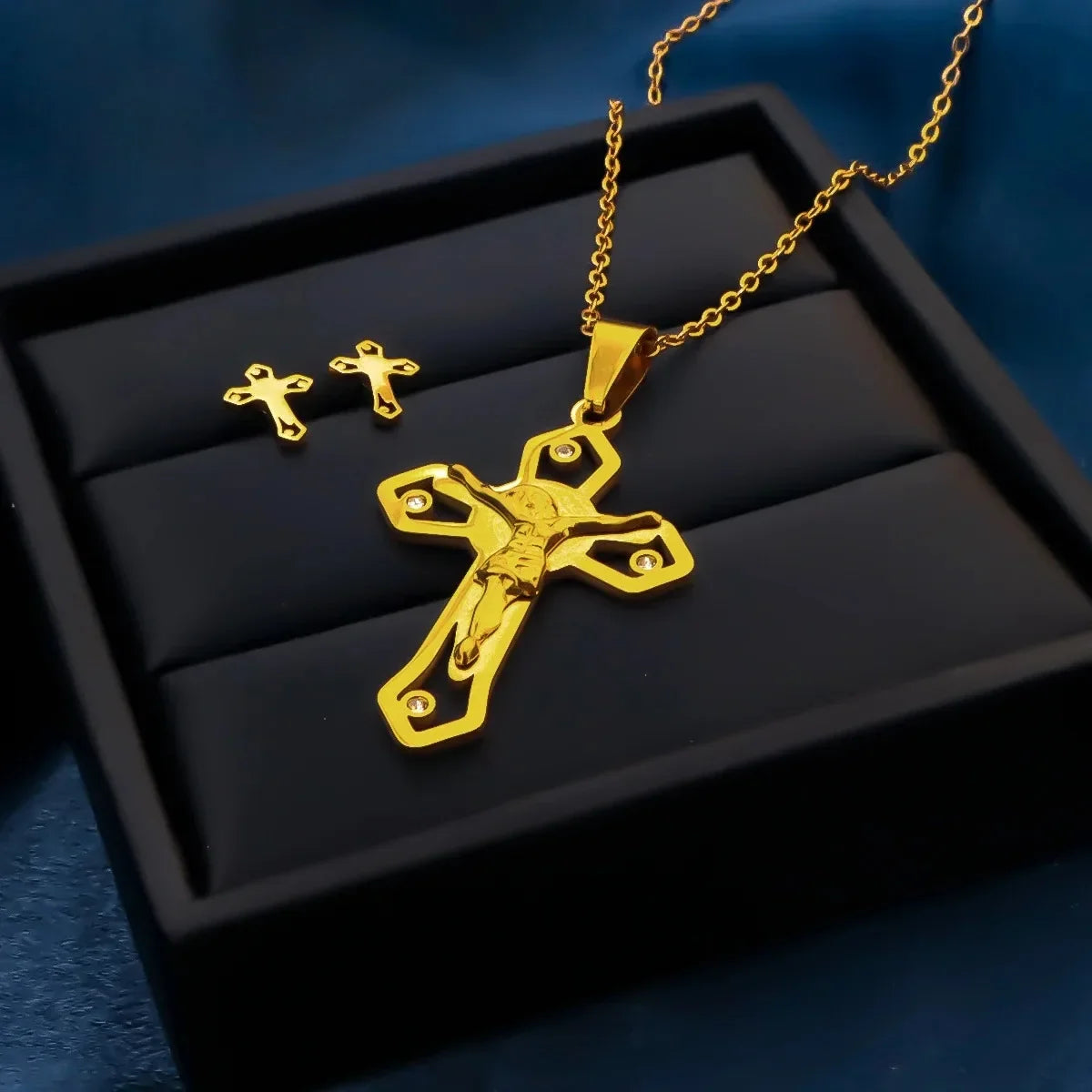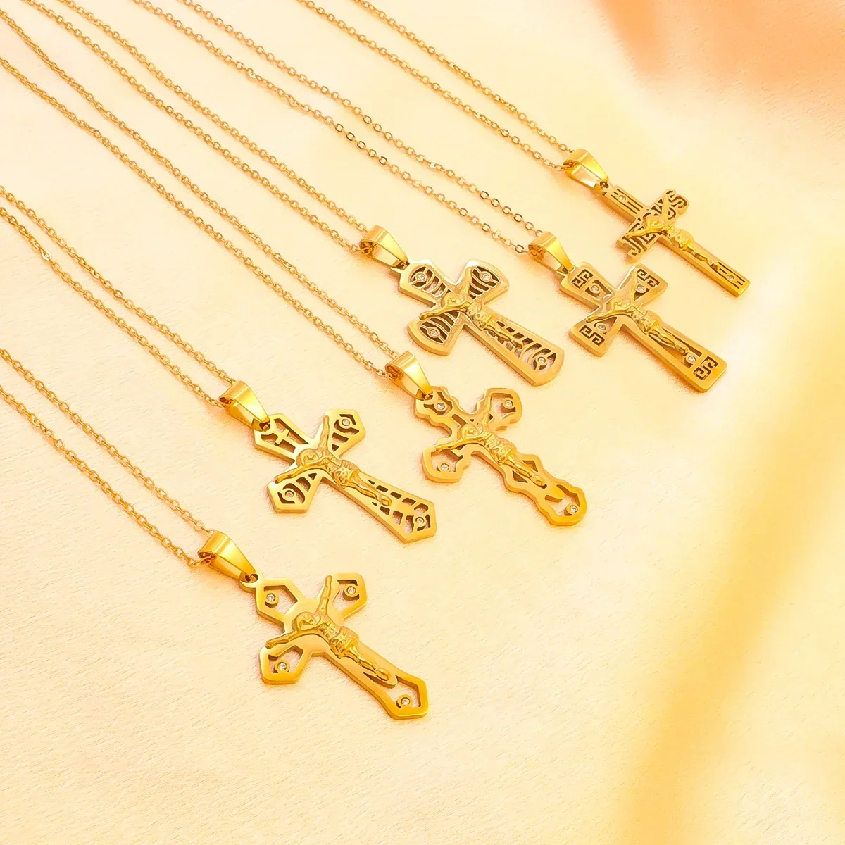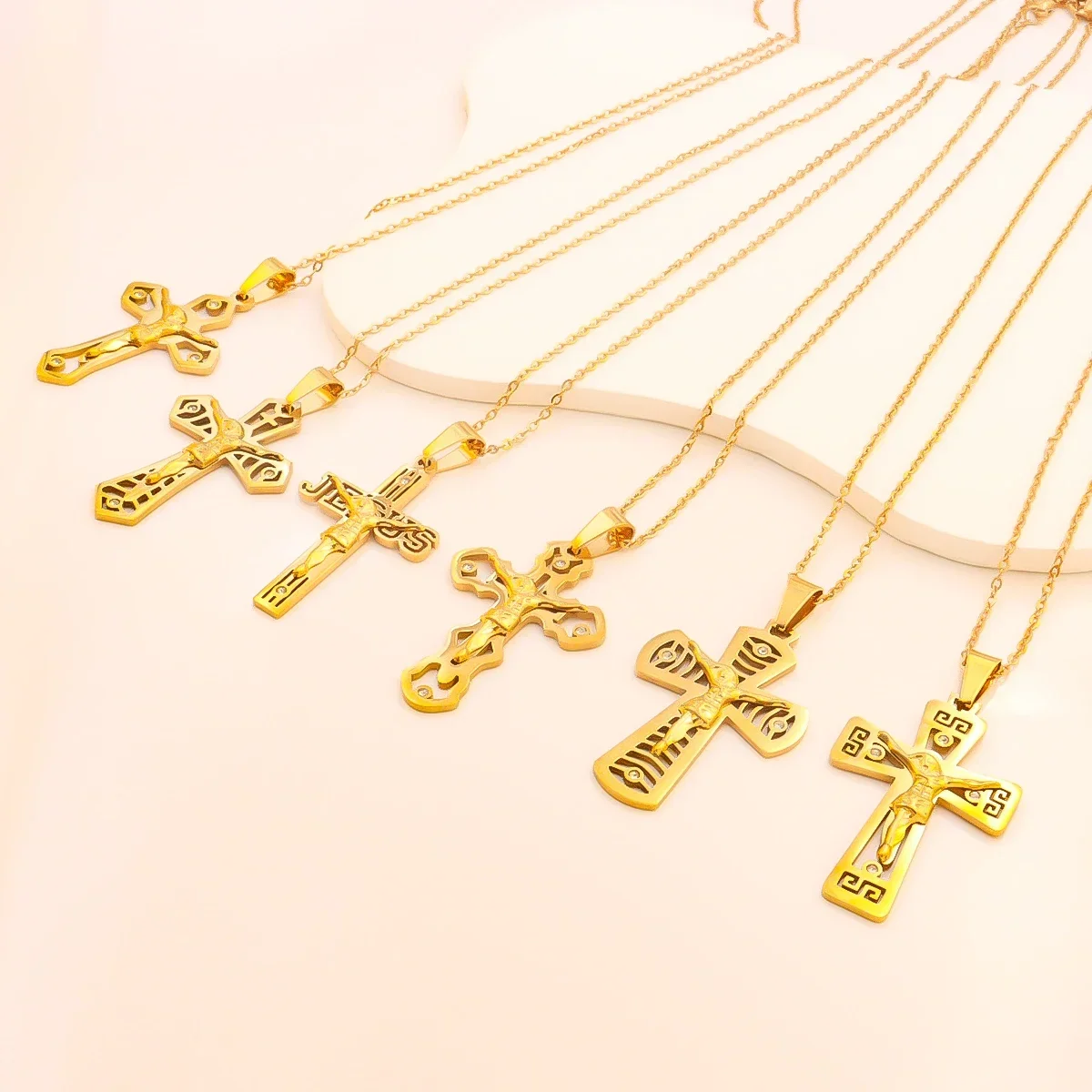 宗教的なイエス十字架ネックレス、メンズファッションゴールドカラークロスペンダント、チェーンネックレスジュエリーギフト付き
