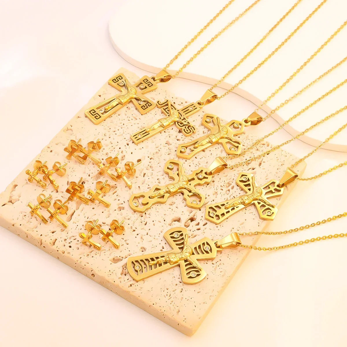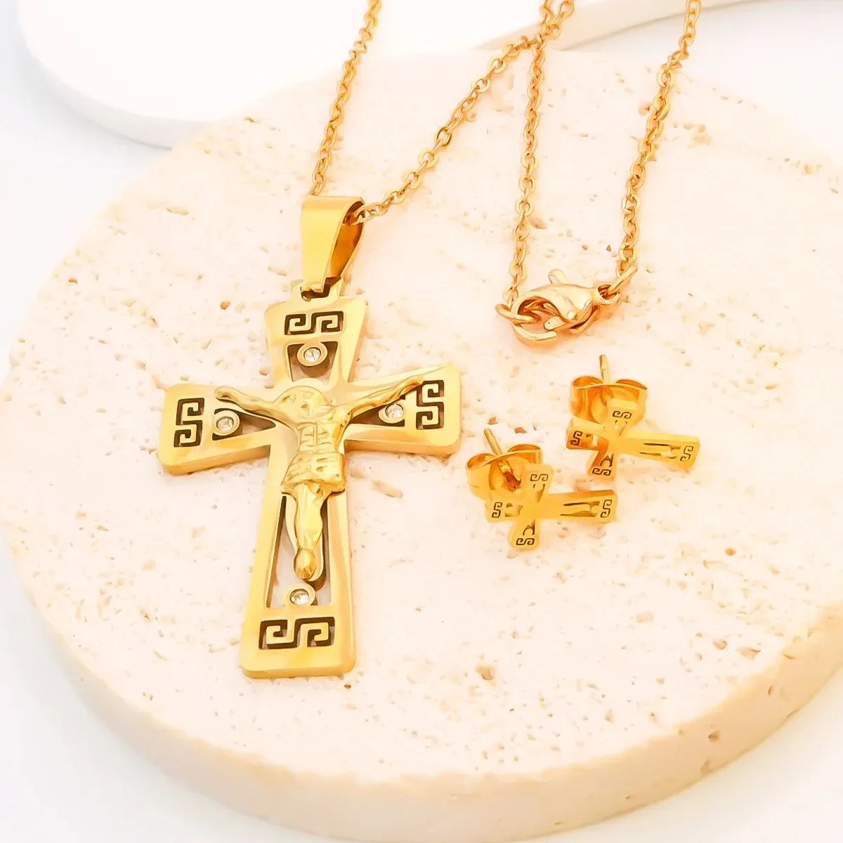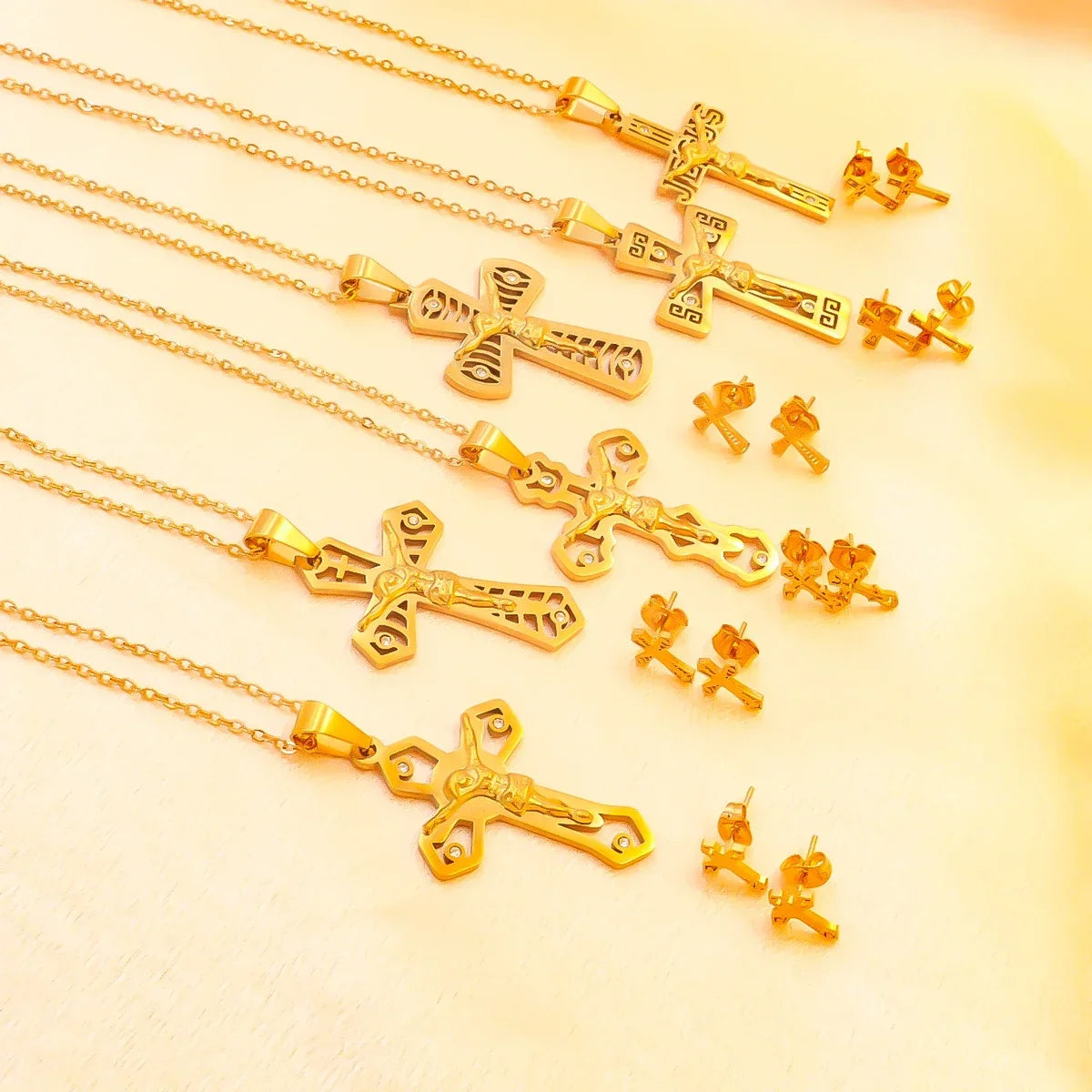 宗教的なイエス十字架ネックレス、メンズファッションゴールドカラークロスペンダント、チェーンネックレスジュエリーギフト付き