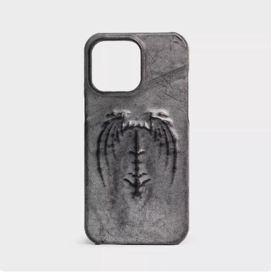 レトロゴシックな吸血鬼コウモリの羽根エンボス加工ダークスタイルスマホケース