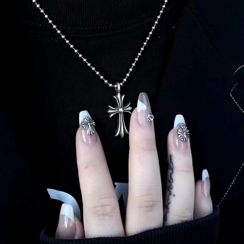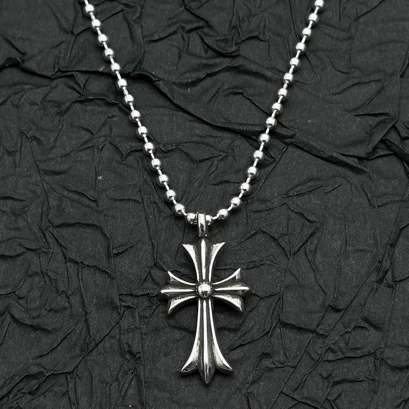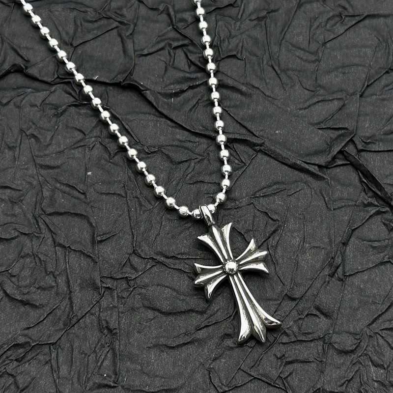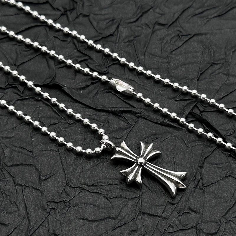 S925スターリングシルバークロスネックレス男性と女性レトロ古いヨーロッパとアメリカのニッチユニークなデザイントレンディでクール