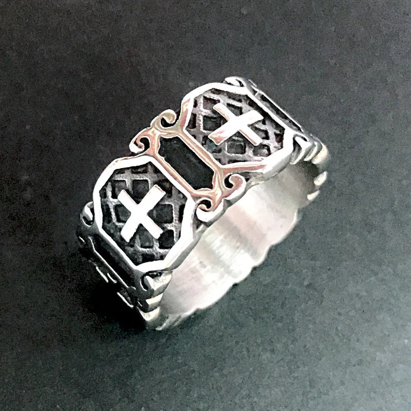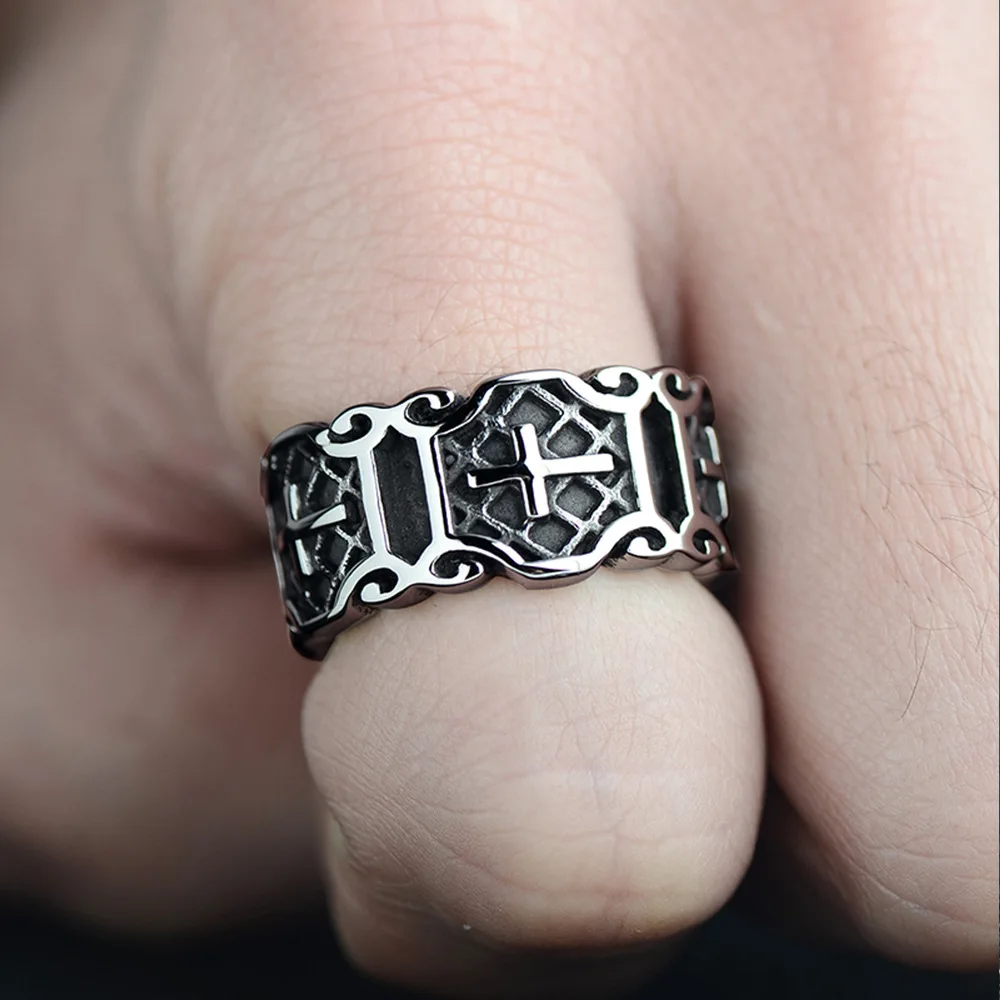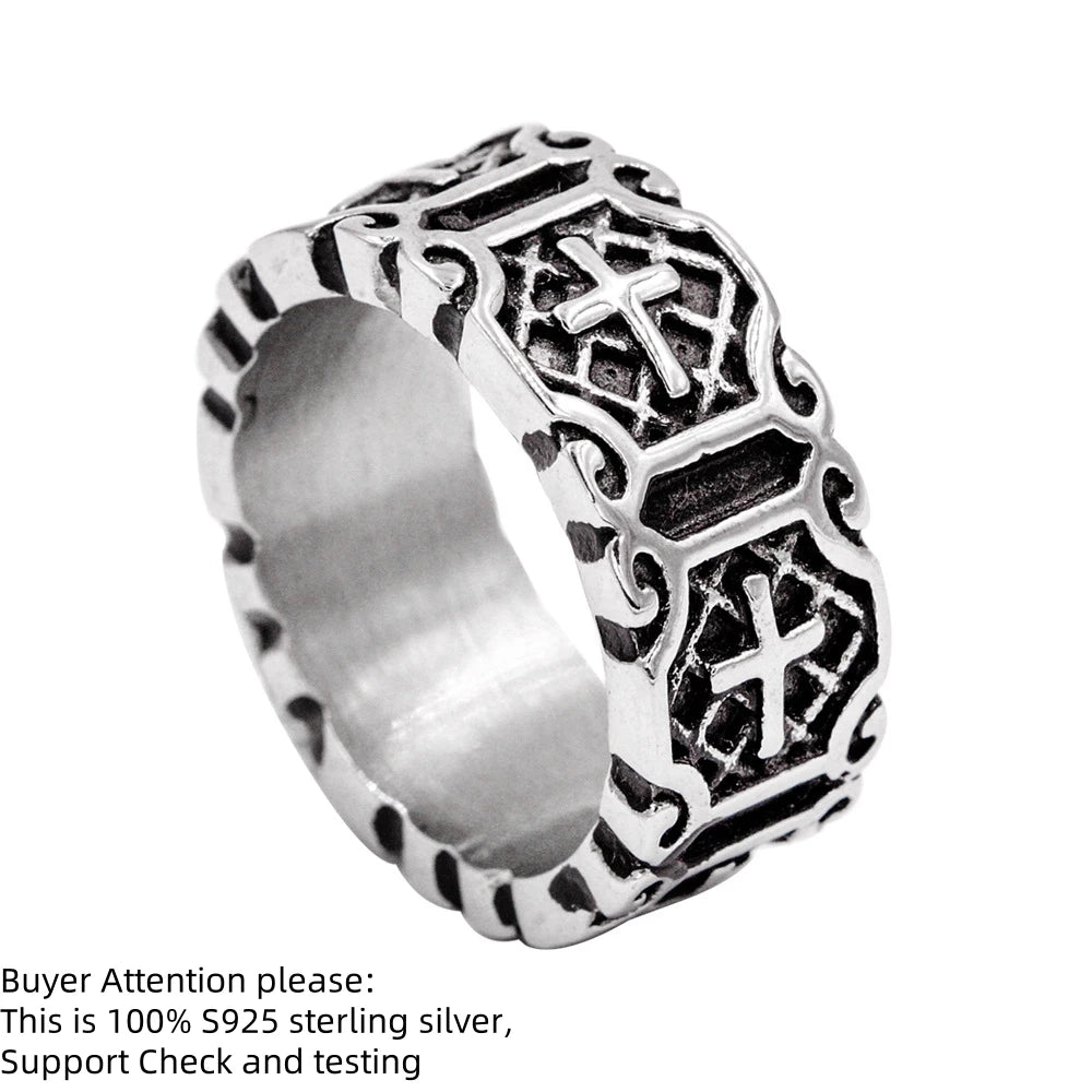 S925スターリングシルバーINSシンプルヴィンテージクロスリングファッションメンズリングレディースリングヒップホップパンク高品質ジュエリーギフト