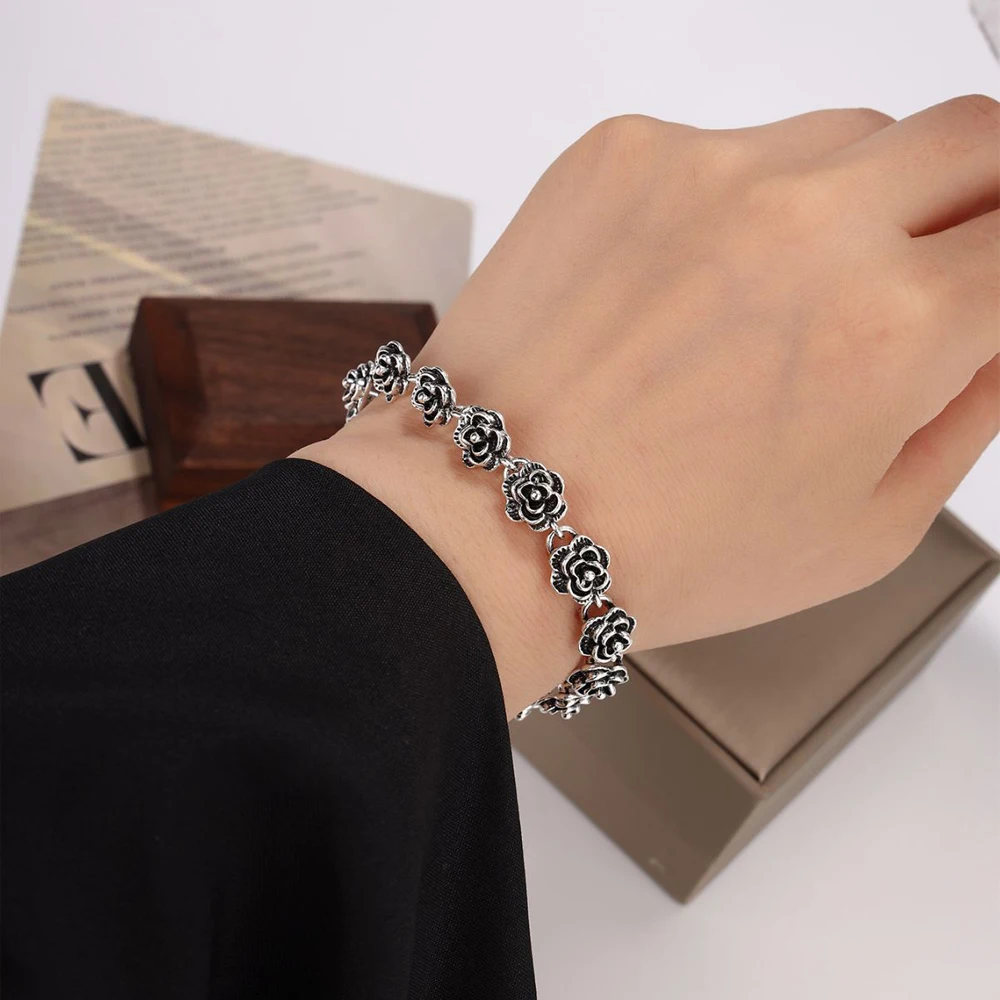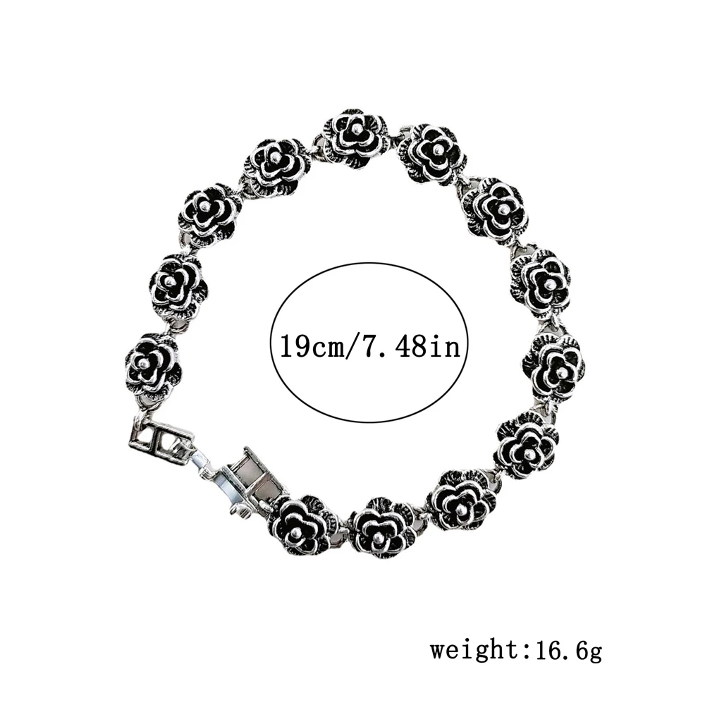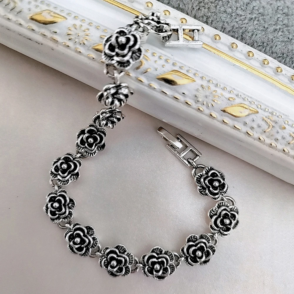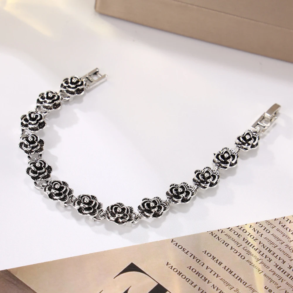 シルバーカラー合金ローズフラワーブレスレット レディース ヨーロッパ アメリカン レトロ 3Dフラワーチャームブレスレット レディース ジュエリー アクセサリー