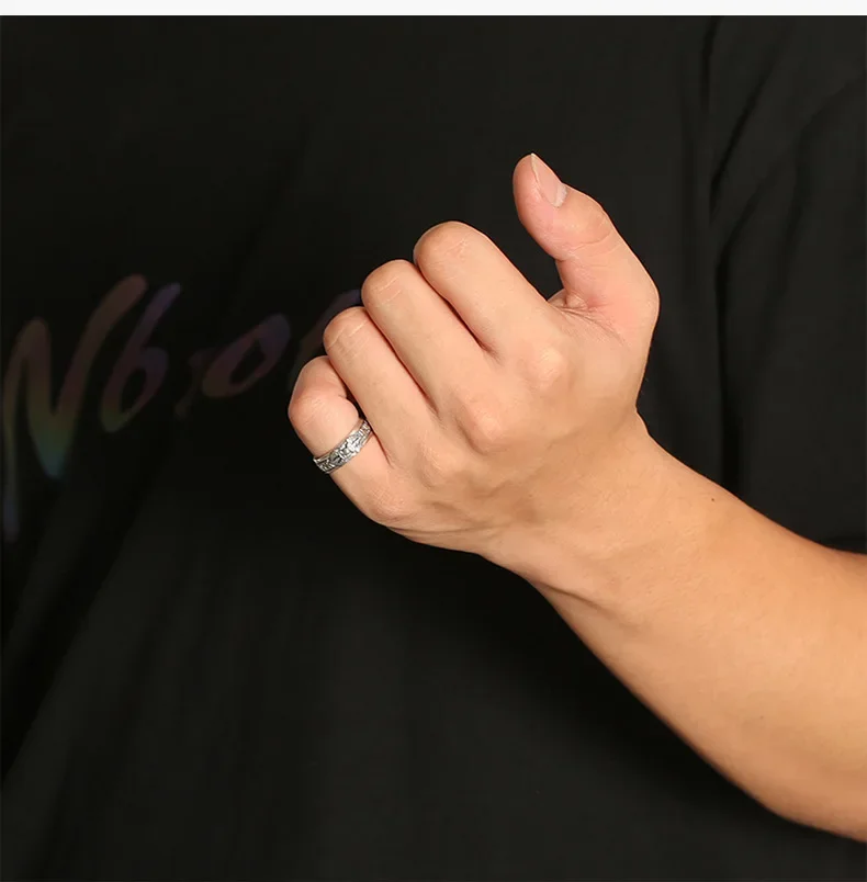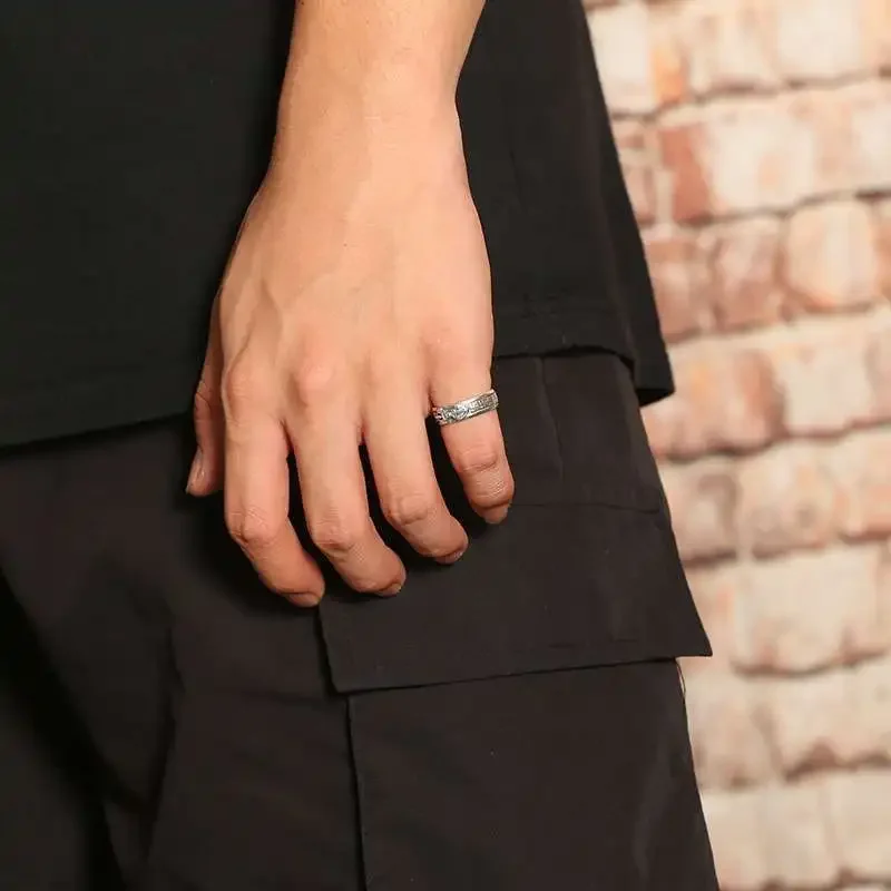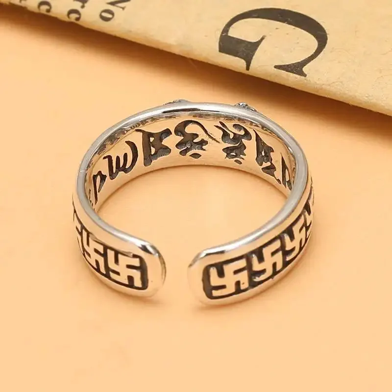 シルバーメッキ 仏教経典 金剛般若十字架 調節可能リング レトロ 宗教的 オープンリング 男女兼用 ファッションジュエリー