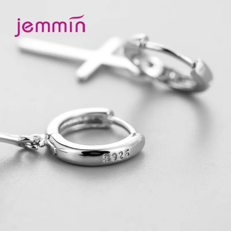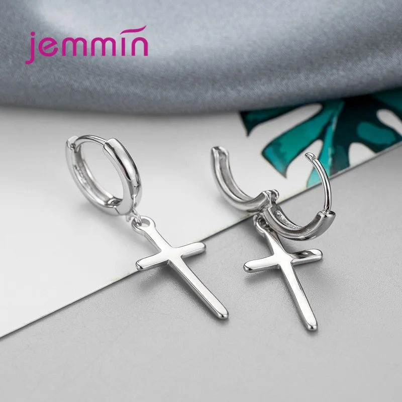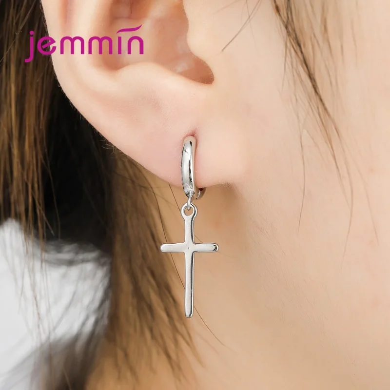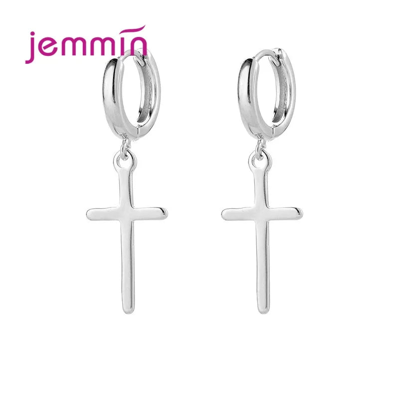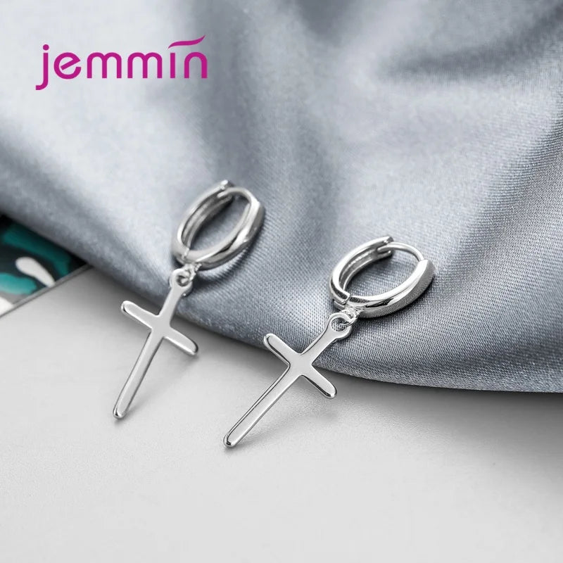 シンプルな925スターリングシルバーのクロスデザインメタルドロップイヤリング。女性、女の子、記念日、結婚式、パーティー、ファッションジュエリーギフトに。