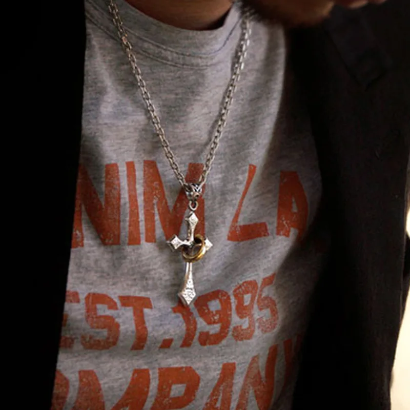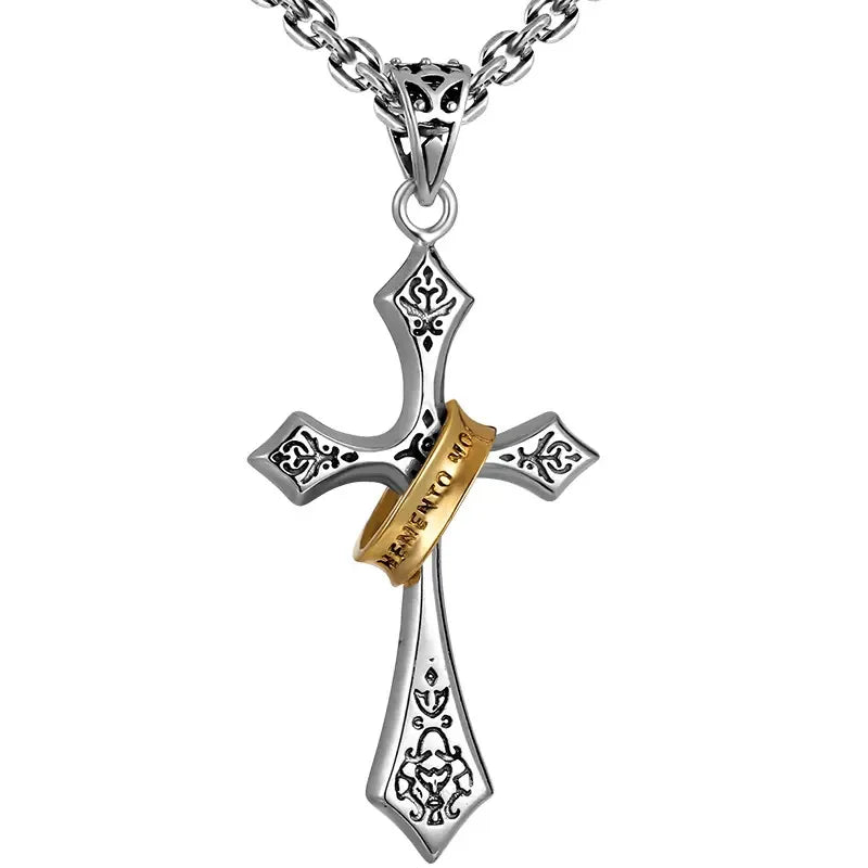 シンプルで万能なレトロクロスネックレス。メンズトレンドの立体クロスペンダント。ヒップホップネックレスデザインはスタイリッシュ。