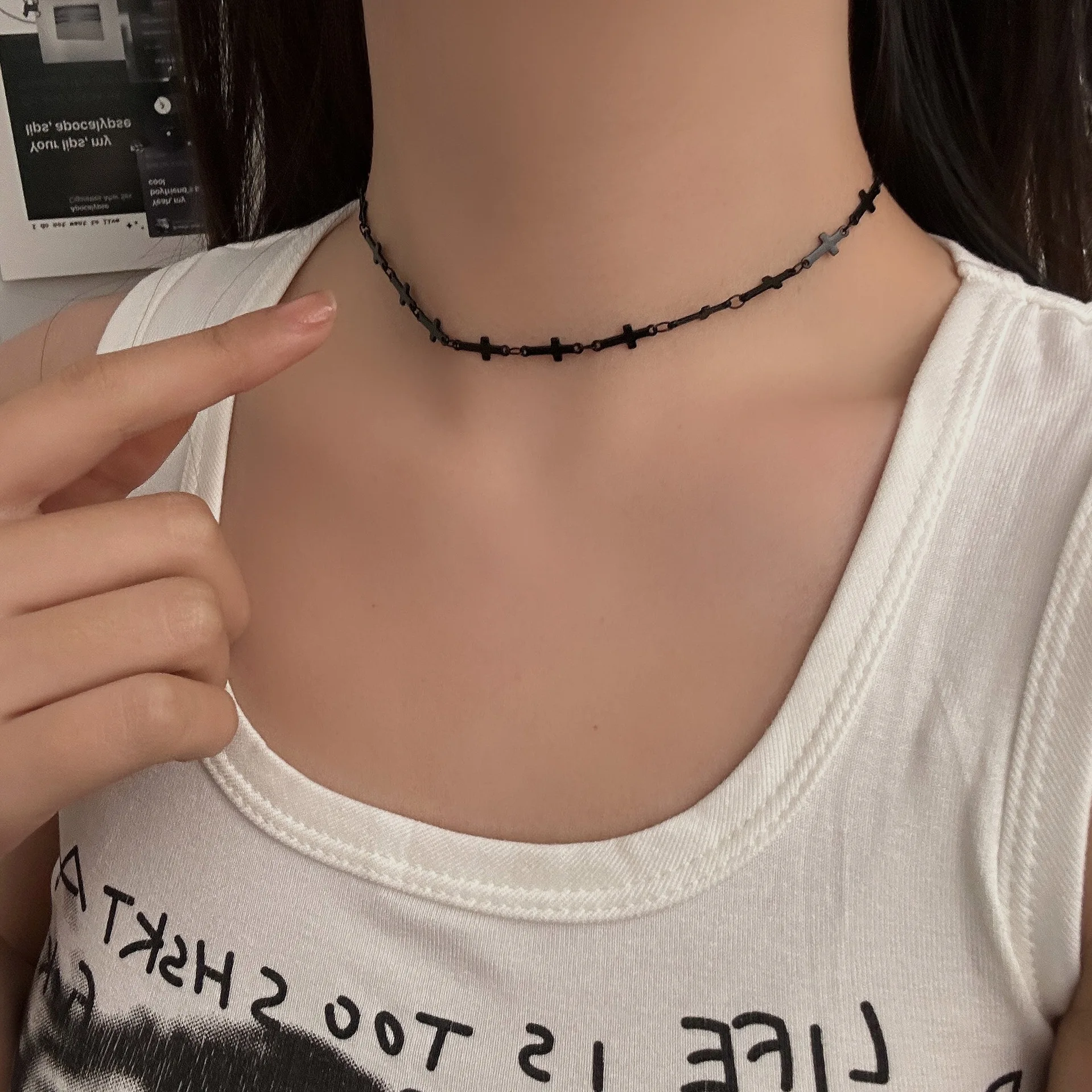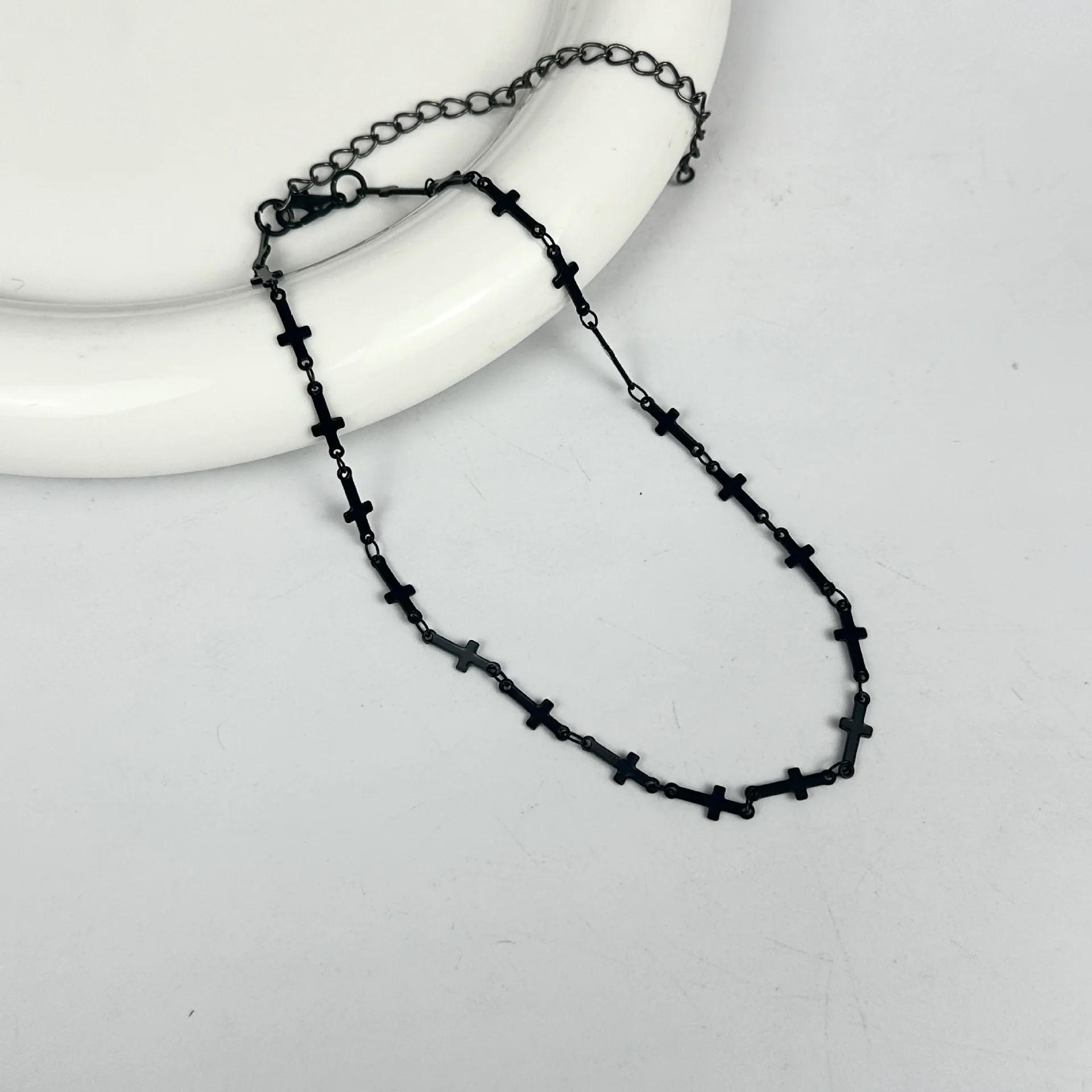 シンプルなヴィンテージブラッククロスチェーンチョーカー。男女兼用。ゴスヒップホップネックレス。パーティーファッションジュエリー。y2k
