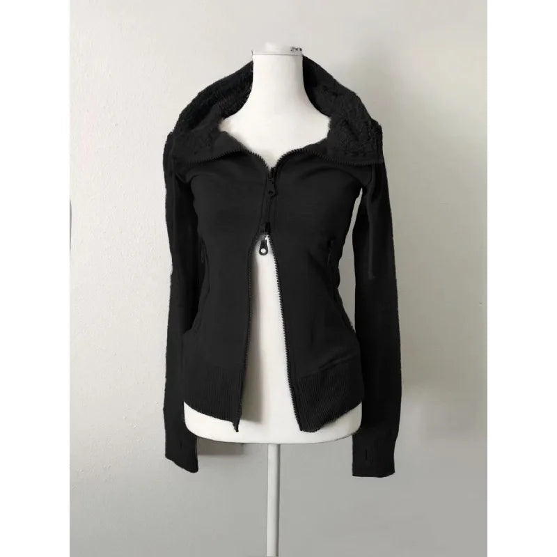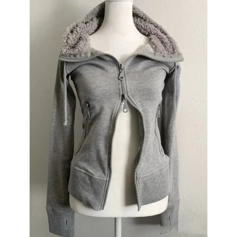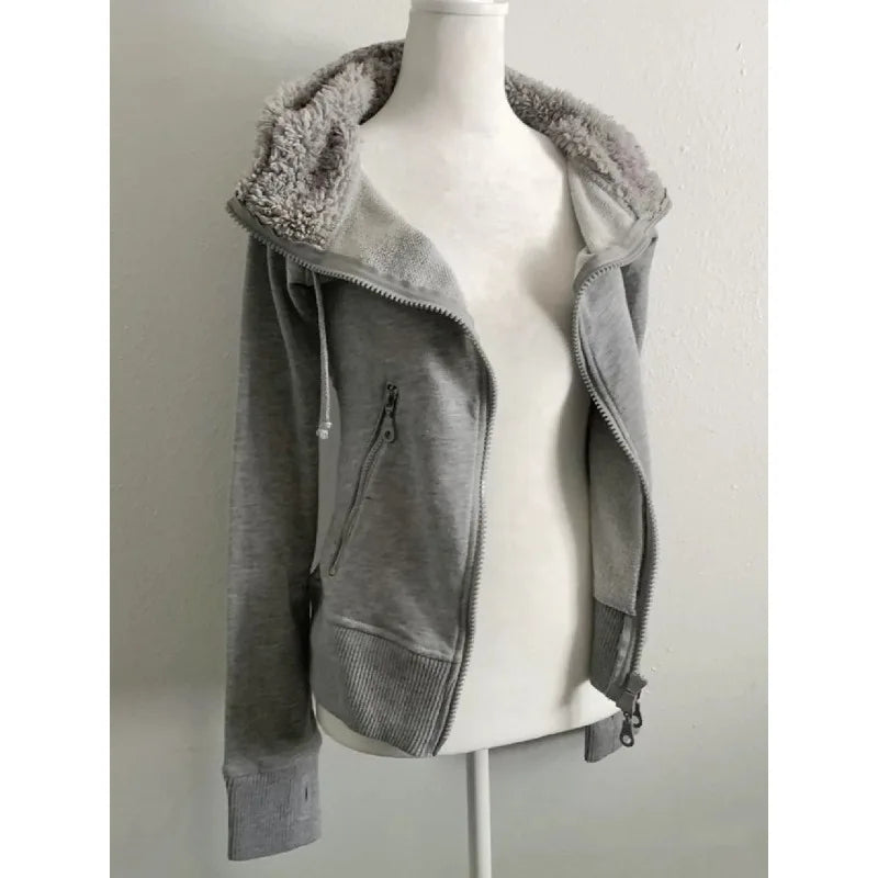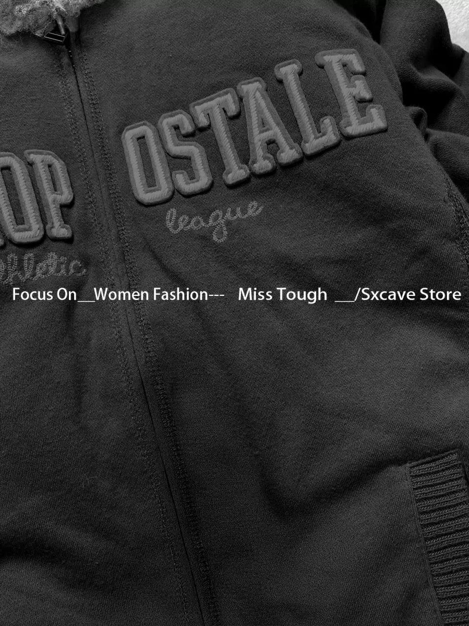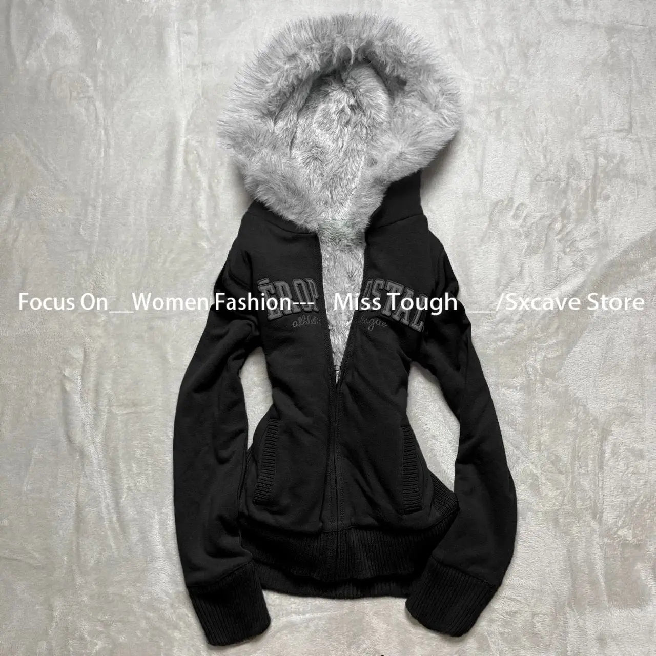 サブカルチャーフェイクコート レディース グラフィックジャケット フード付きフリースファーフーディー エッジの効いたアメリカンレトロストリートスタイルとY2Kファッショントップス