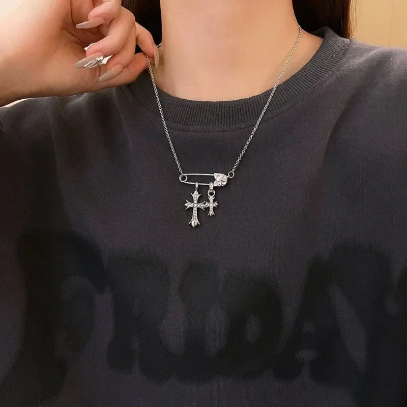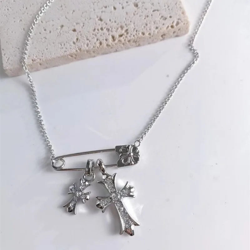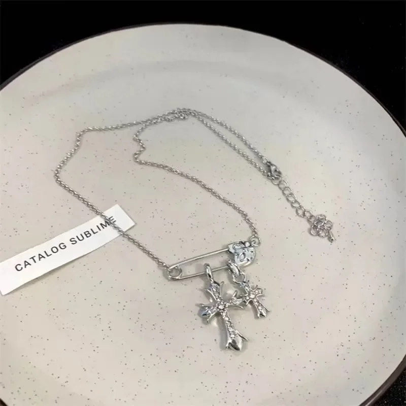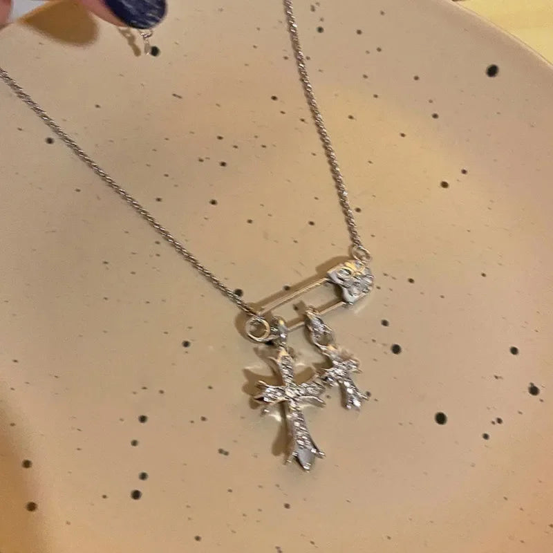 トレンディなクロスジルコンペーパークリップペンダントネックレス、女性と男性用、軽量で高級、万能な鎖骨ネックレス、ゴシッククロスネックレス