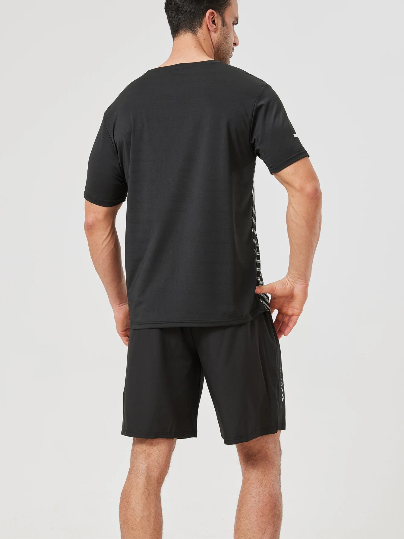 [USAサイズ] 2025年夏 ブラック トラックスーツ メンズ セット 袖 Tシャツ + ショーツ スポーツウェア ブランド スポーツスーツ オーバーサイズ 3XL
