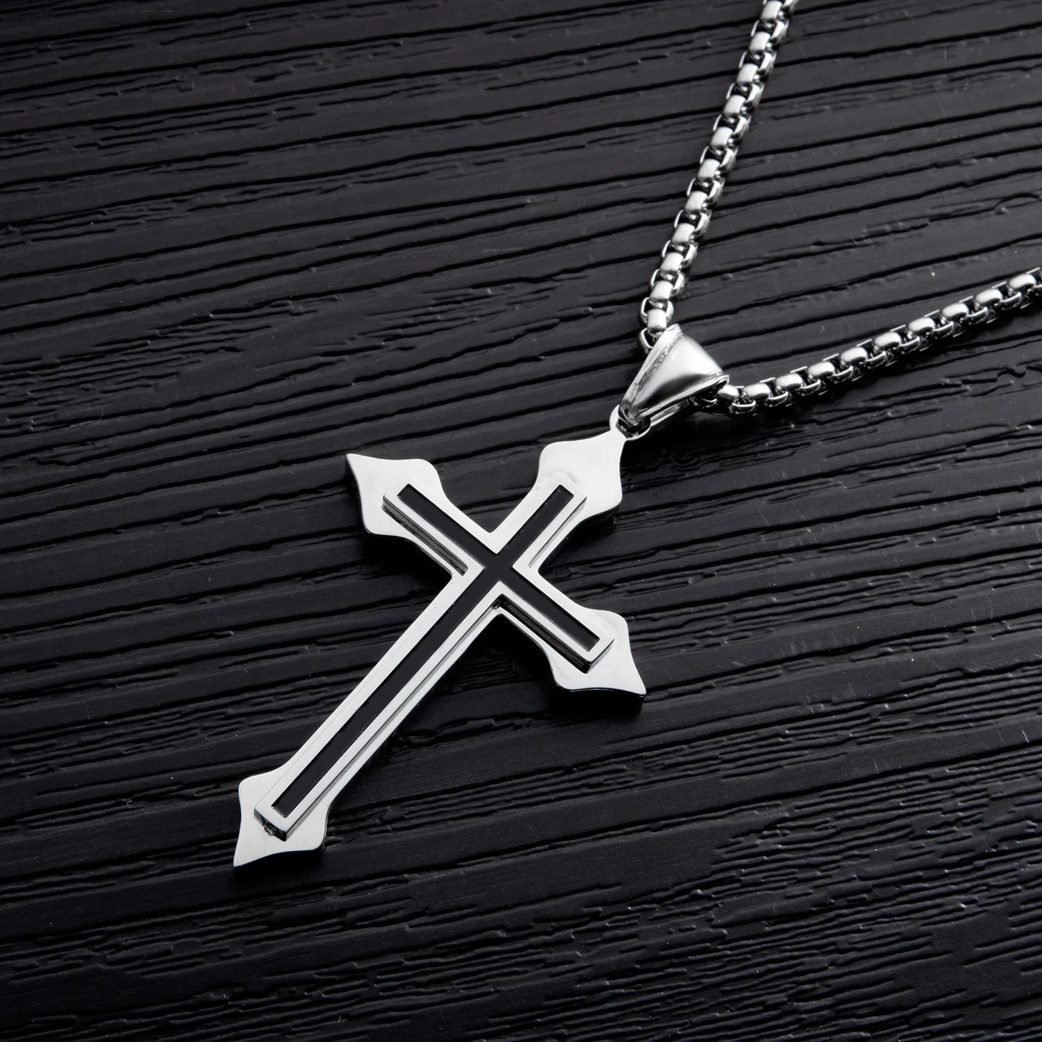 ヴィンテージ クラシック メンズ クロスペンダントネックレス 男性用 ステンレススチールネックレス ステートメント クルーズリンクチェーン チョーカー ジュエリー